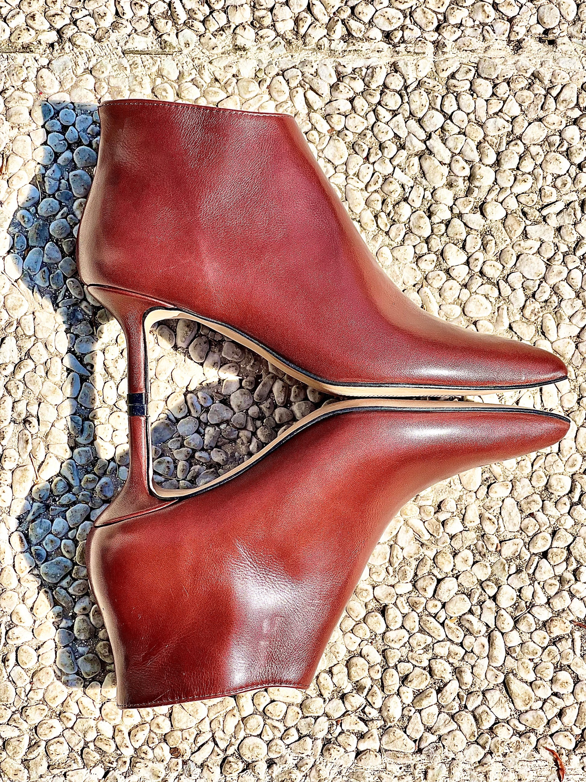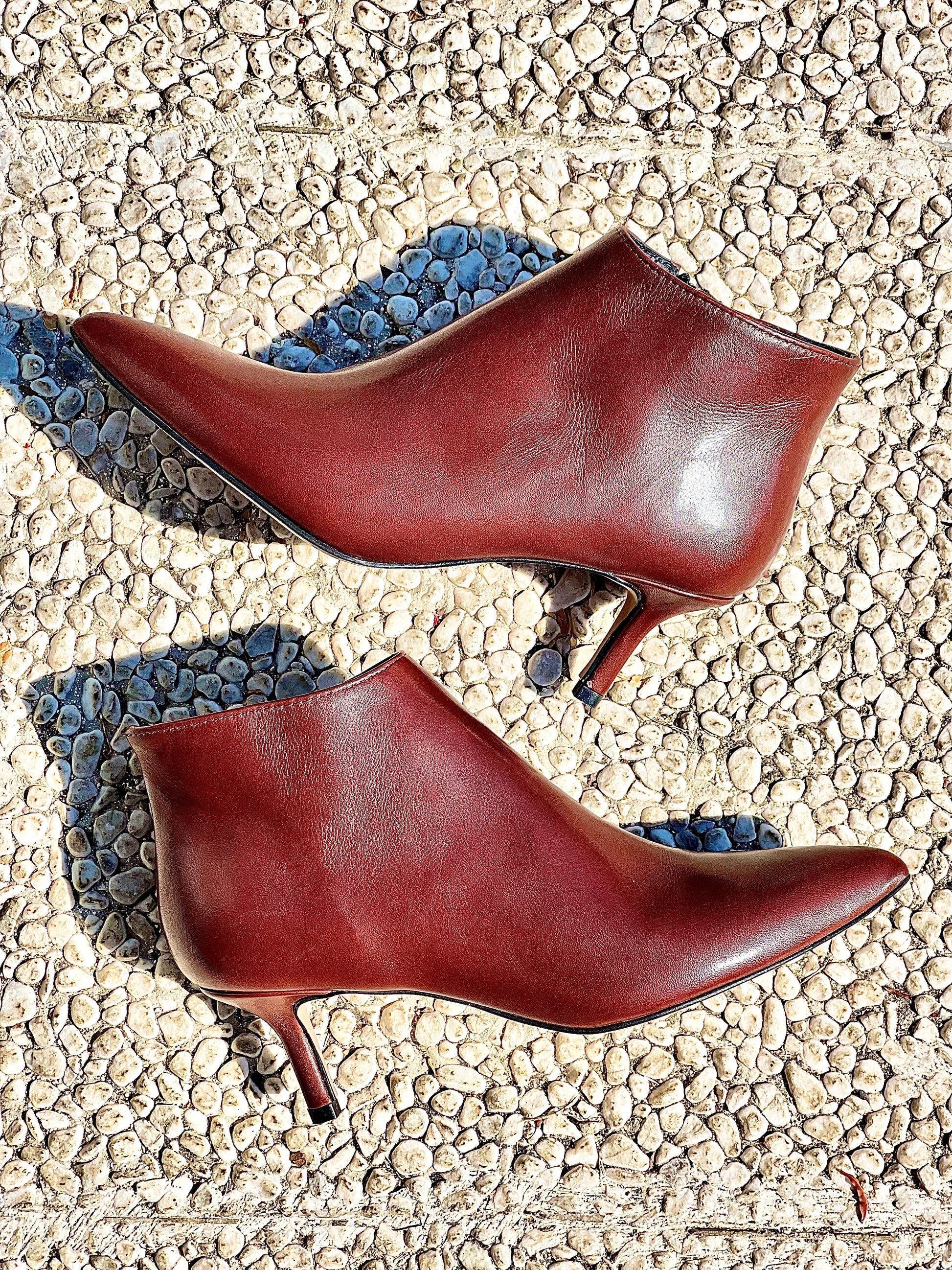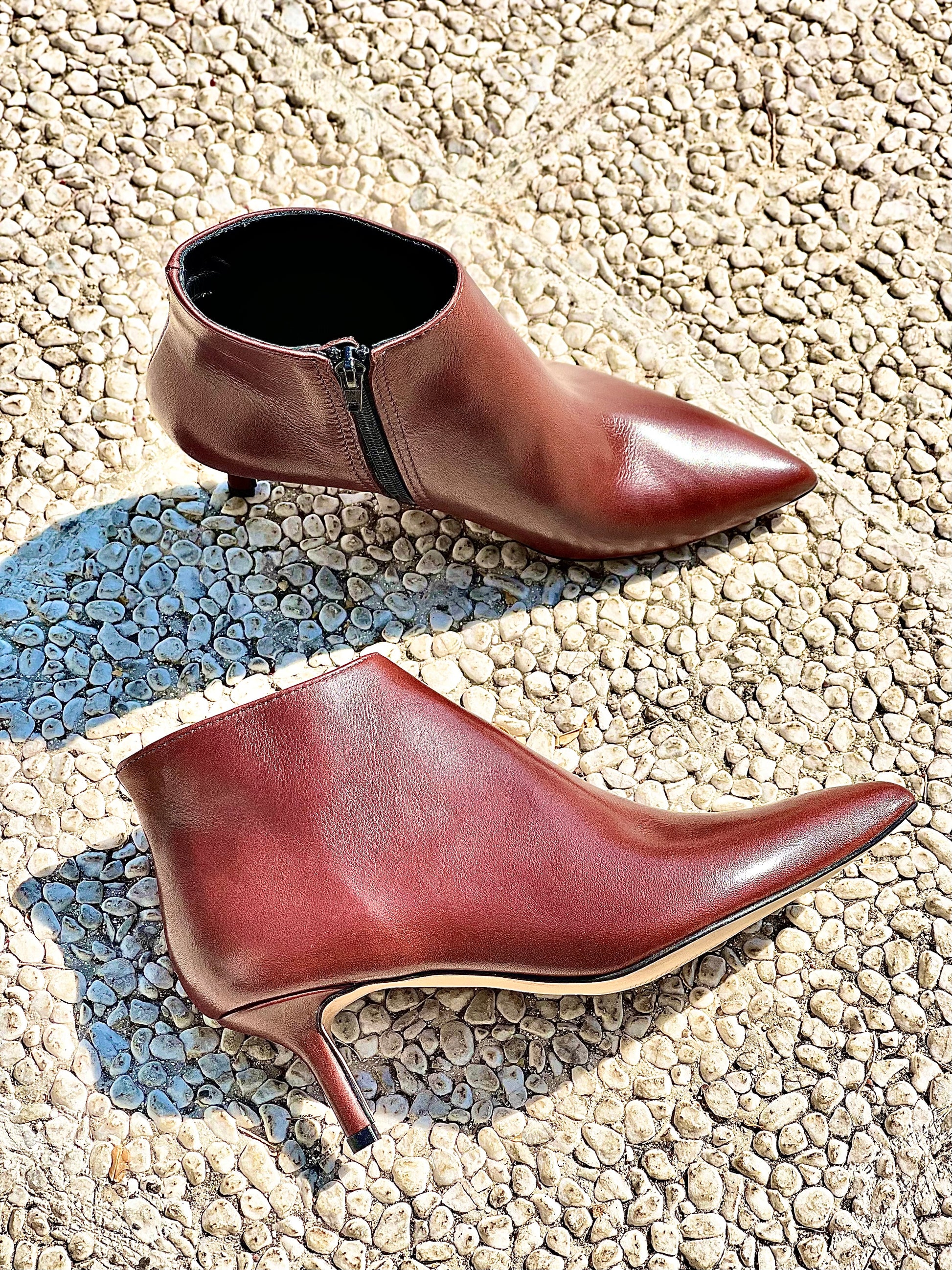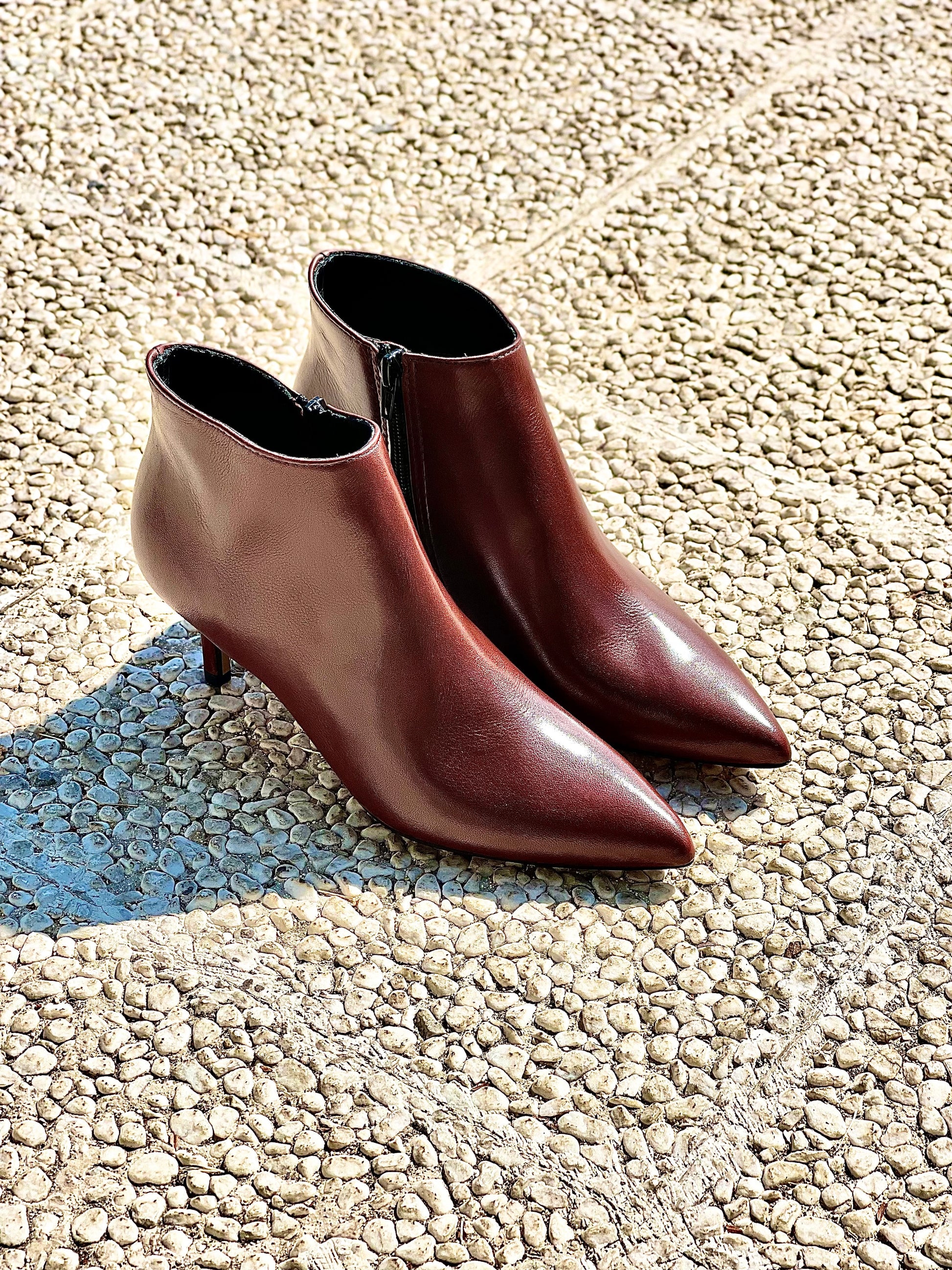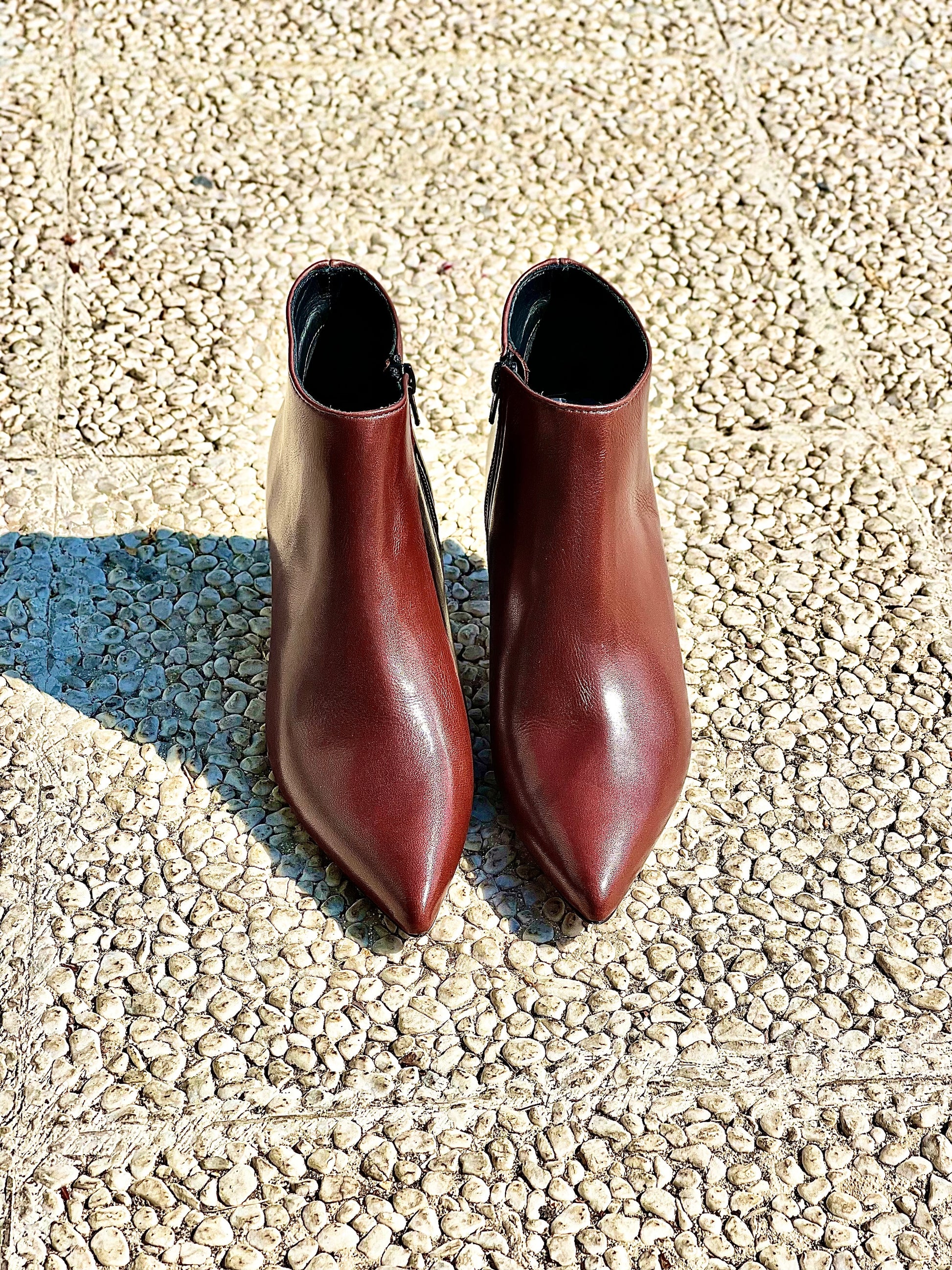 Bottines en cuir à bout pointu avec un talon de 6 cm.