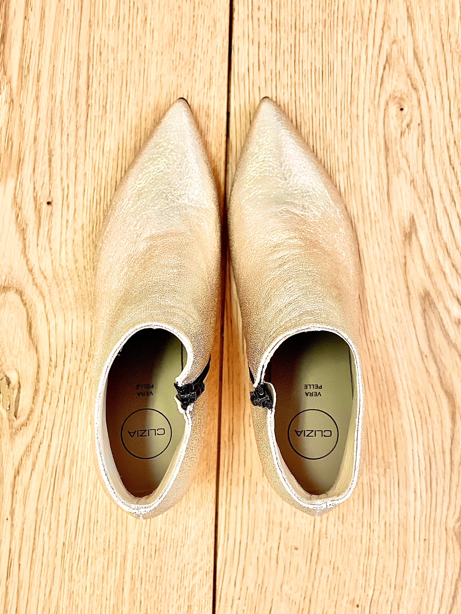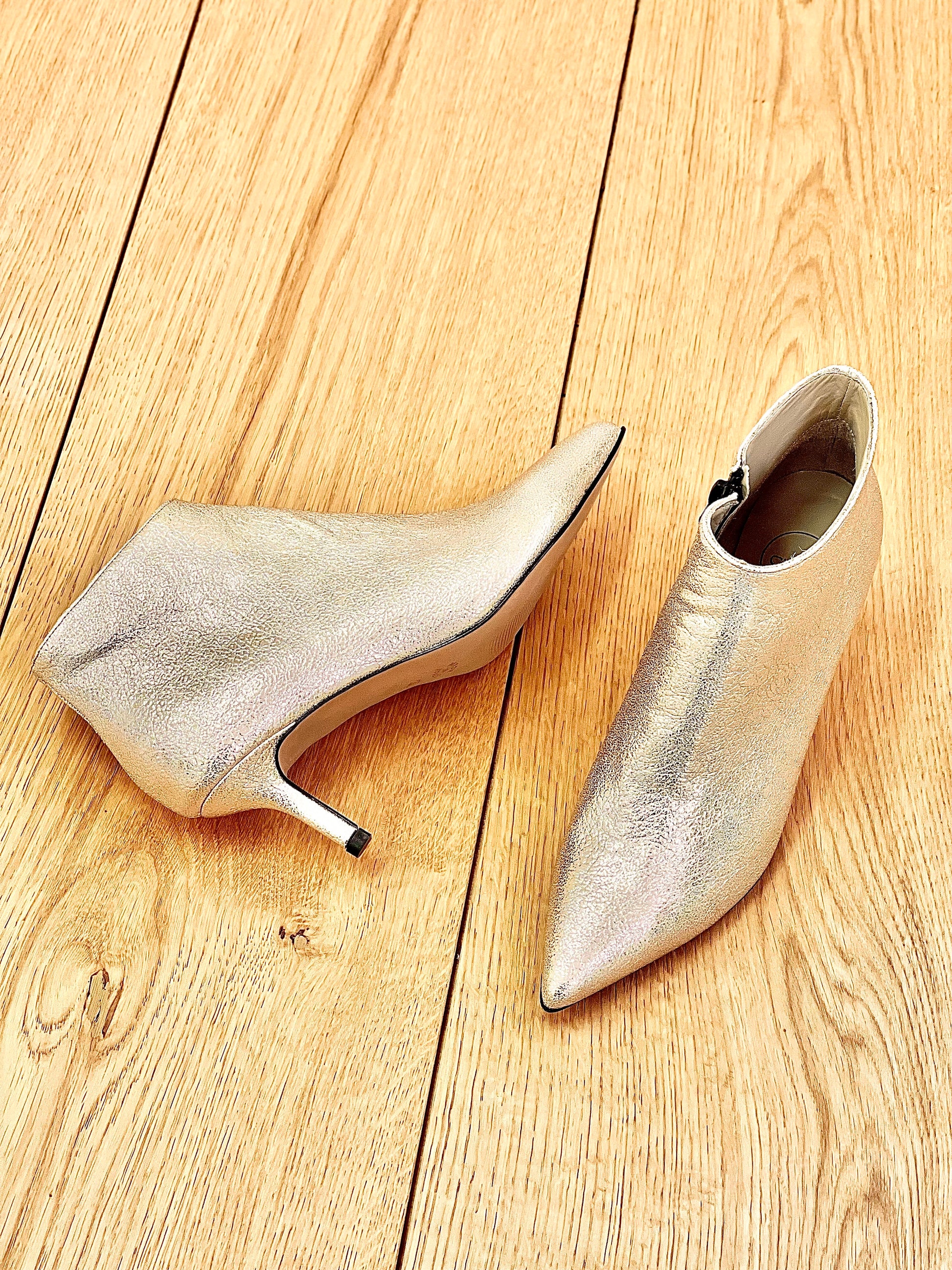 Bottines à bout pointu avec talon laminé de 6 cm.