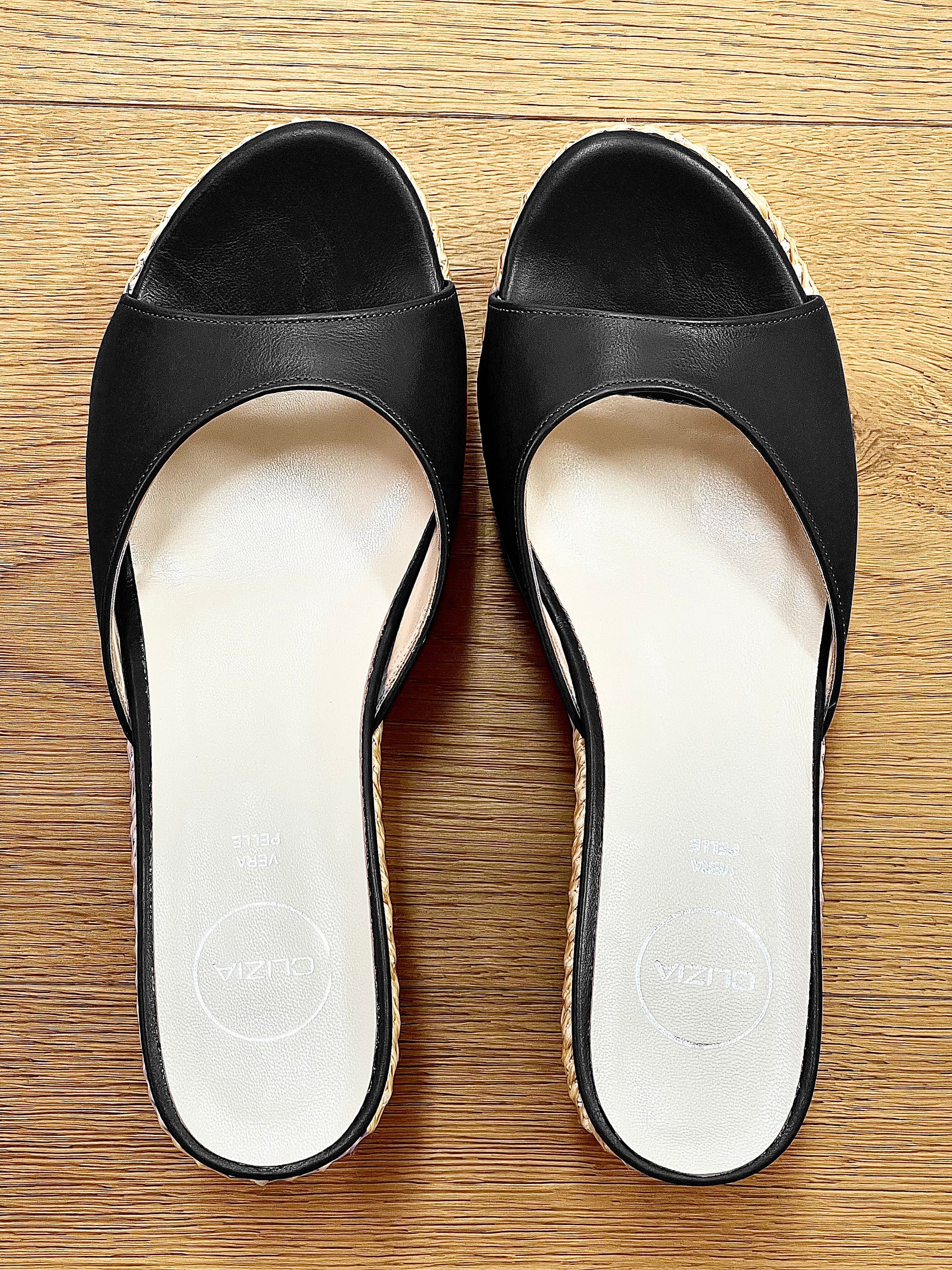 Mules compensées en raphia.