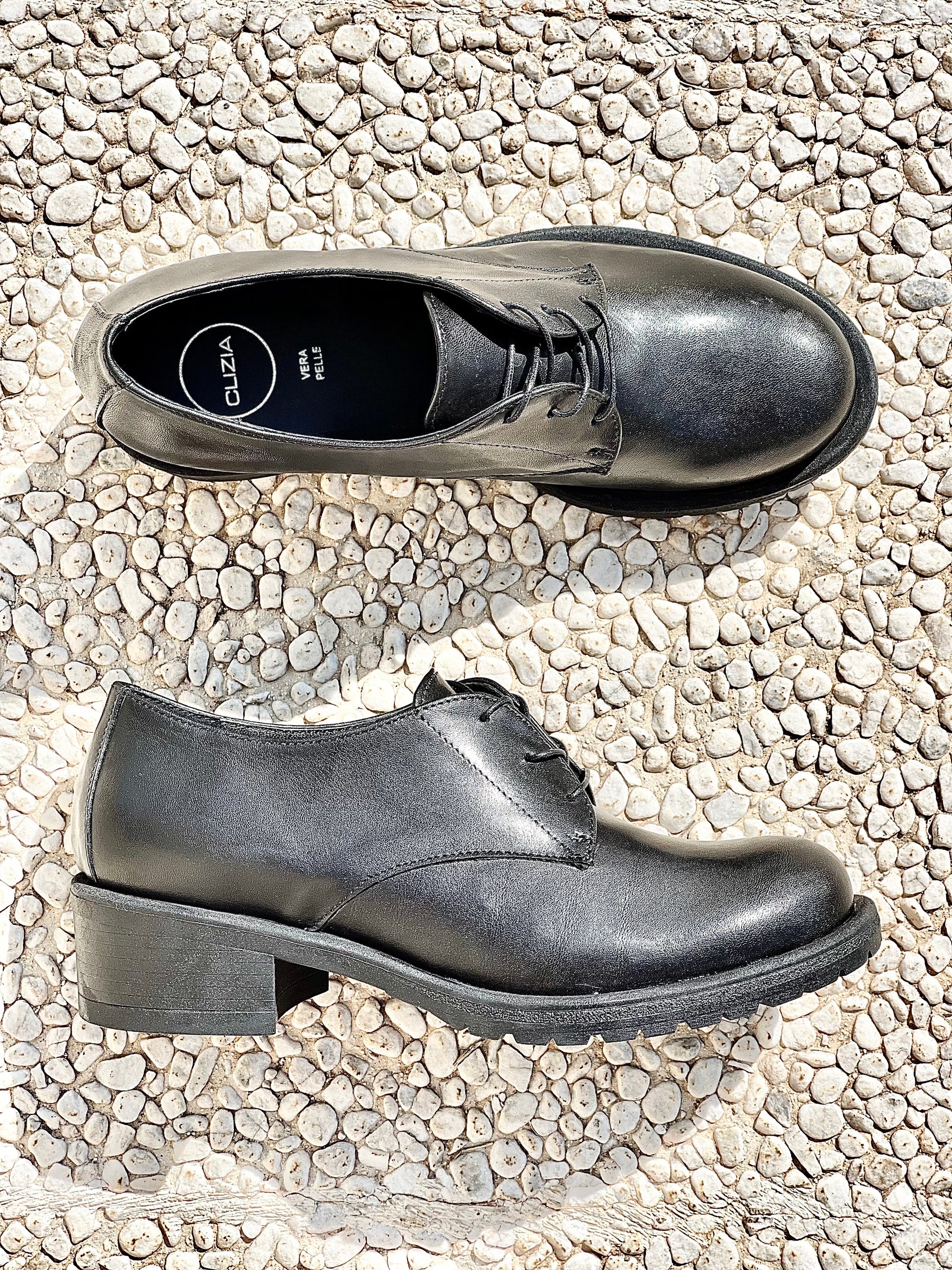 Derby à lacets en cuir pour femme avec talon de 3 cm.
