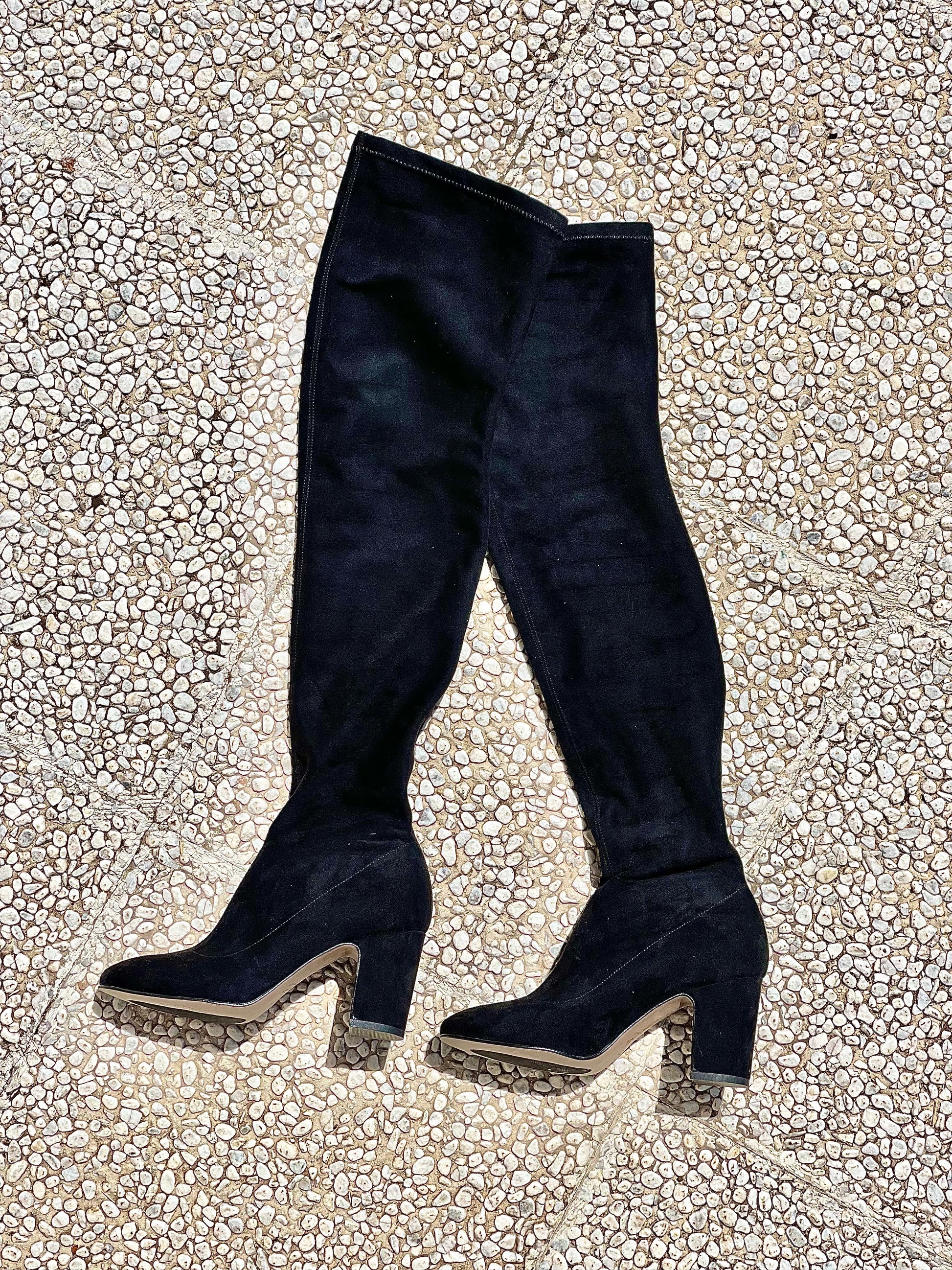 Bottes cuissardes élastiques avec talon de 7 cm.