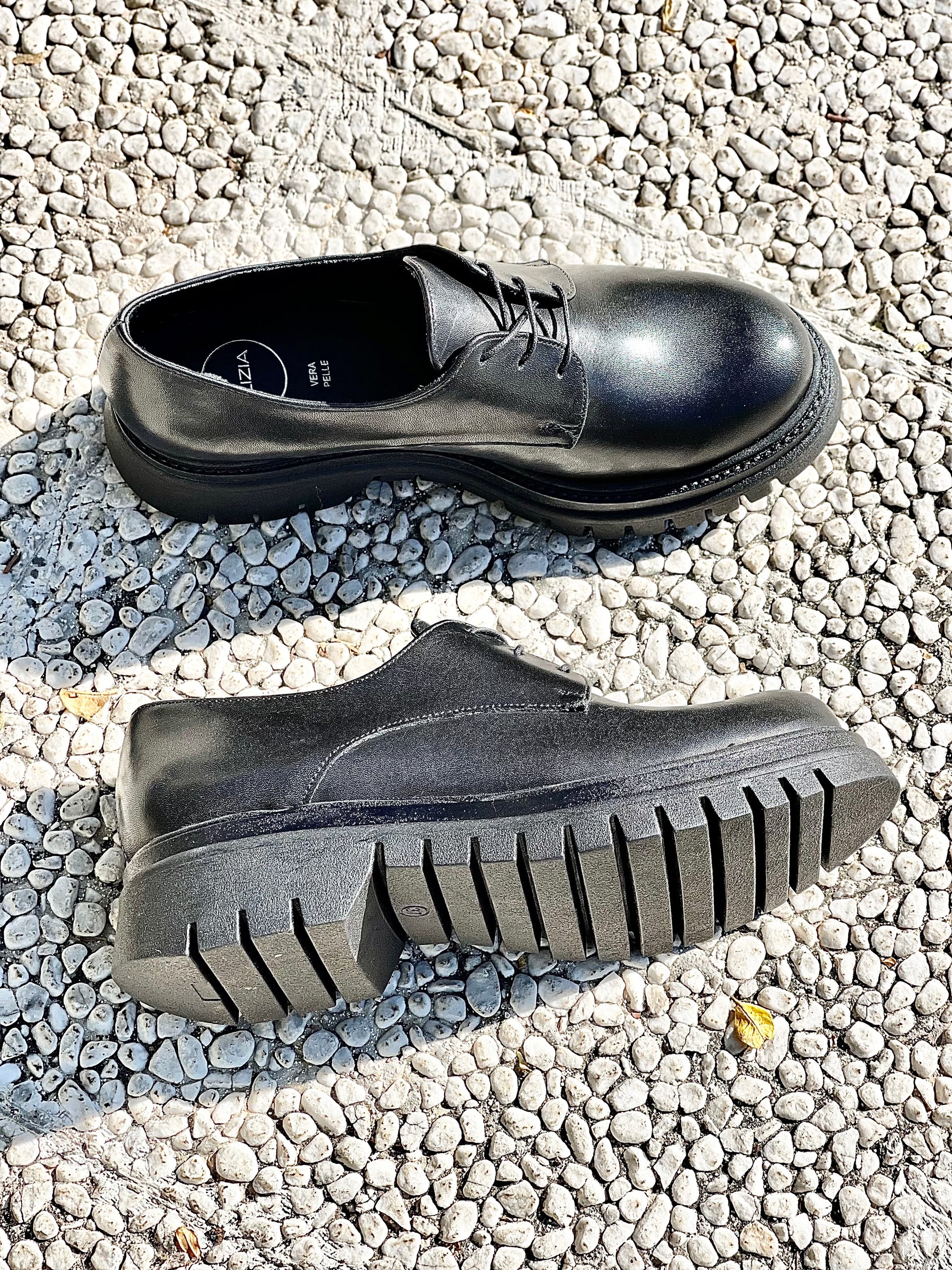 Derby à lacets en cuir pour femme avec talon de 3 cm.