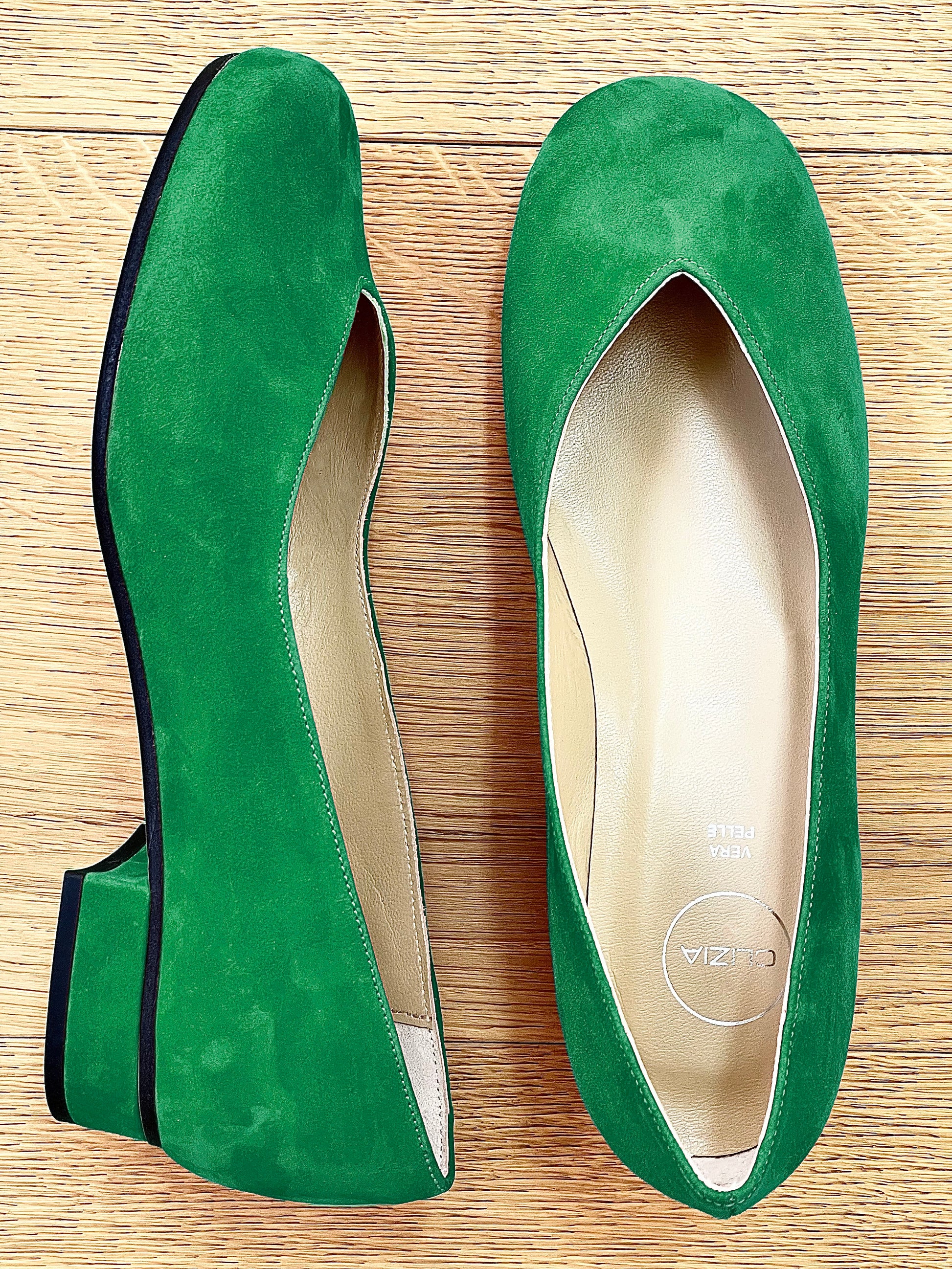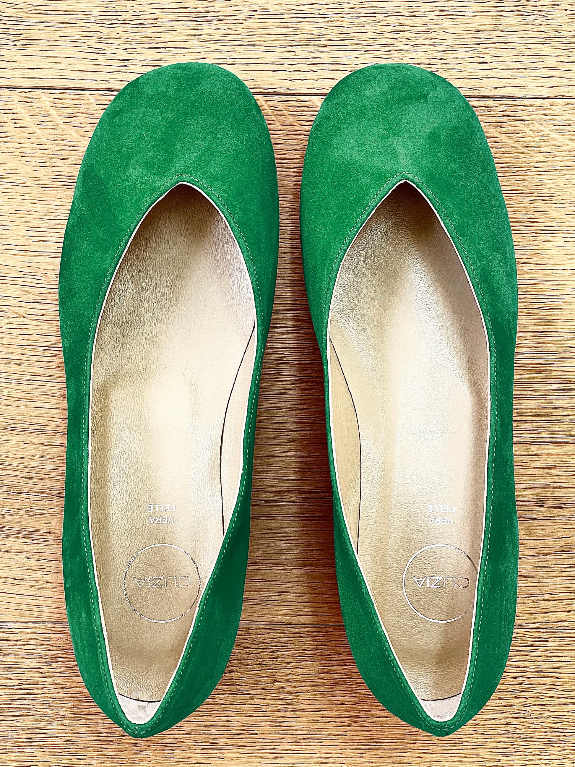 נעליים נמוכות ועגולות עם צווארון V ומחשוף.