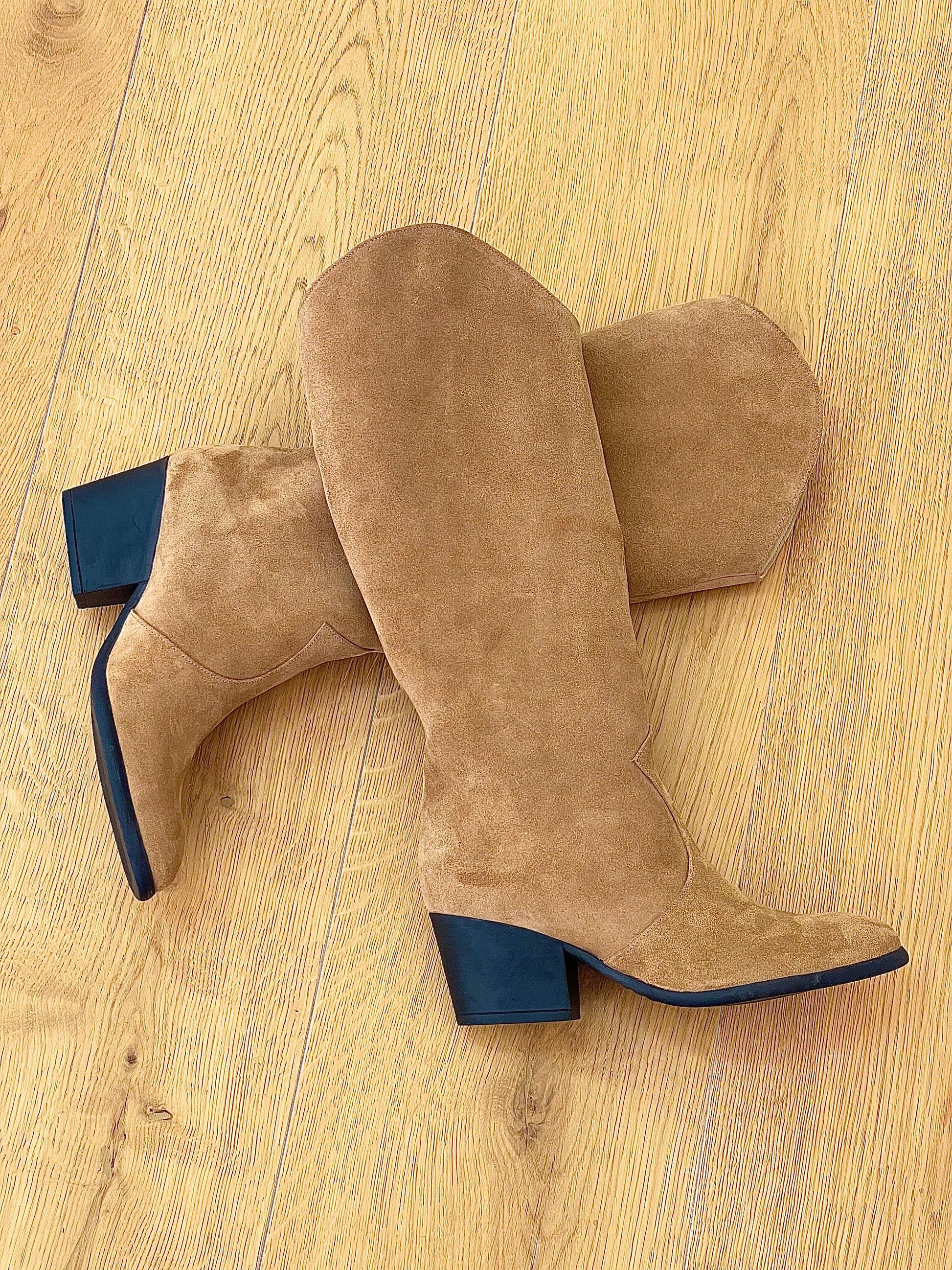 מגפי טקסן צינוריים מזמש עם עקב 6 ס"מ.