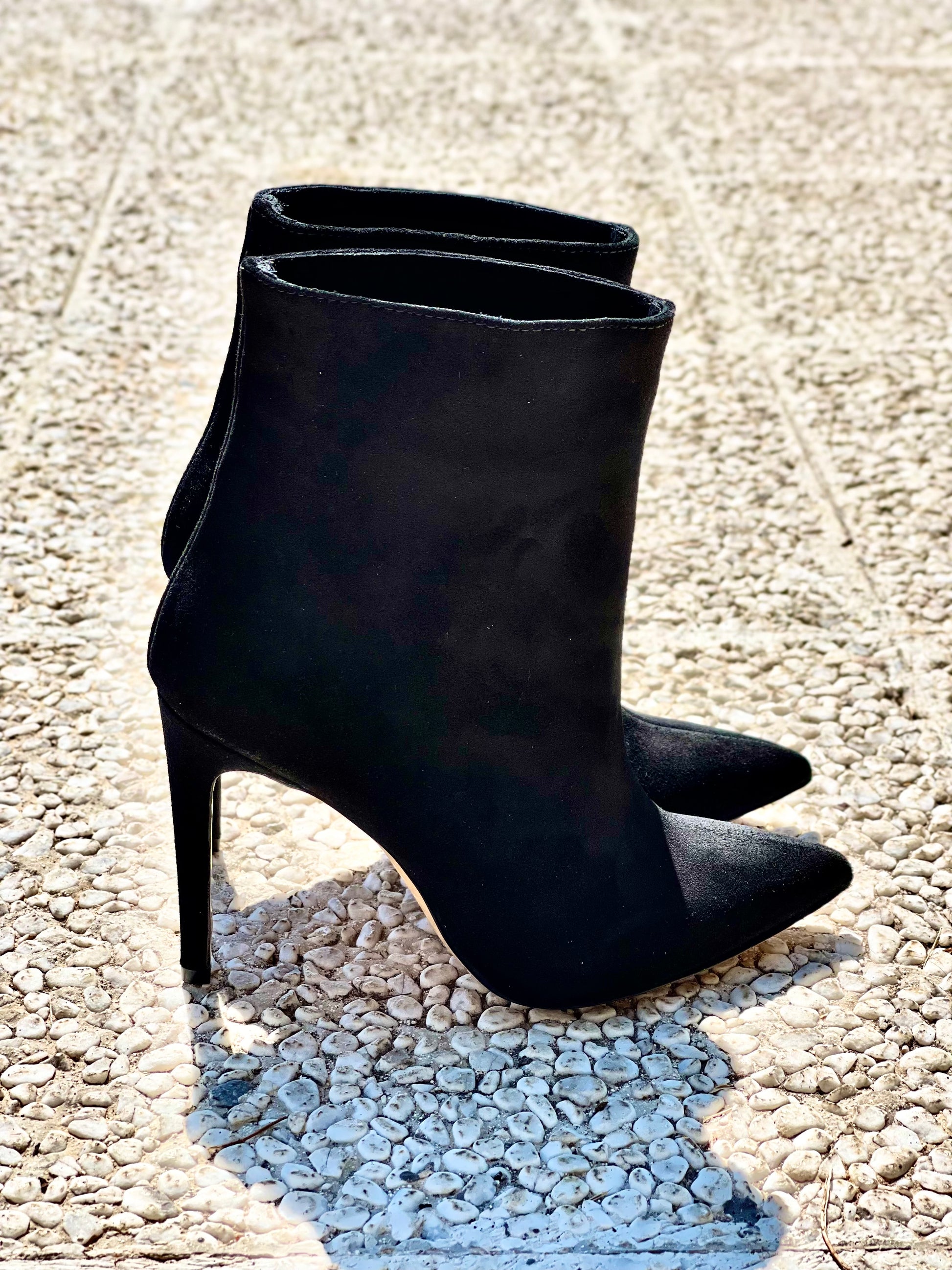מגף קרסול מזמש עם חרטום מחודד ועקב סטילטו 100 מ"מ.