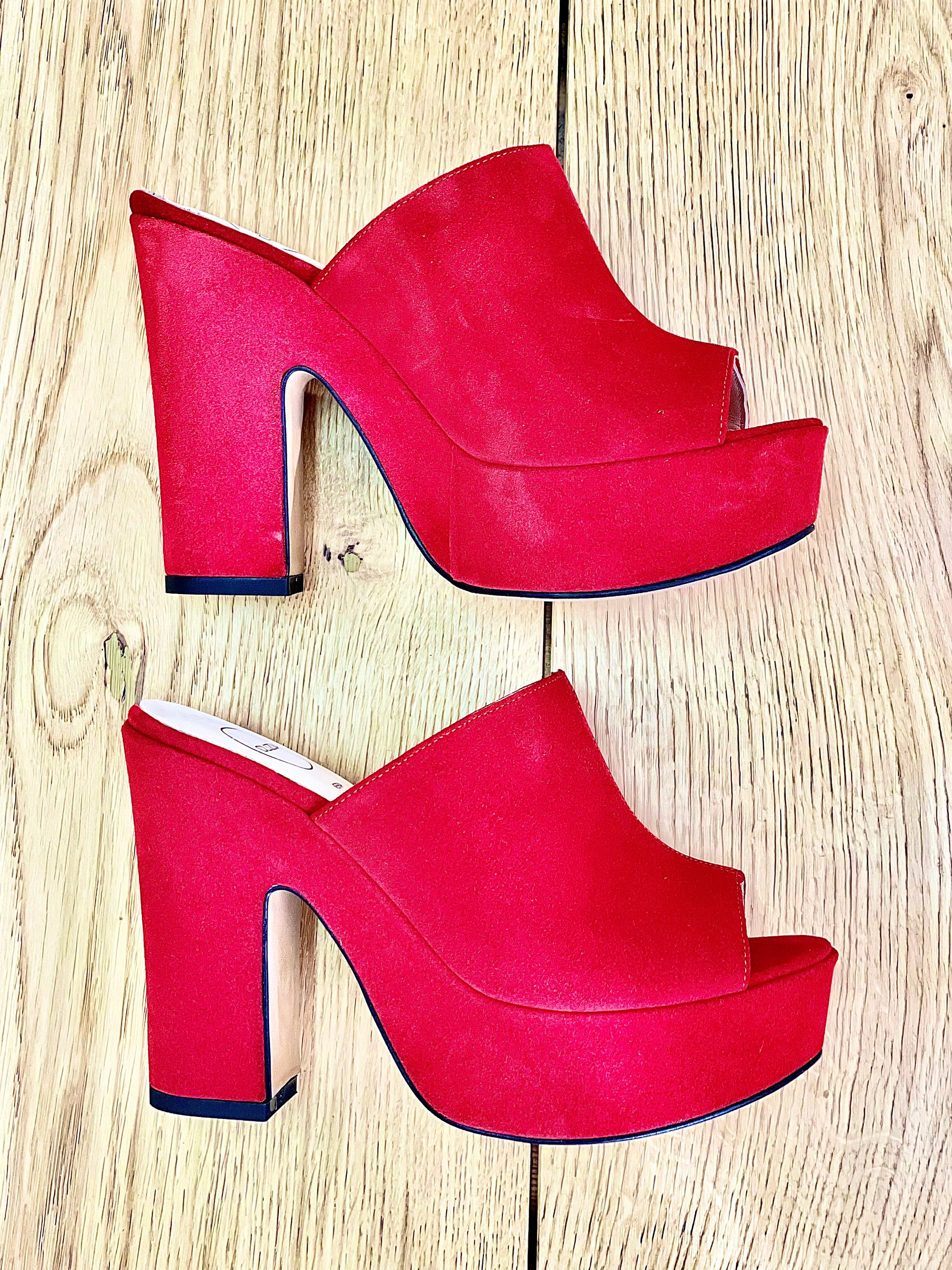 סנדלי פלטפורמה מזמש עם עקב גבוה 11.5 ס"מ ופלטפורמה 4 ס"מ.
