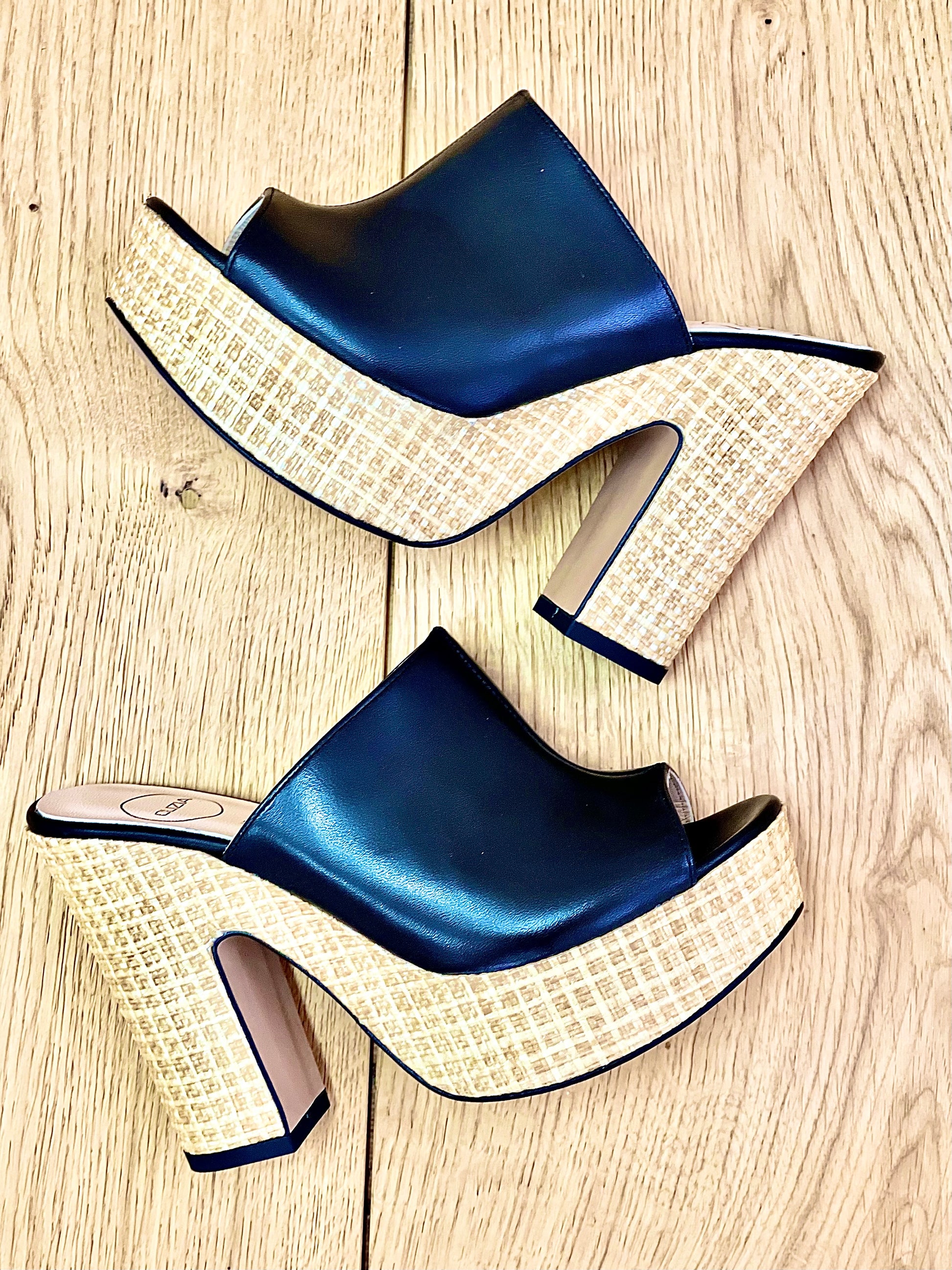 סנדלי סאבוט מעור על פלטפורמה, עקב גבוה 11.5 ס"מ ופלטפורמה 4 ס"מ.