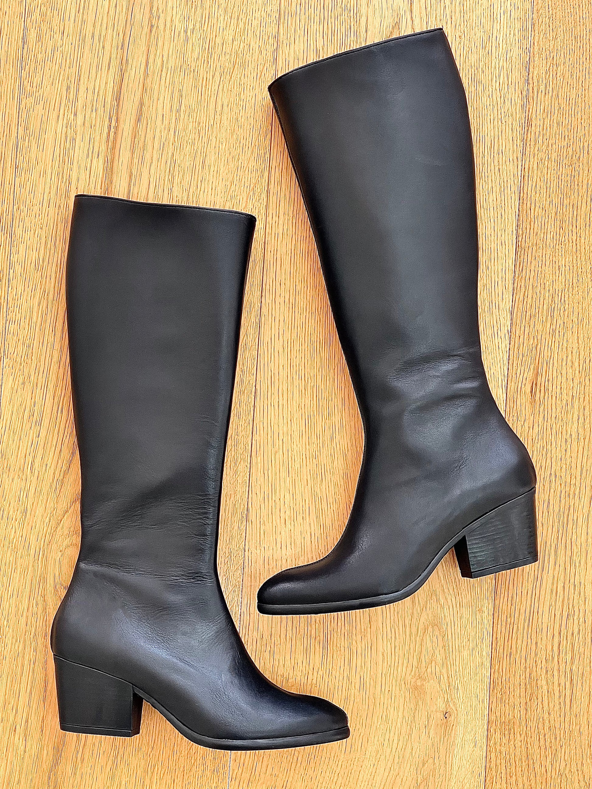מגפי טקסן עם חרטום עגול ורוכסן.