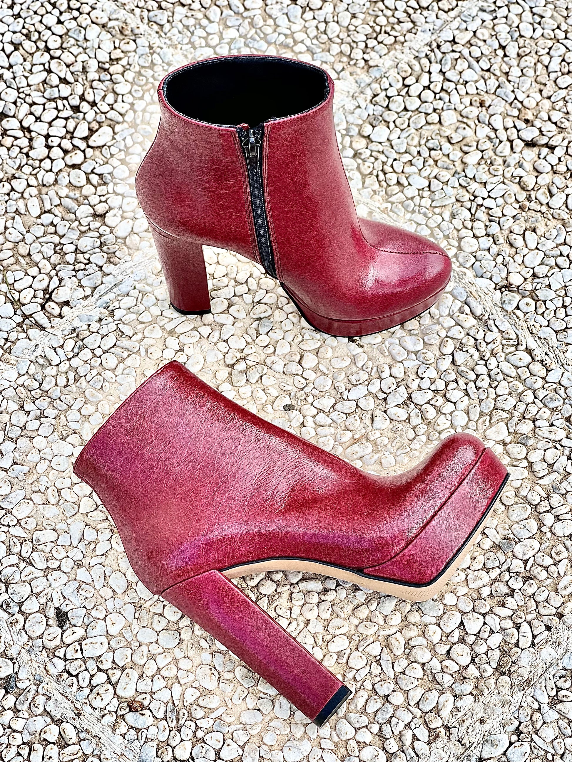 מגפון עור עם עקב 12 ס"מ ופלטפורמה 2 ס"מ עם רוכסן פנימי.