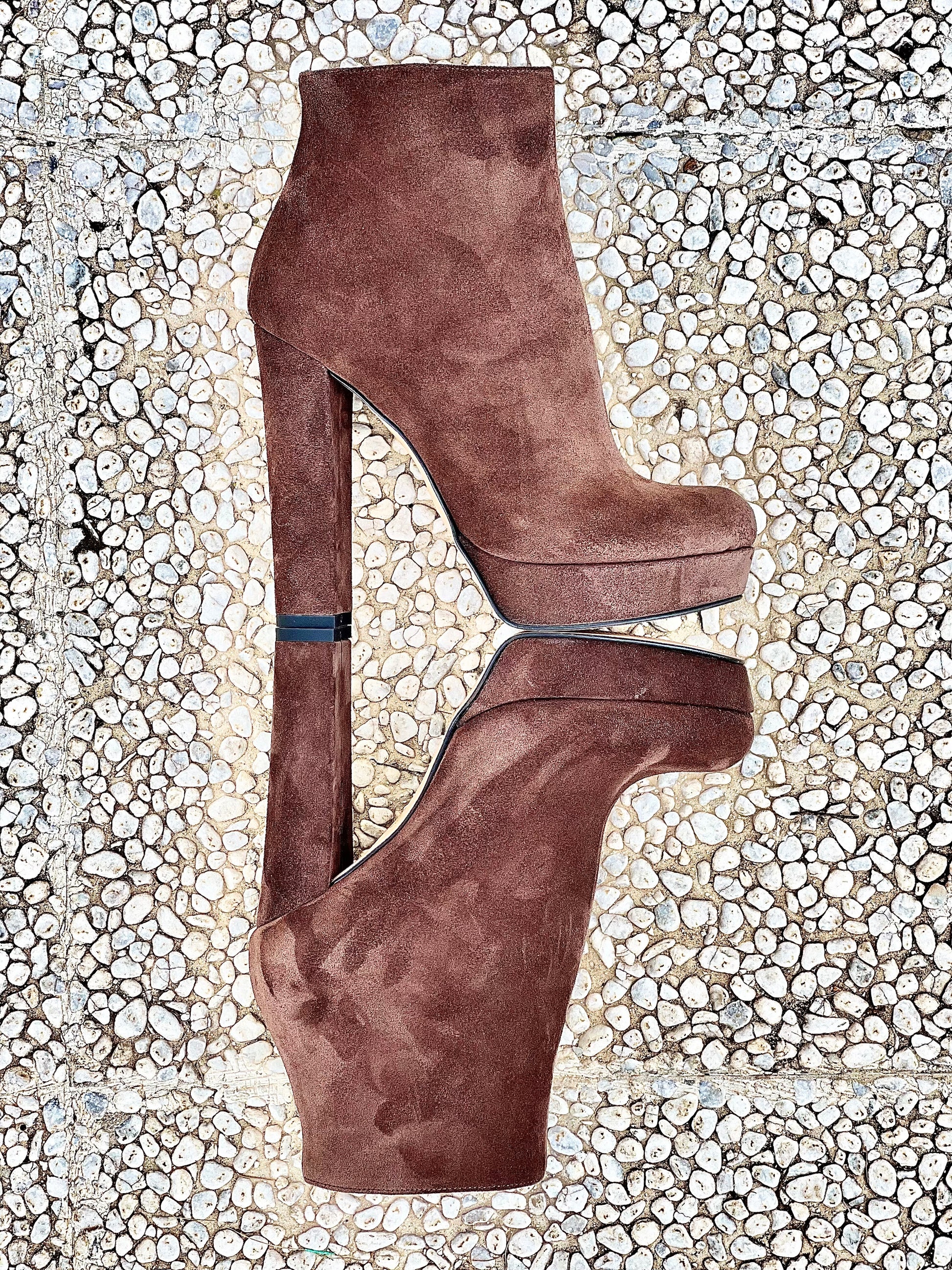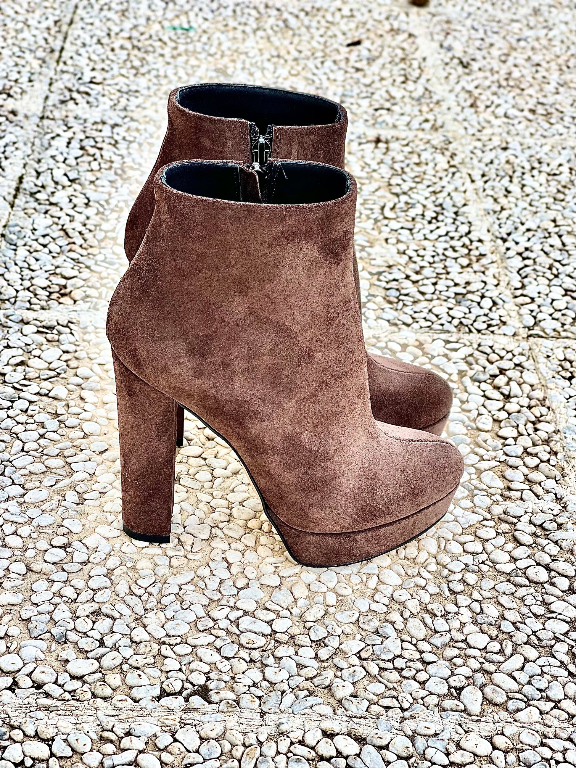 מגפון קרסול מזמש עם עקב 12 ס"מ ופלטפורמה 2 ס"מ עם רוכסן פנימי.
