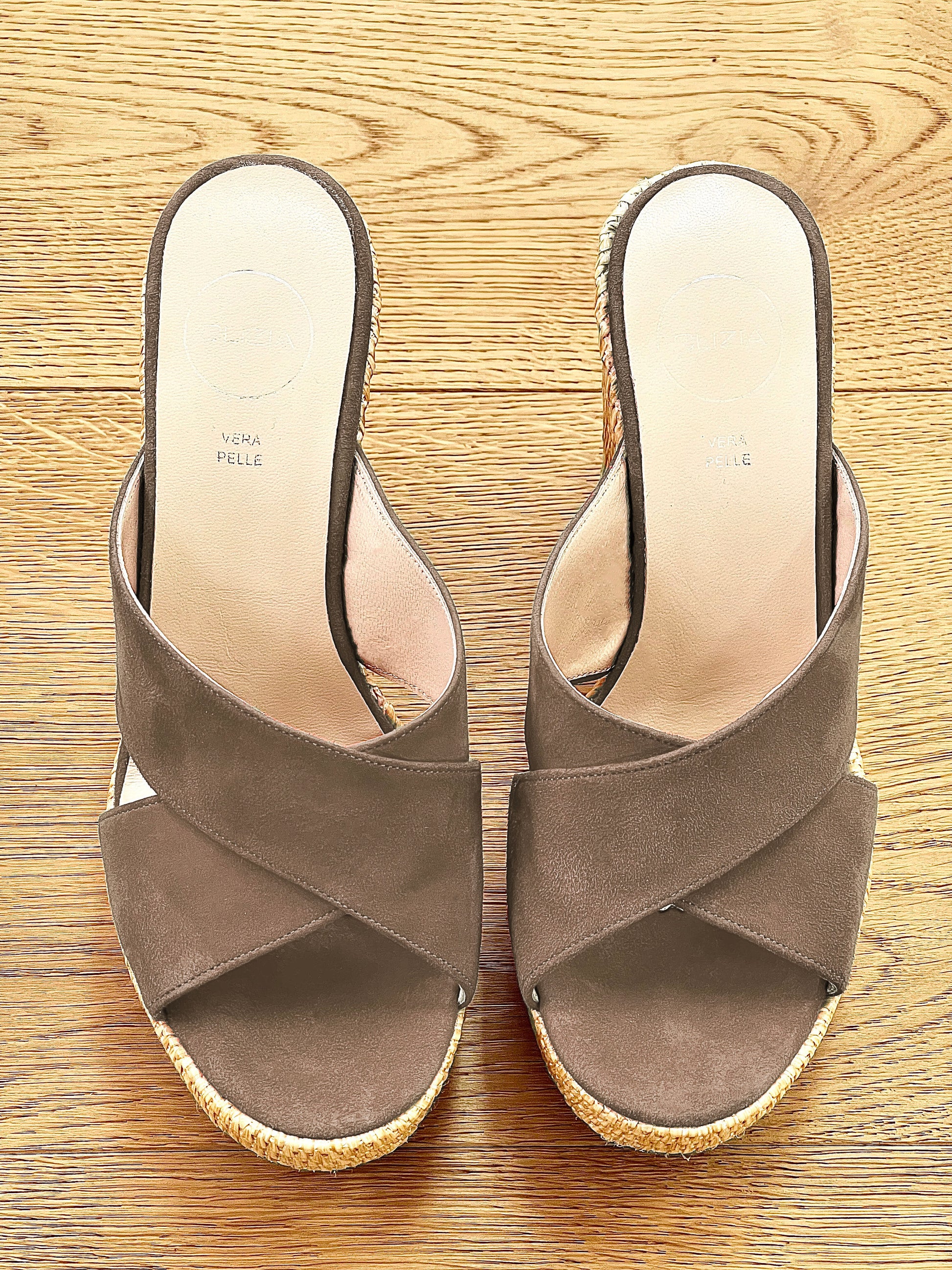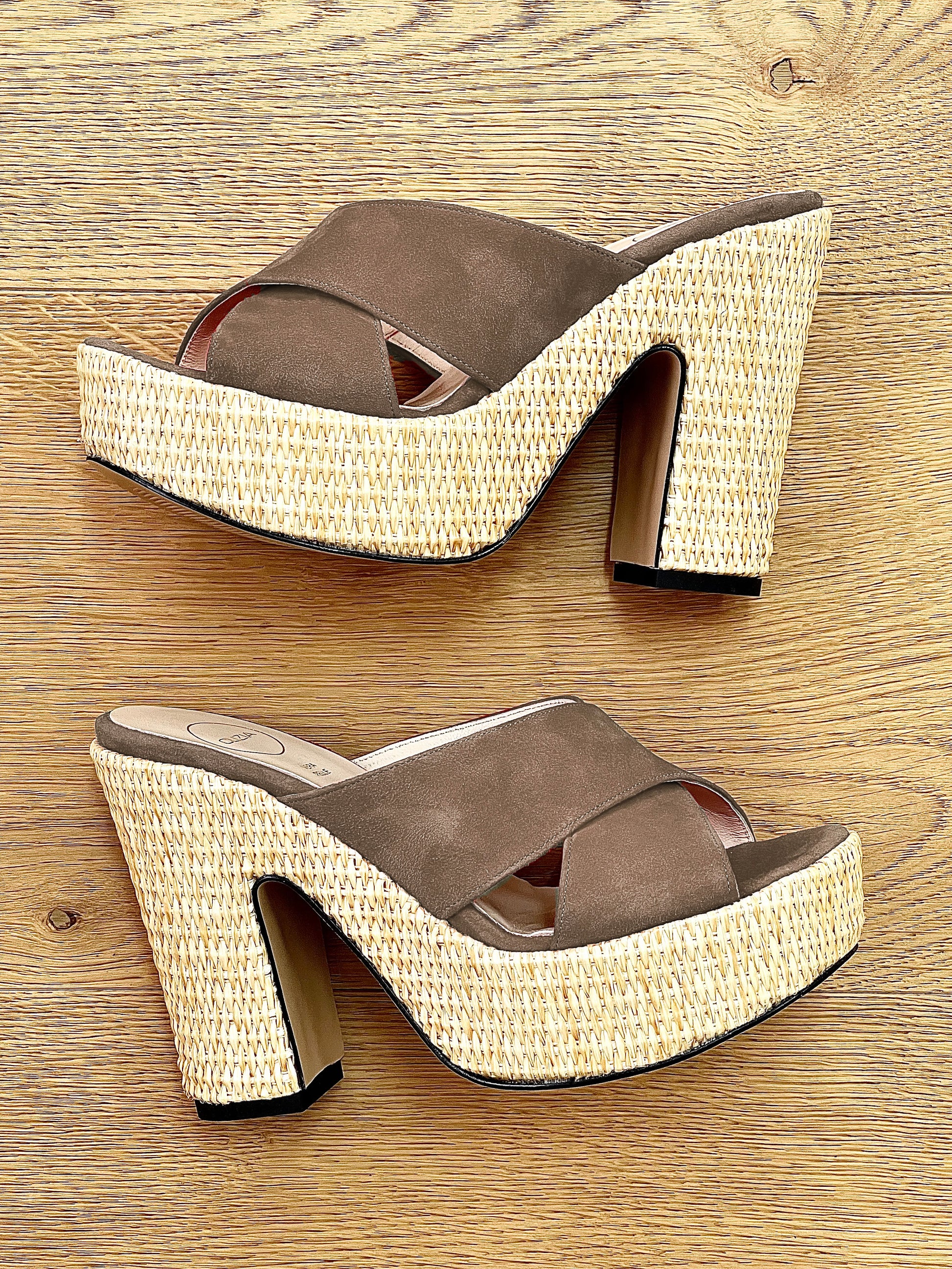 סנדלים גבוהים עם פלטפורמת רפיה מוצלבת.