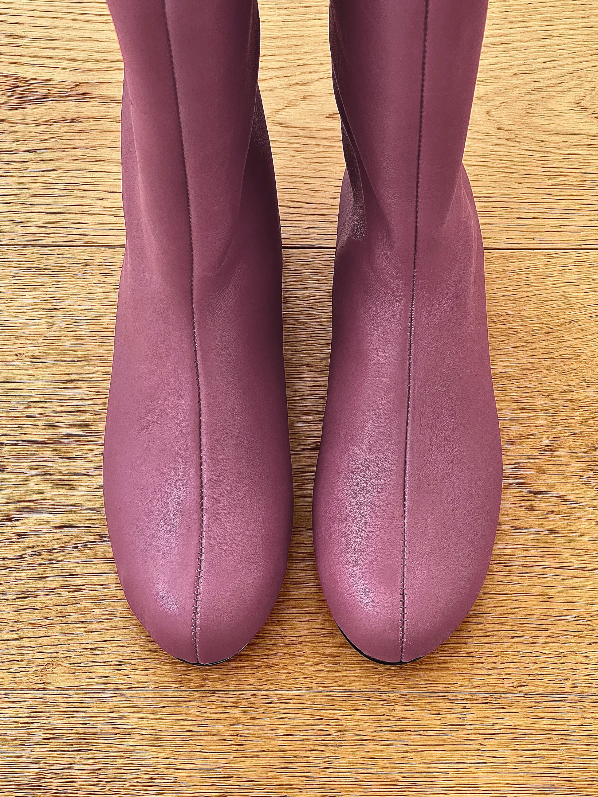 מגפיים צינוריים נמוכים עם חרטום עגול.
