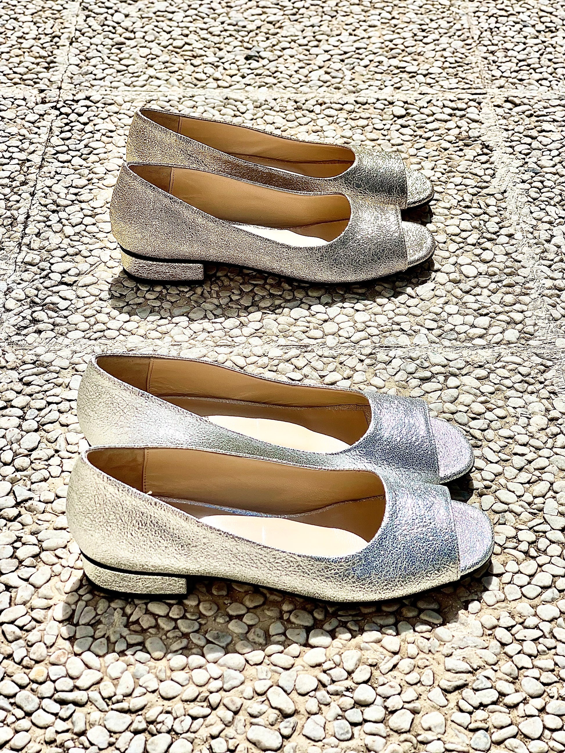 נעלי עקב נמוכות עם קצה פתוח ועקב ברוחב 2 ס"מ.