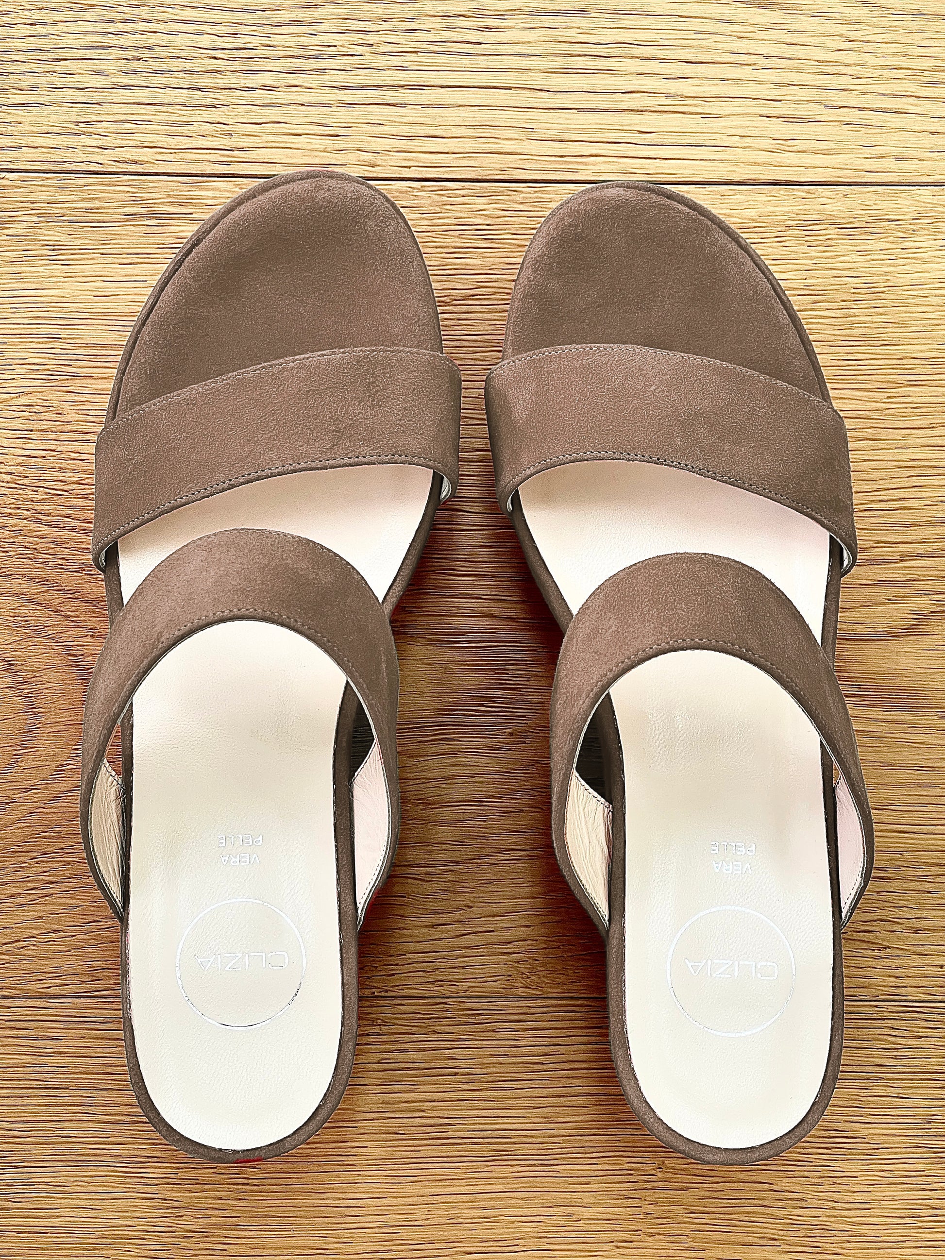 סנדלים עם רצועות כפולות ופלך בינוני.