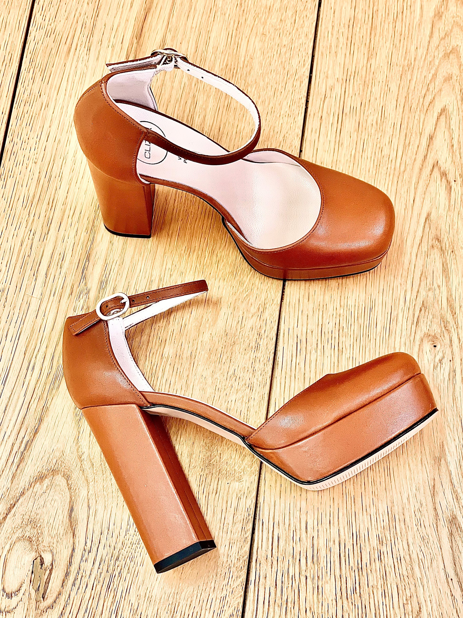 אצבעות חצי מרובעות ועקב מחשוף מעור, עקב 12 ס"מ ופלטפורמה 3 ס"מ.