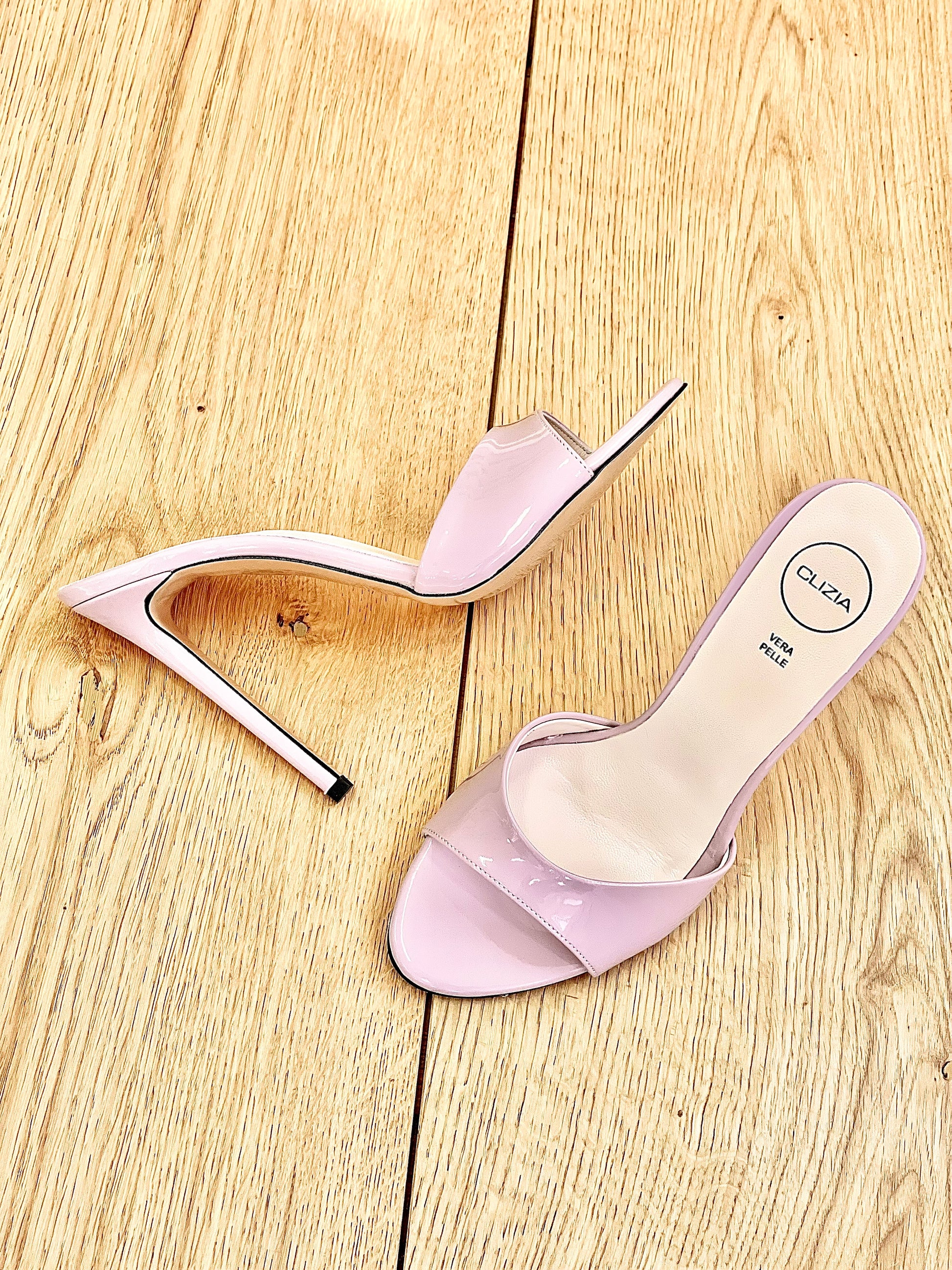 סנדלי מיול מעור לכה עם עקב סטילטו.