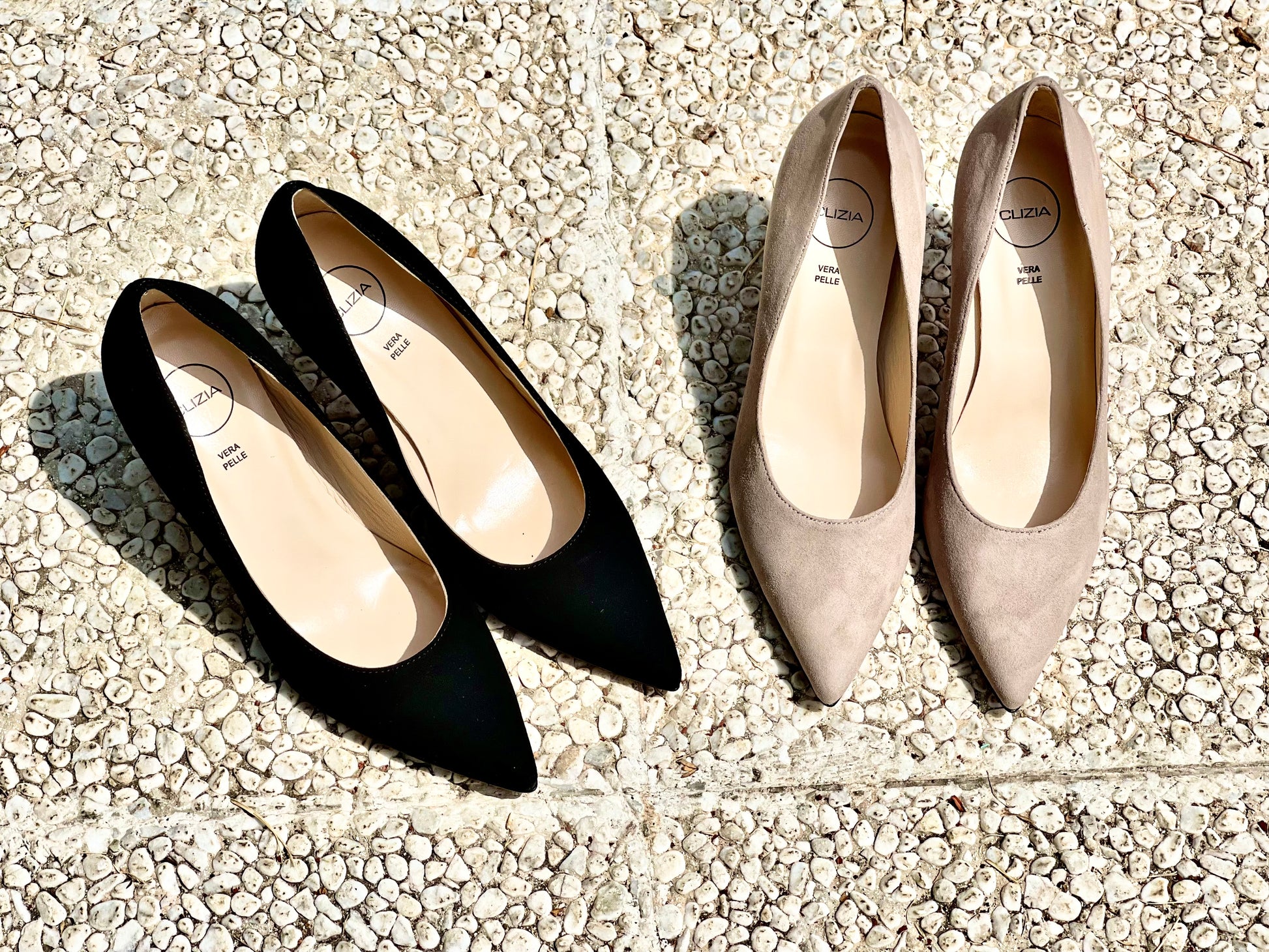 נעלי עקב זמש מחודדות עם עקב בגובה 7.5 ס"מ.