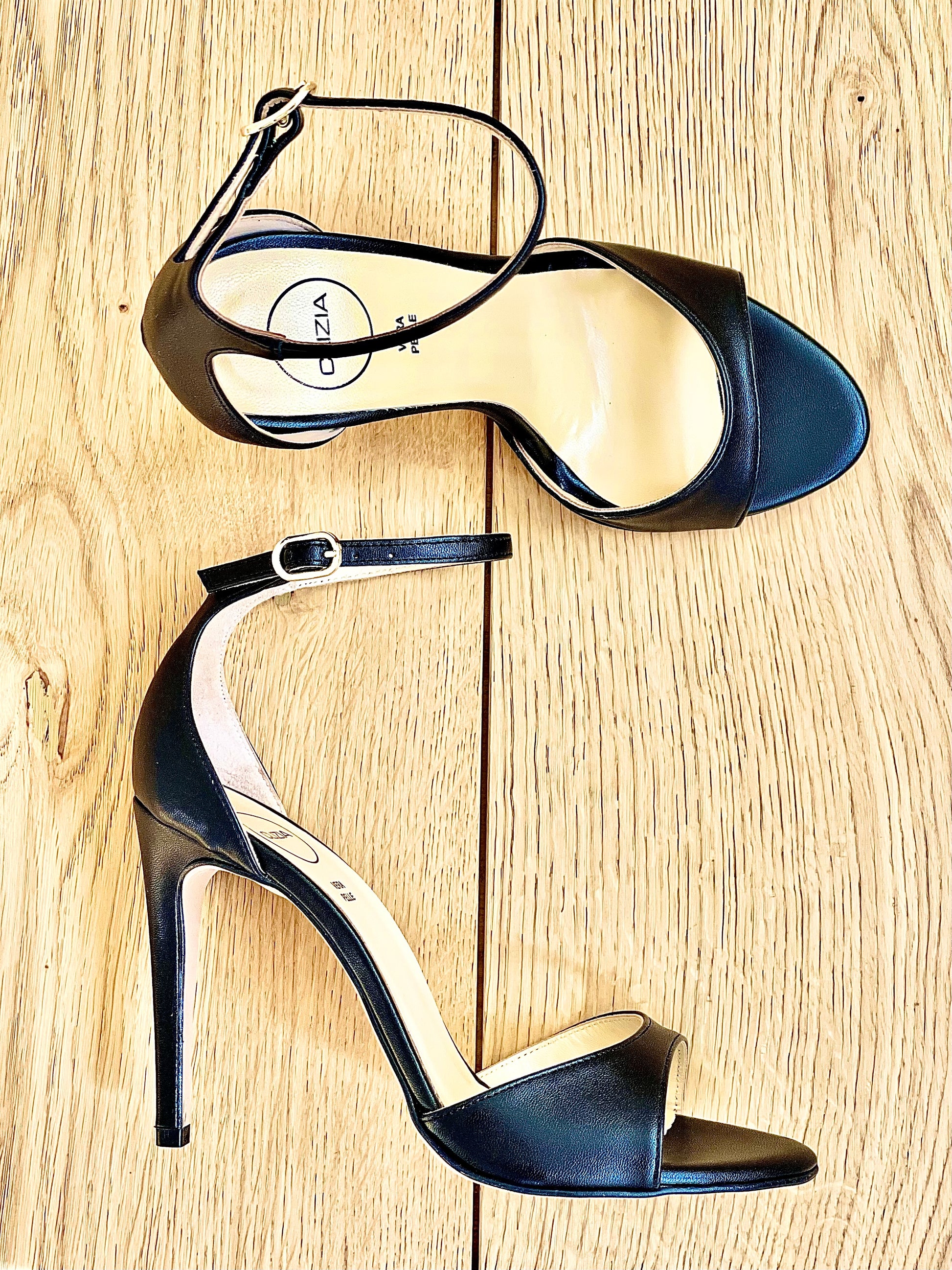 סנדלים גבוהים עם עקב סטילטו 10 ס"מ ורצועה.