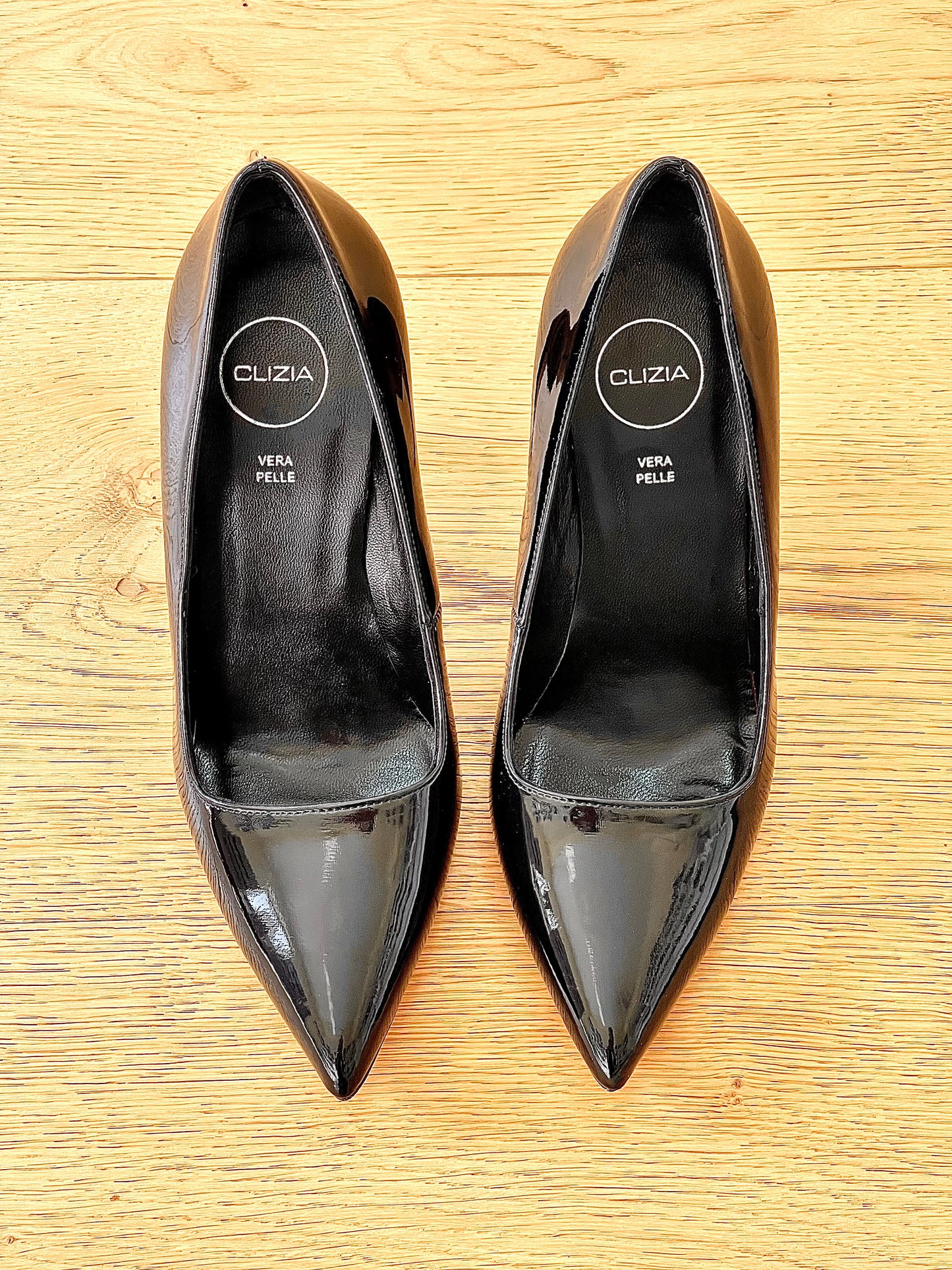 נעלי עקב גבוהות עם חרטום מחודד בגובה 10 ס"מ.