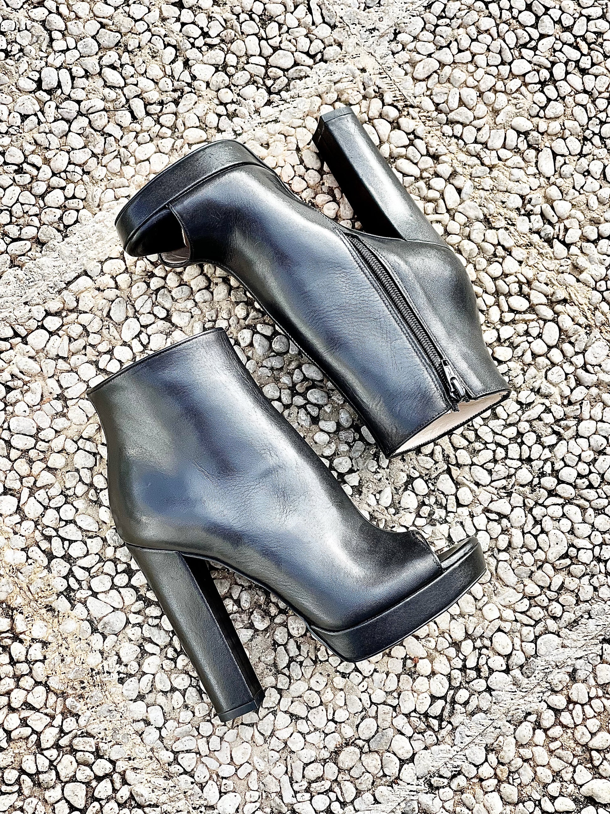 מגפון עור פתוח עם עקב 12 ס"מ ופלטפורמה 2 ס"מ.