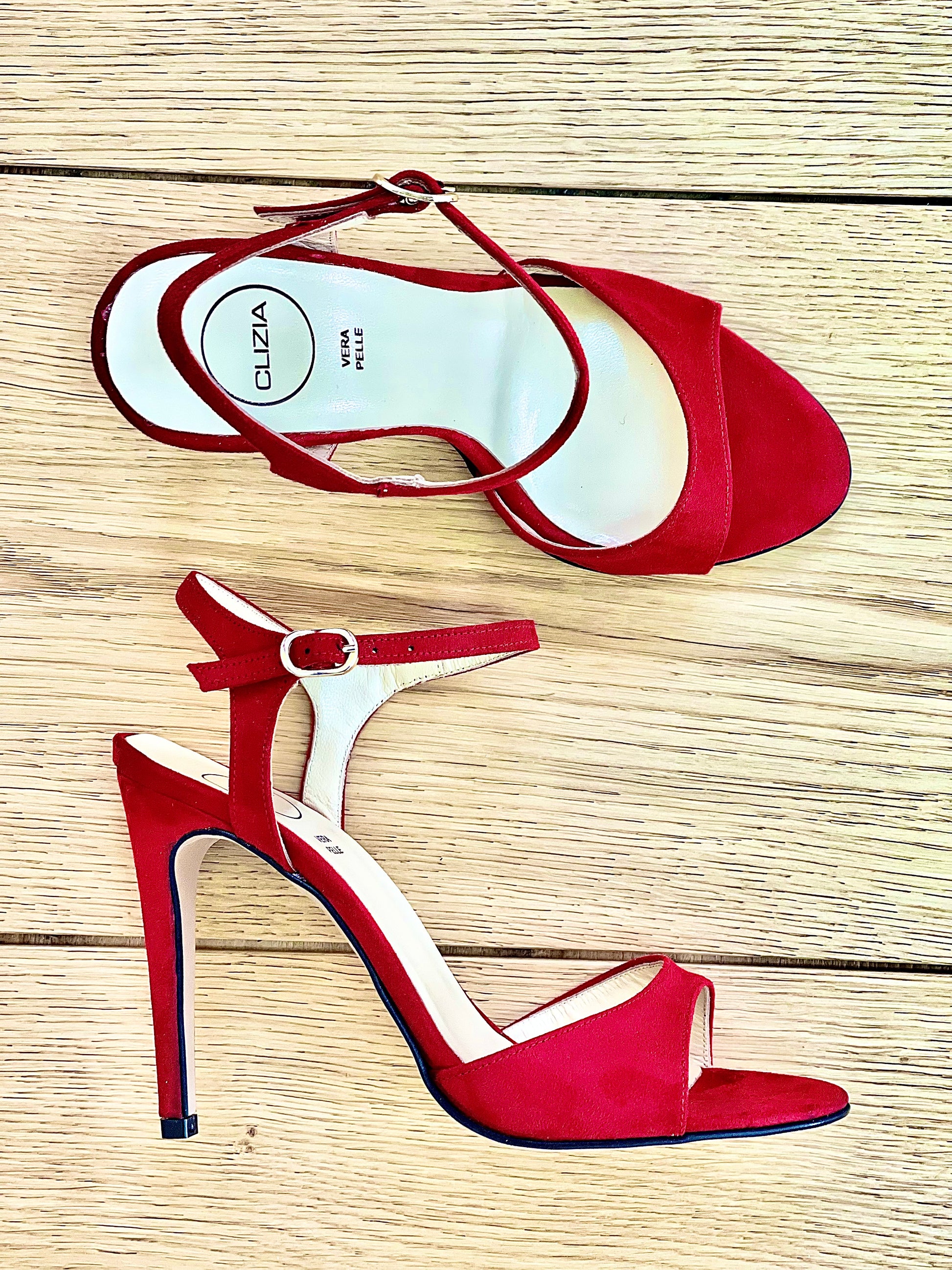 סנדלים מזמש עם עקב גבוה, רצועה ועקב סטילטו.