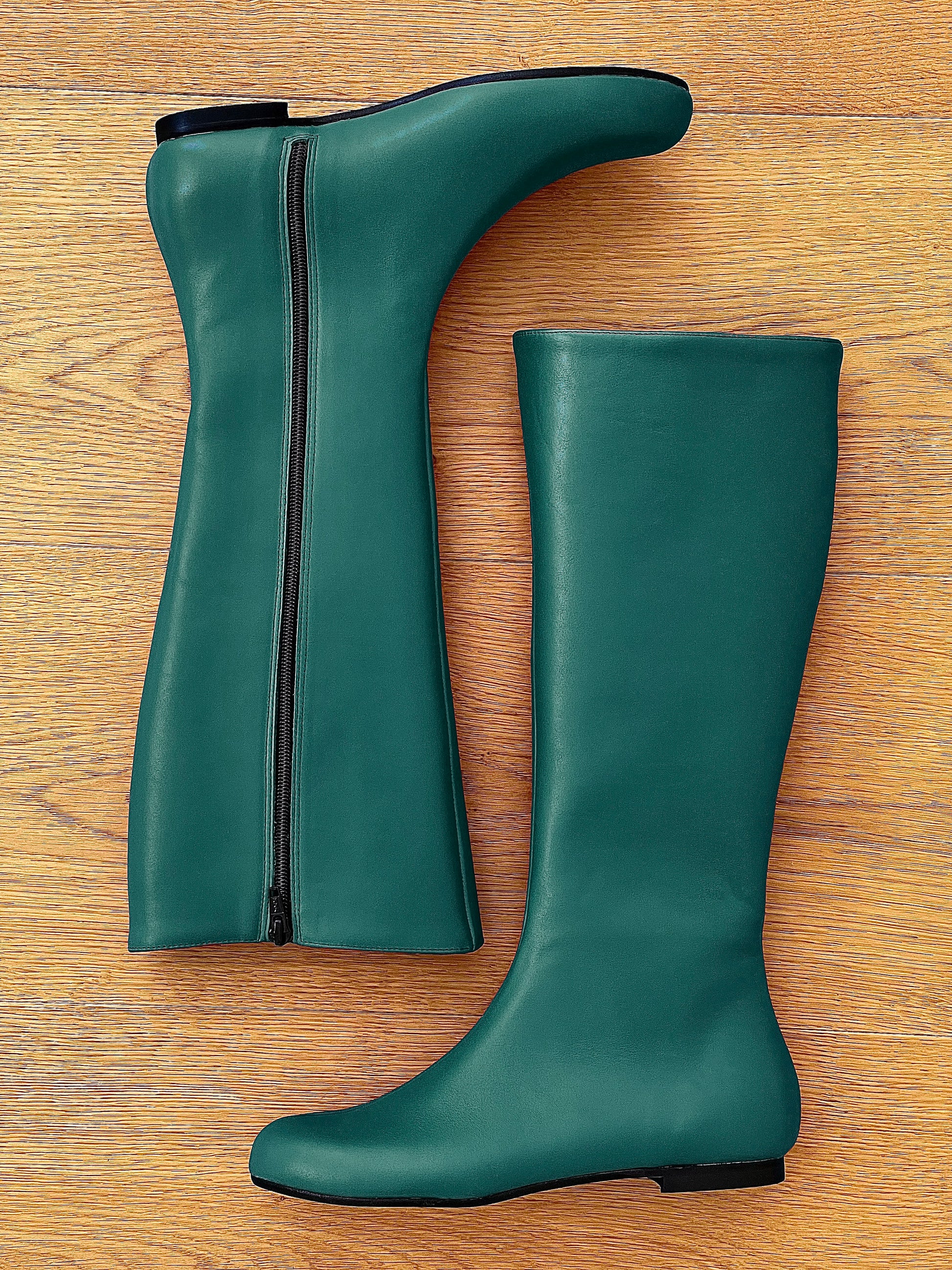 מגפיים נמוכים עם חרטום עגול ועקב בגובה 1 ס"מ.