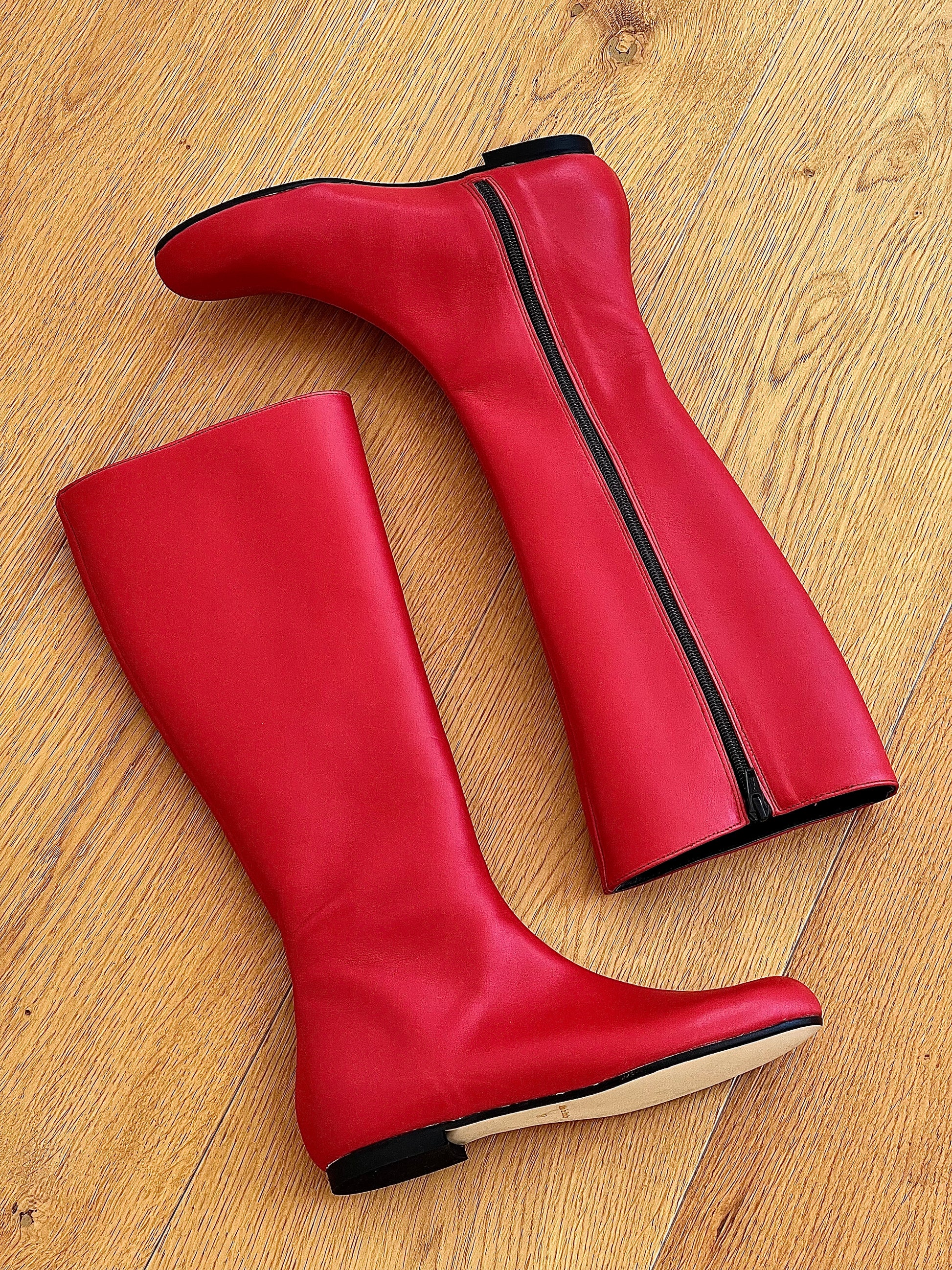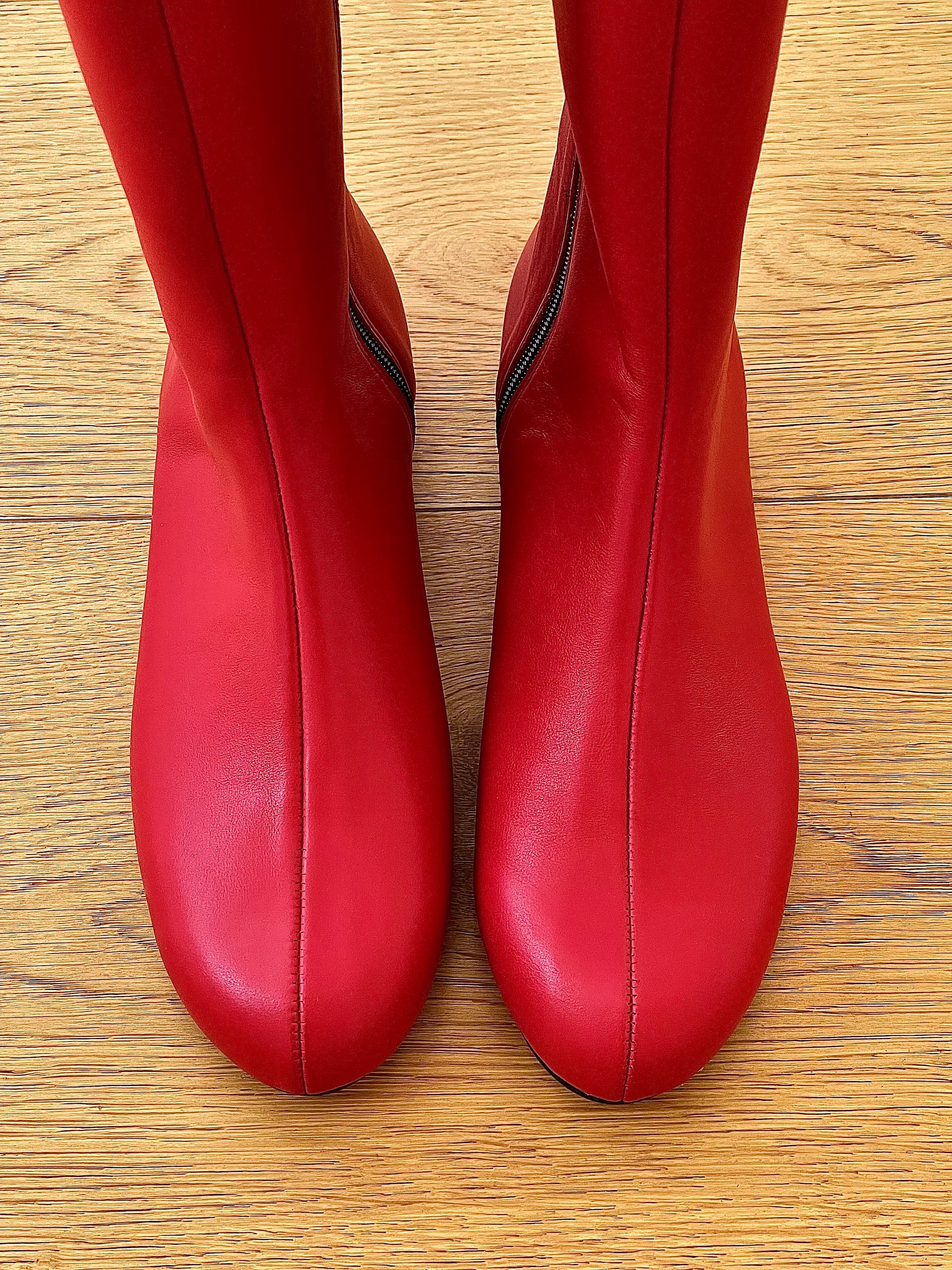 מגפיים נמוכים עם חרטום עגול ועקב בגובה 1 ס"מ.