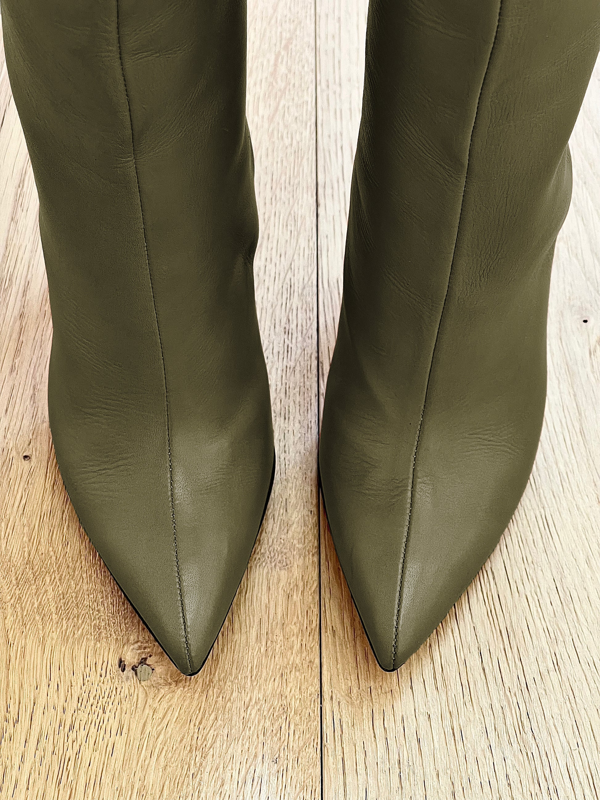 מגפיים צינוריים גבוהים עם חרטום מחודד ועקב סטילטו.