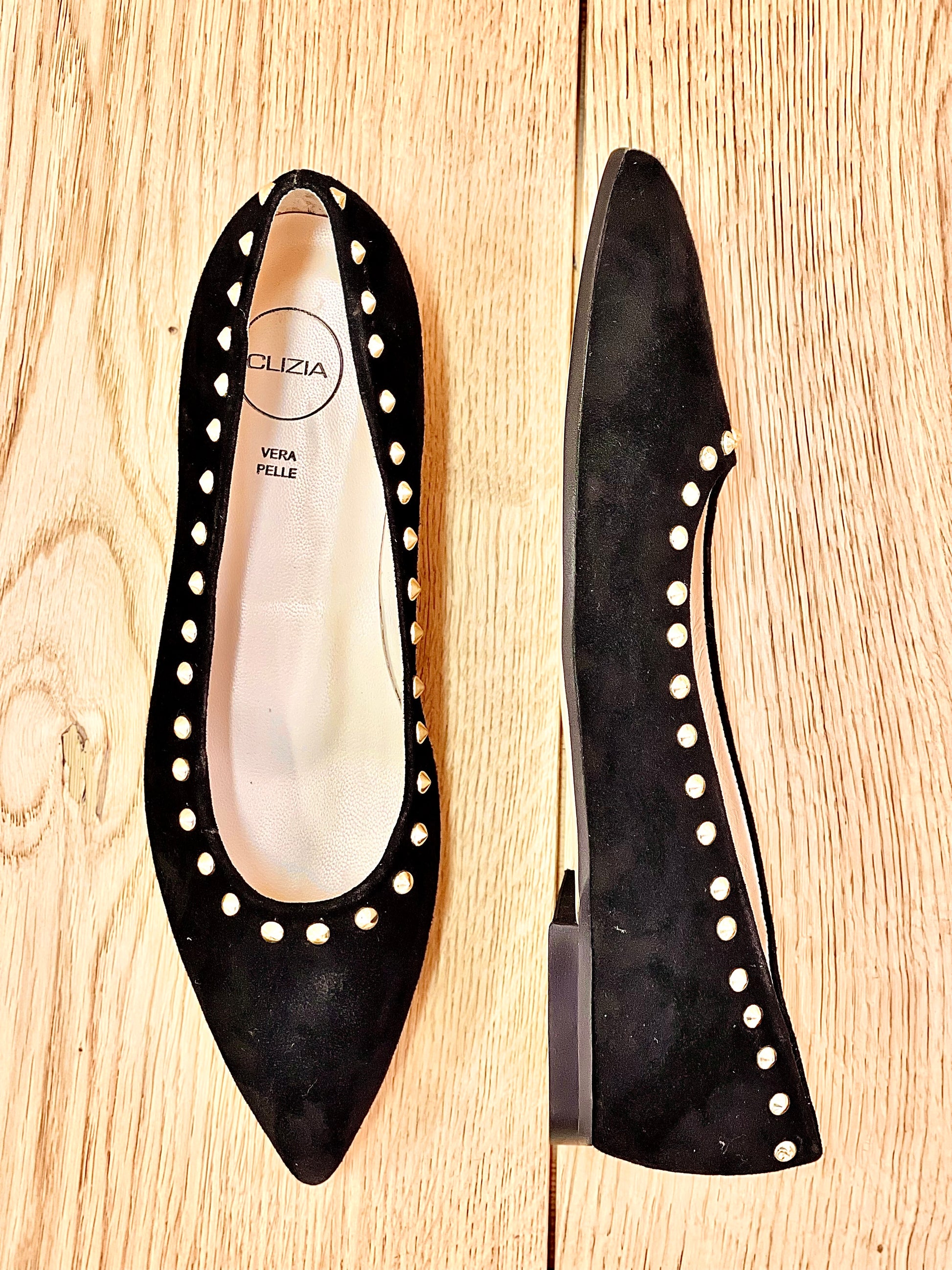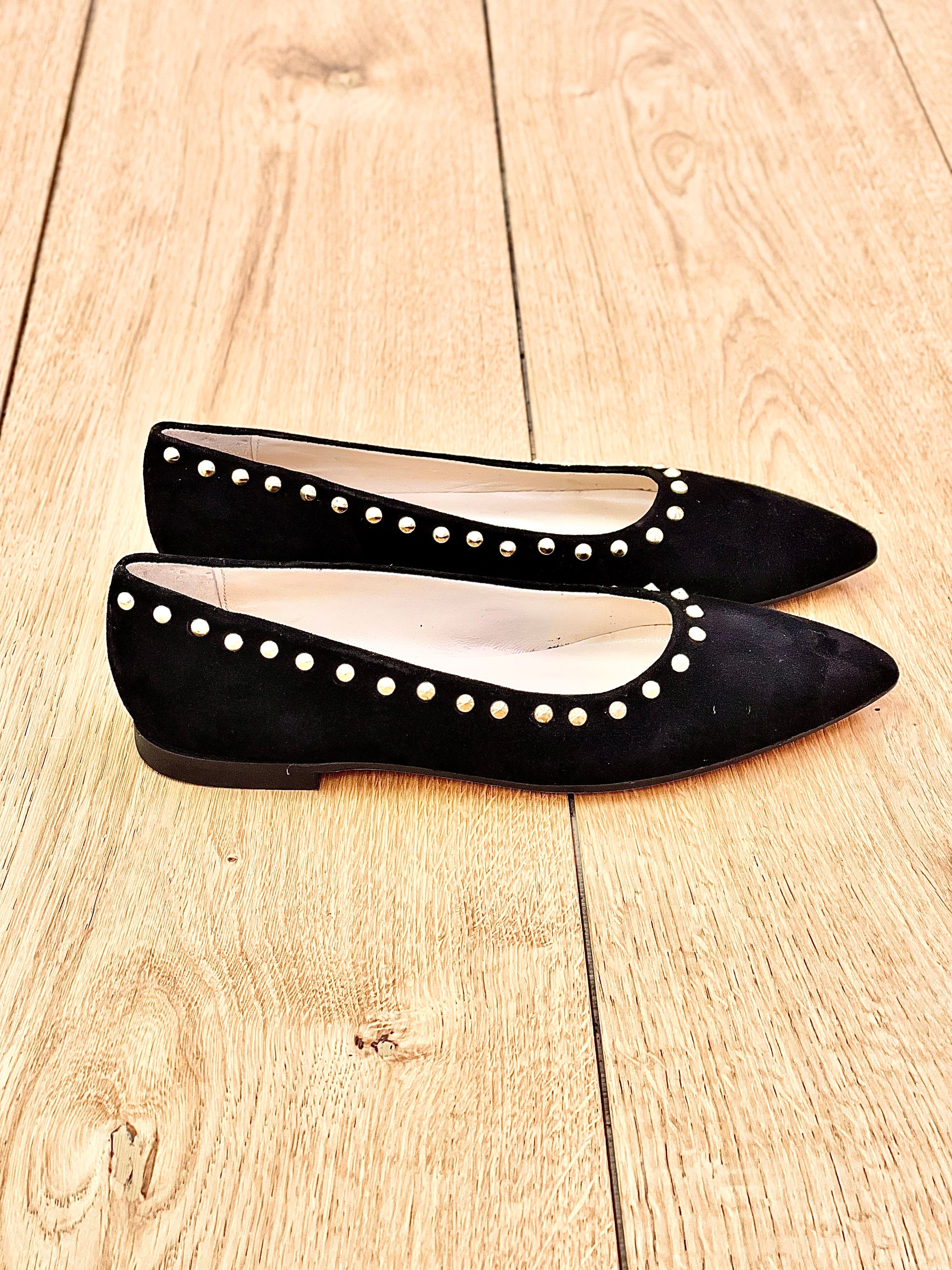 בלרינות זמש עם חריצים מחודדים וניטים.