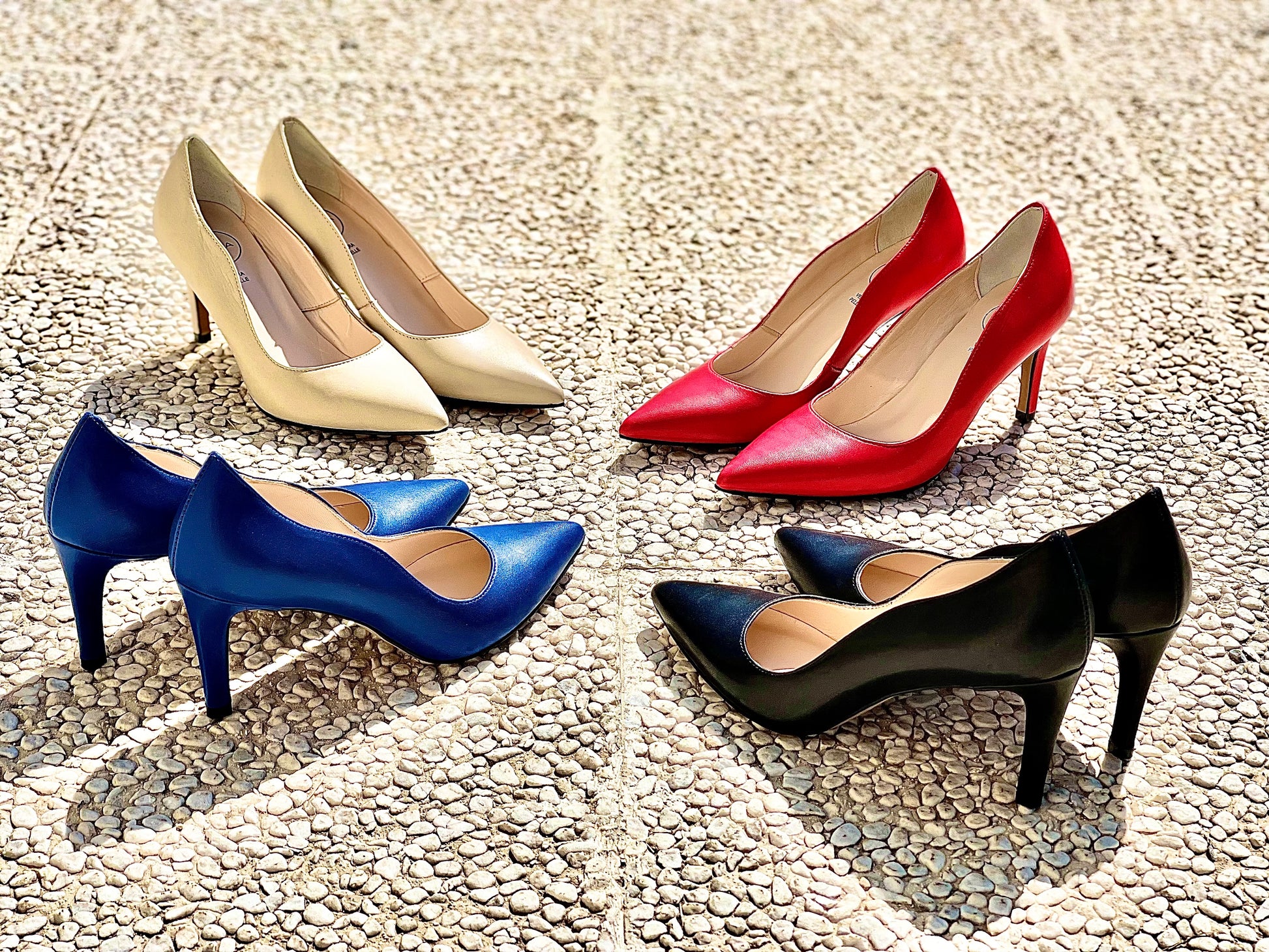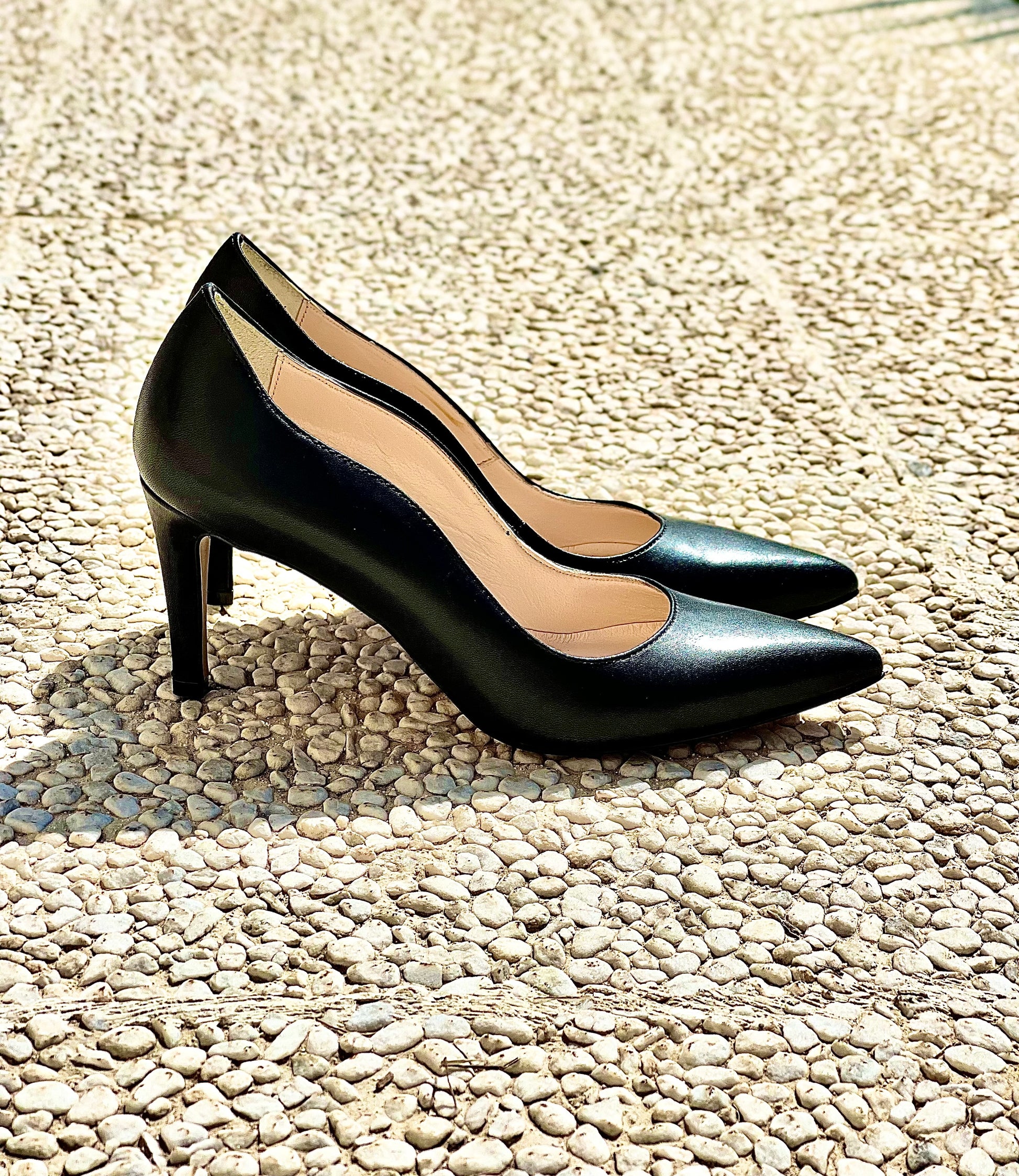 נעלי עור עם חרטום מחודד ועקב 75 מ"מ.