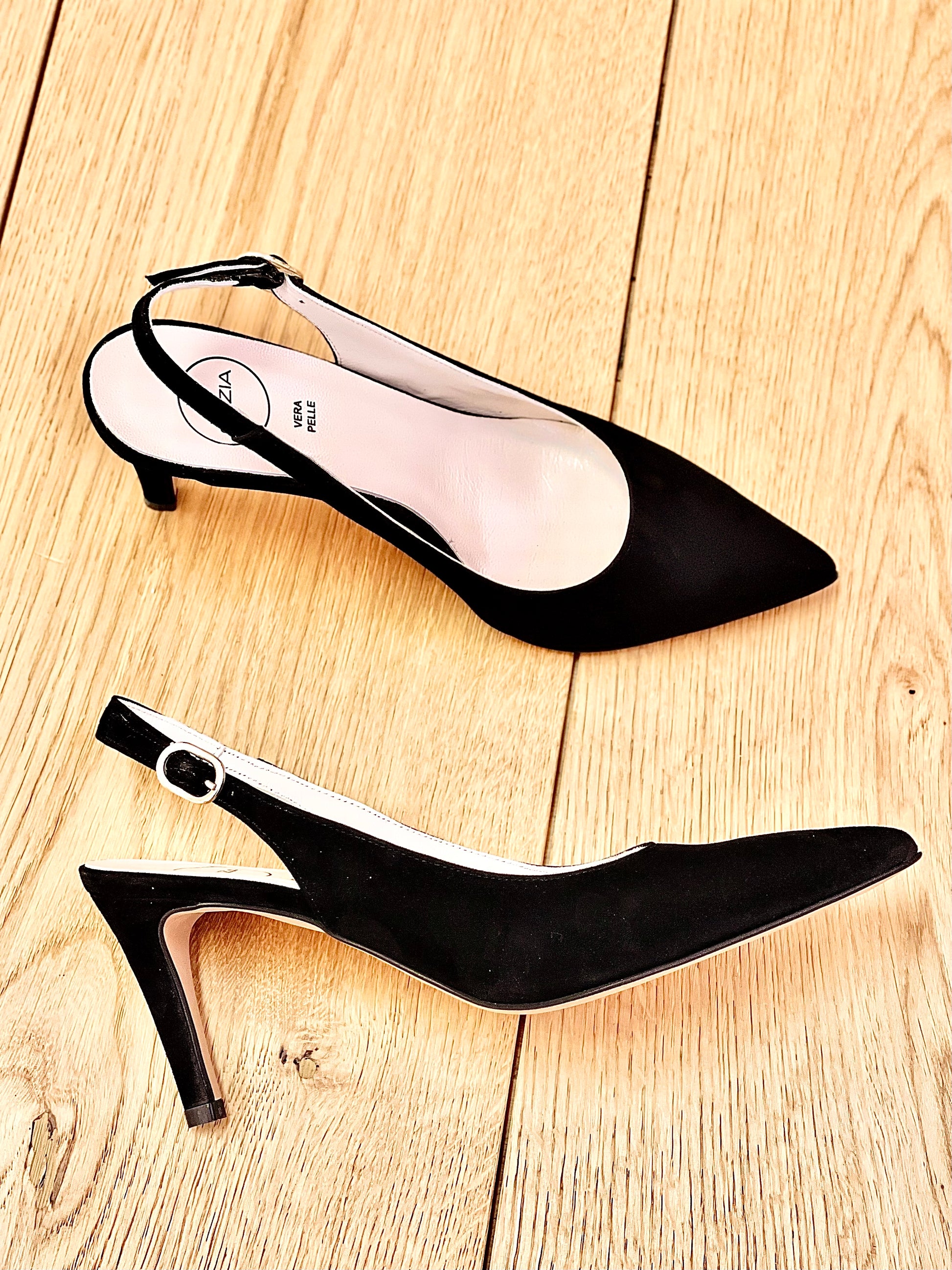 נעלי עקב עם חרטום מחודד מזמש ועקב 75 מ"מ.