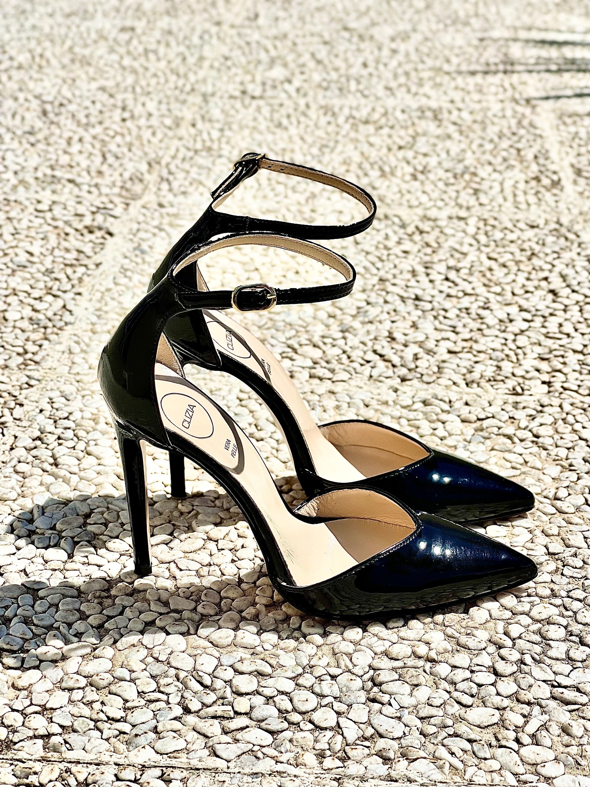 אצבעות מחודדות ועקב מחודדים עם צווארון V ועקב 10 ס"מ.
