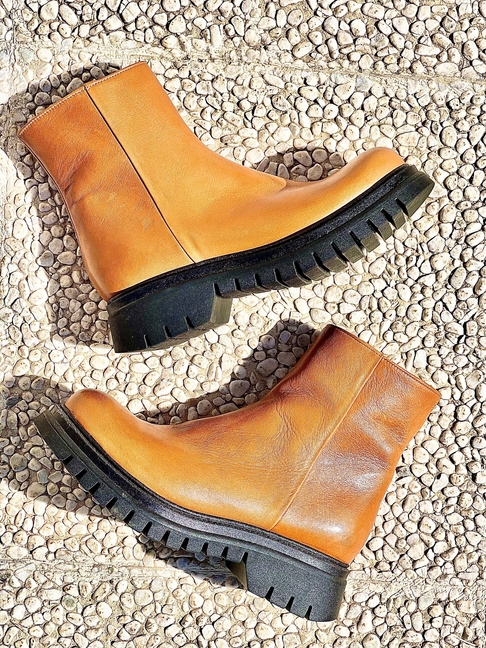 מגפוני עור עם סוליית גומי ועקב 3 ס"מ.