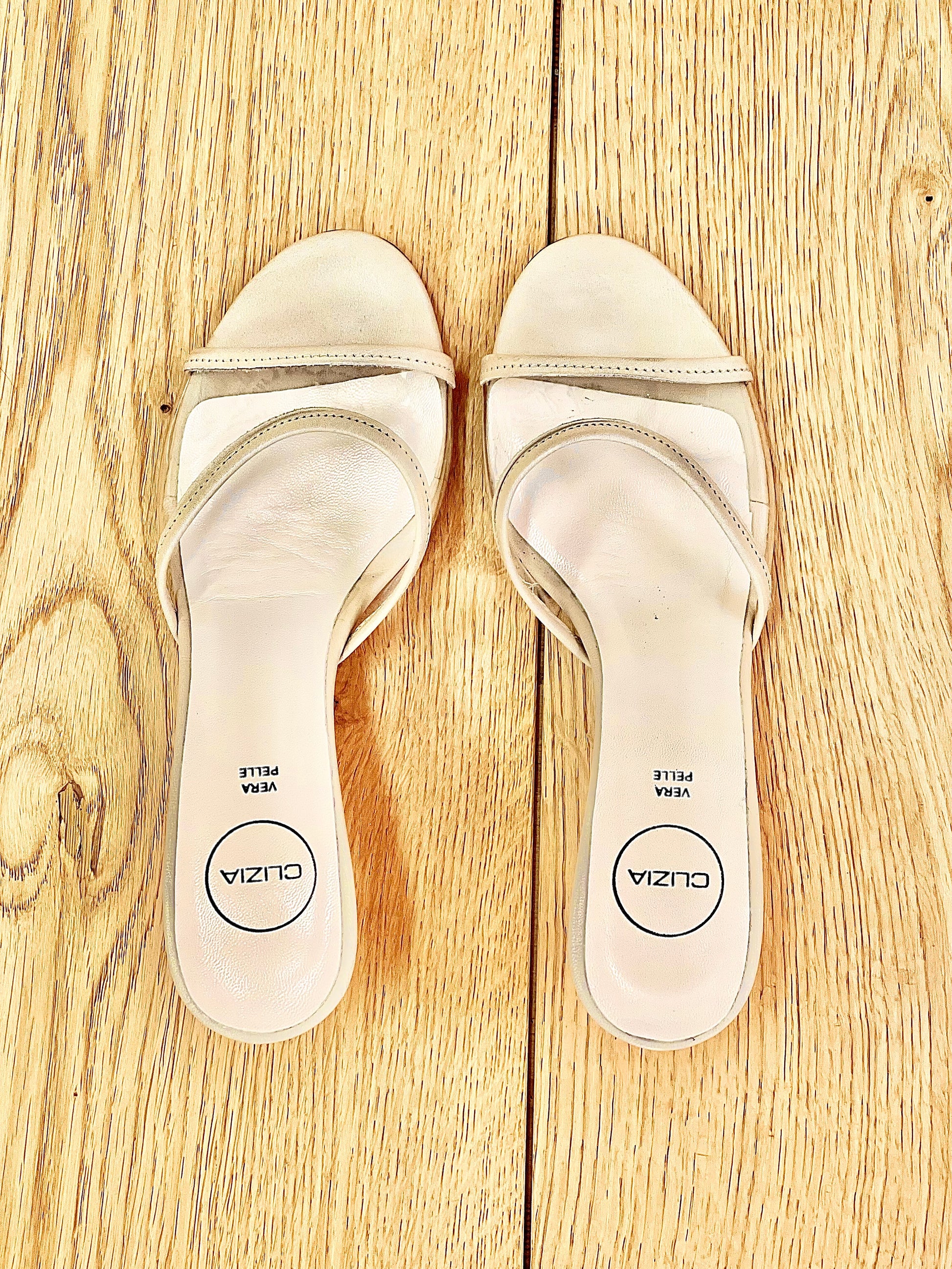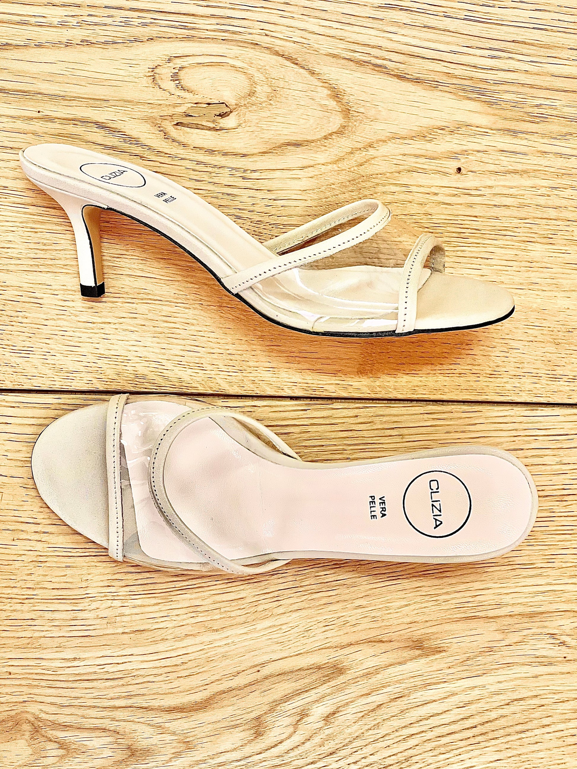 סנדלים שקופים מ-PVC ועור עם עקב 6 ס"מ.