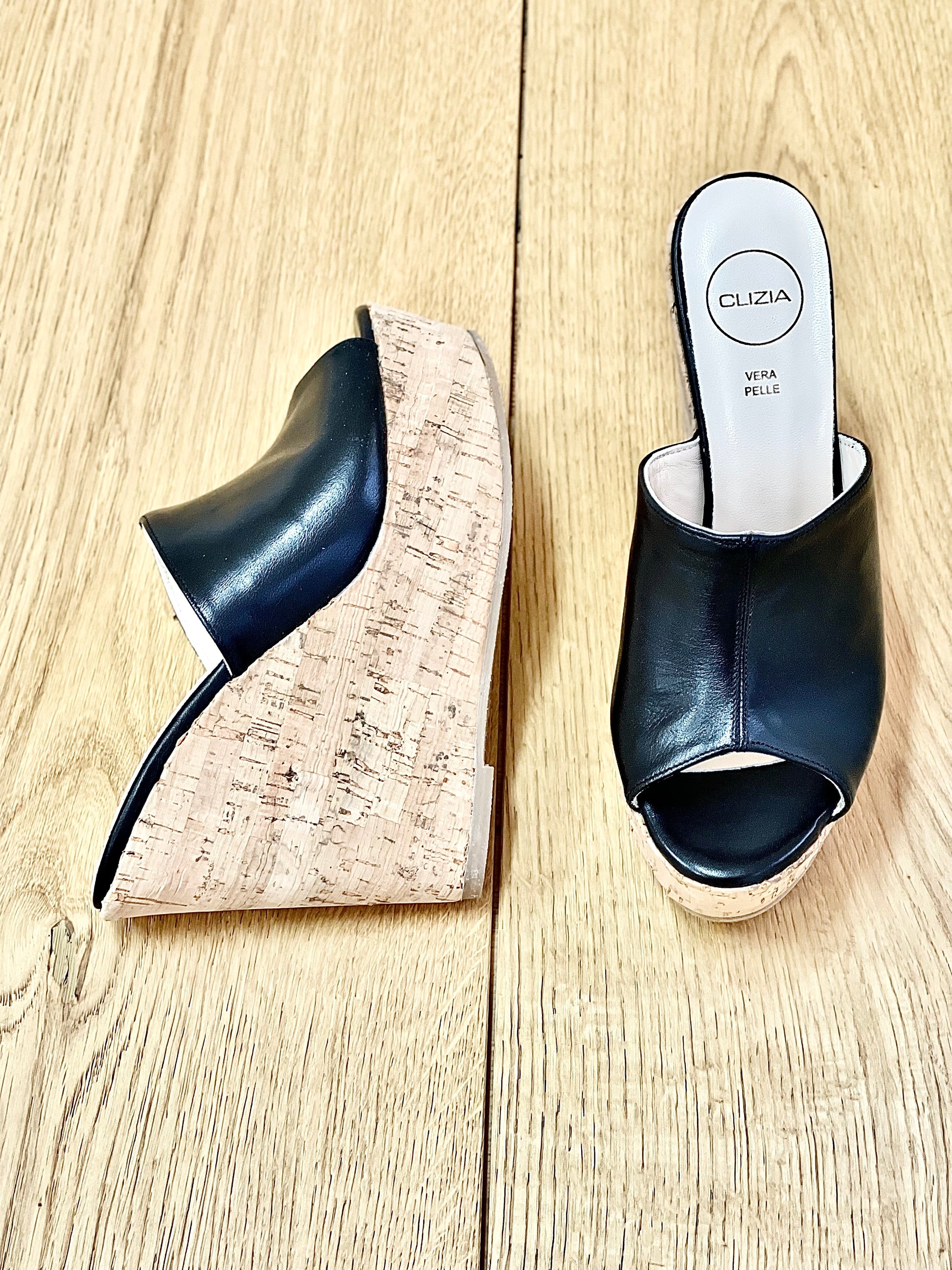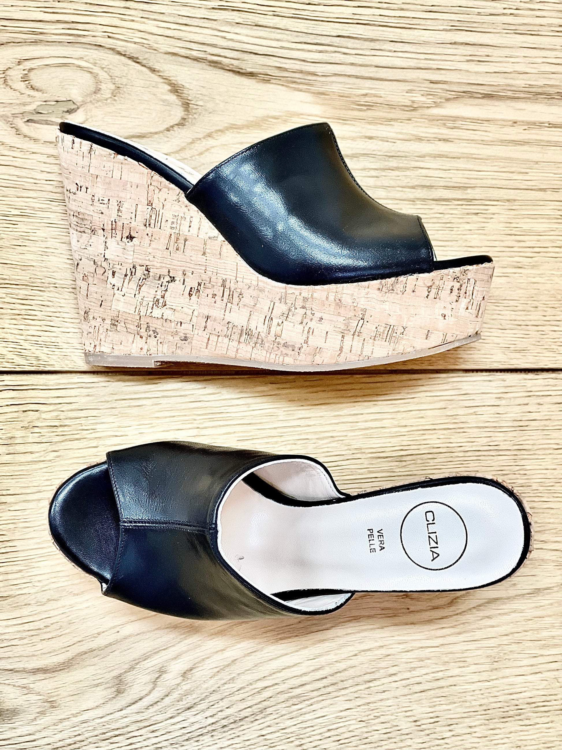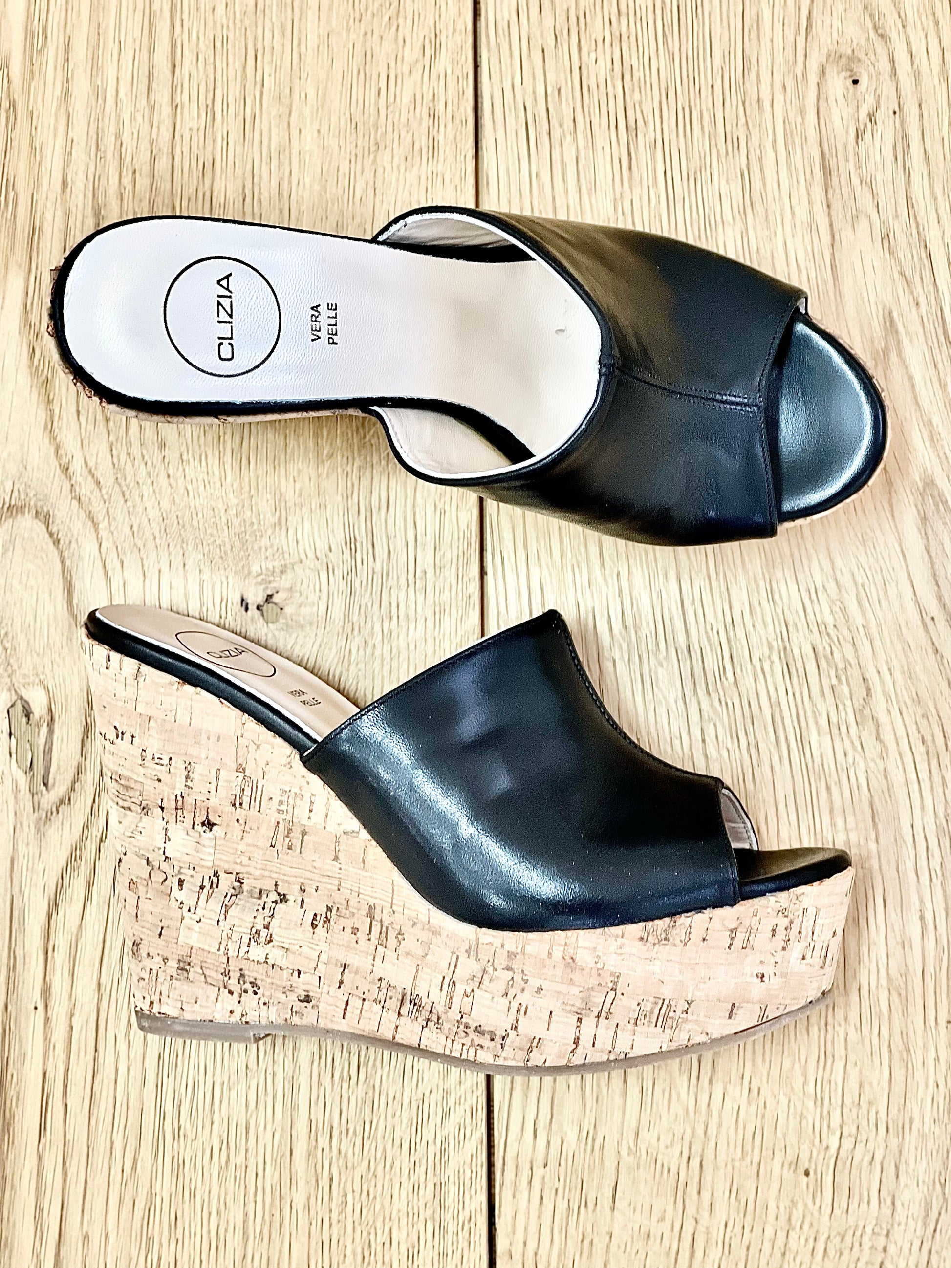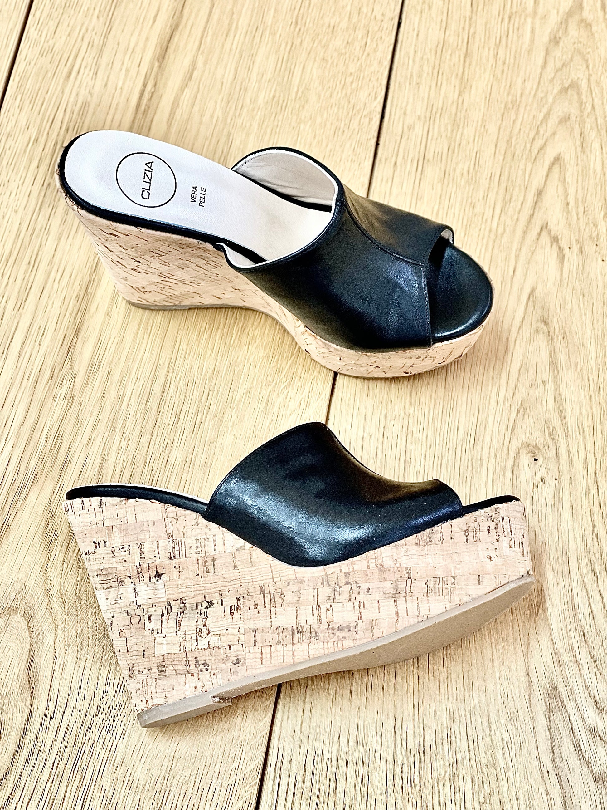 סנדלים גבוהים עם פלטפורמת פלטפורמה עשויי שעם טבעי.