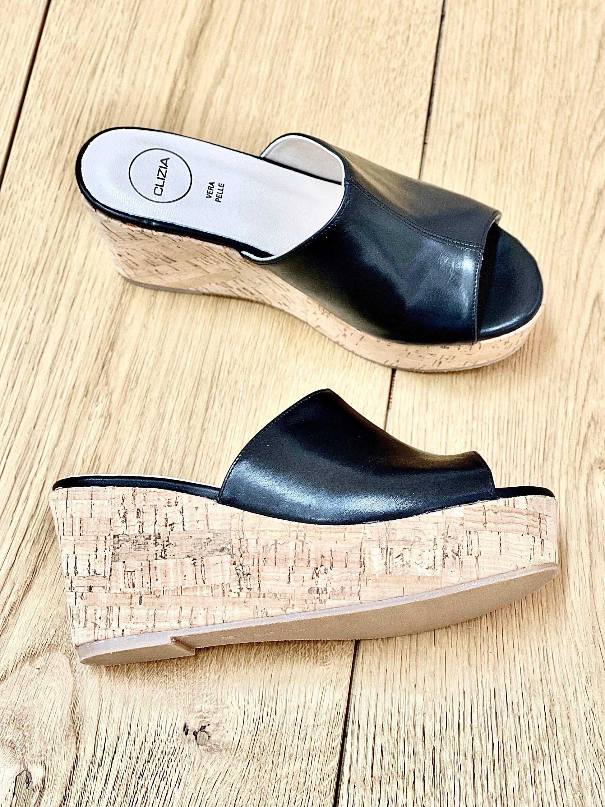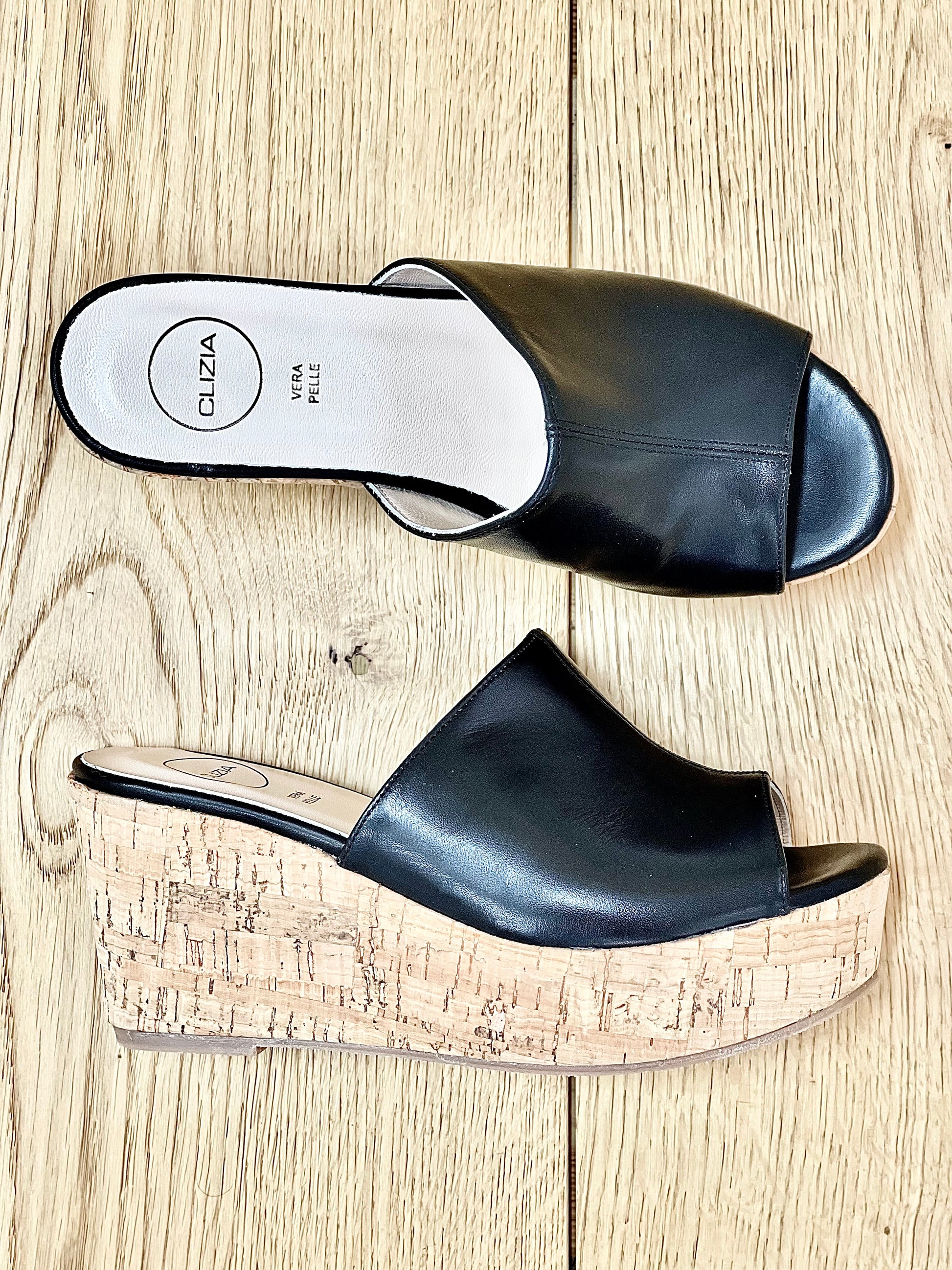 סנדלי סאבוט מעור עם פלטפורמת שעם טבעית.