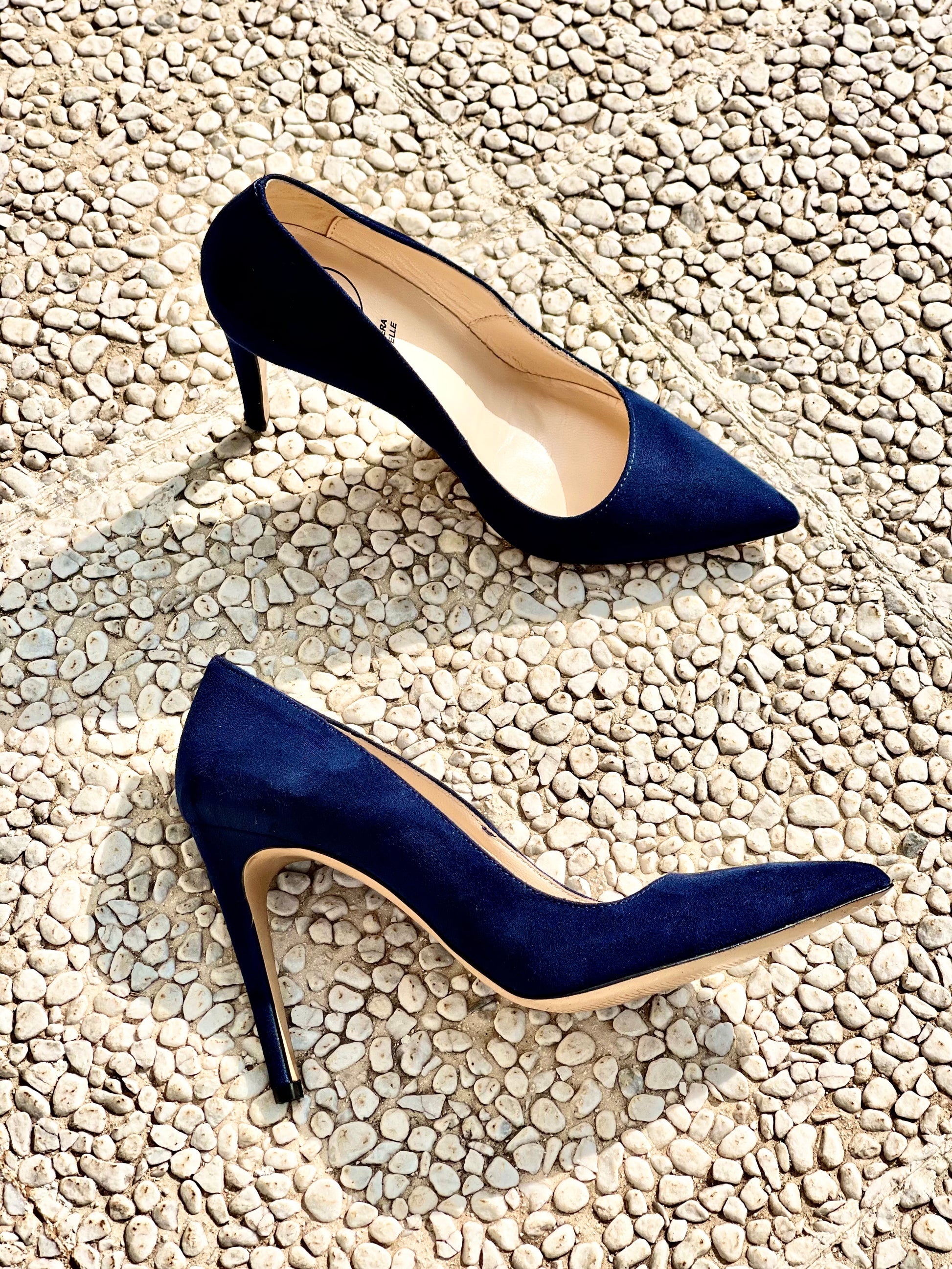 נעלי עקב זמש עם חרטום מחודד ועקב סטילטו.