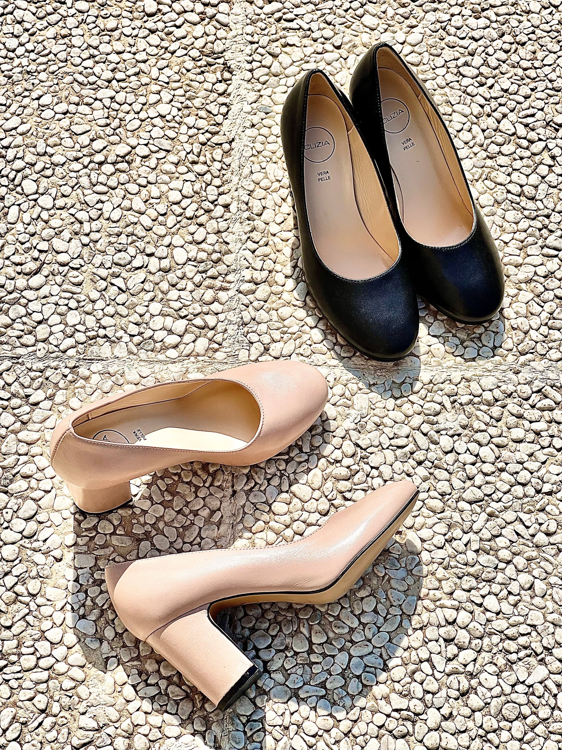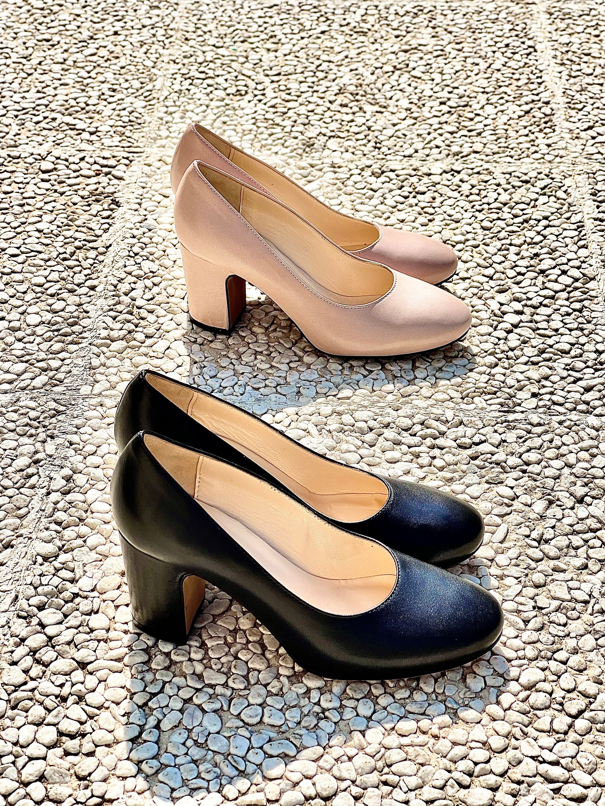 נעלי עור עם קצה עגול ועקב בגודל 75 מ"מ.