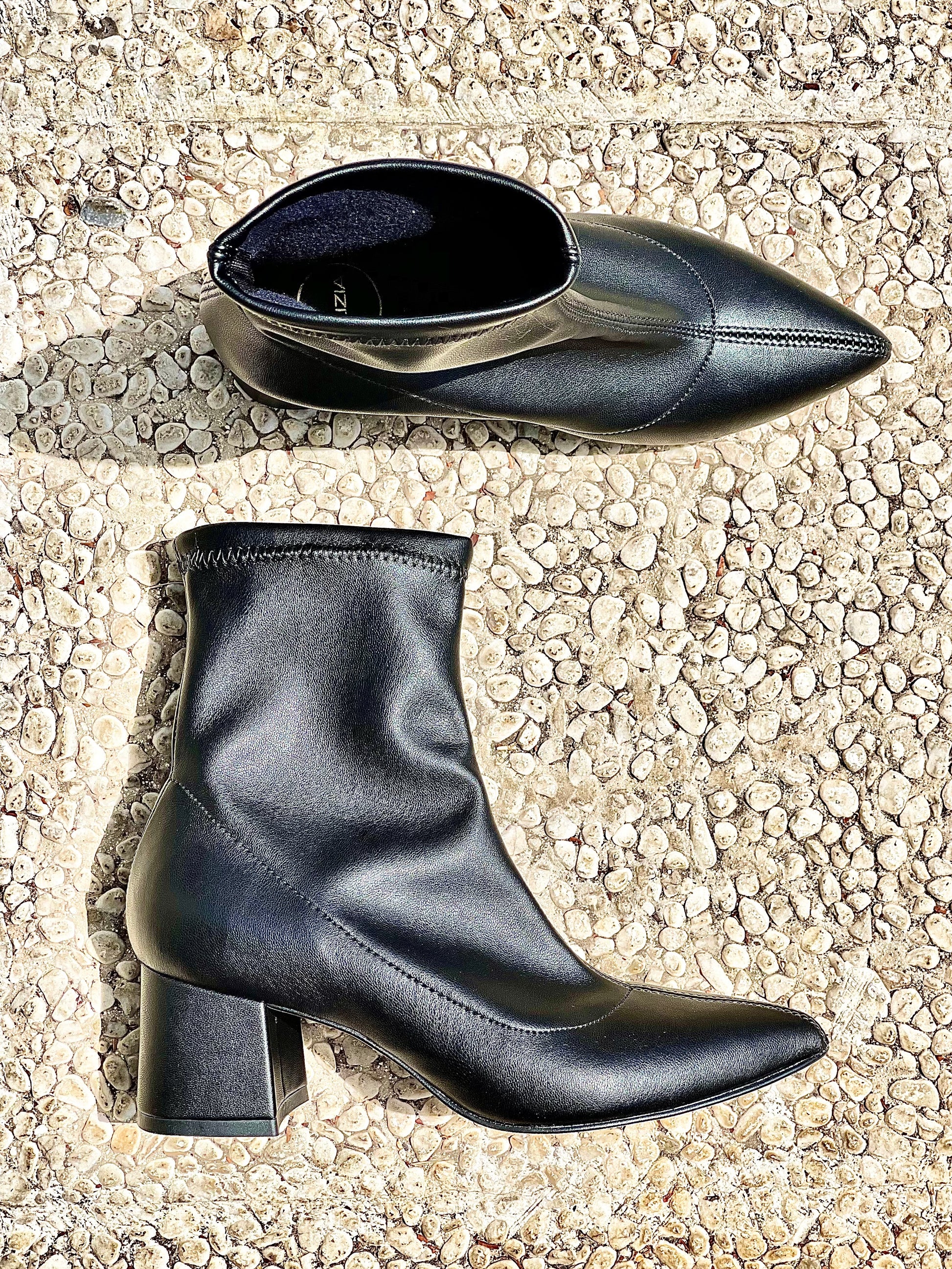 מגף קרסול אלסטי עם חרטום מחודד ועקב ברוחב 55 מ"מ.