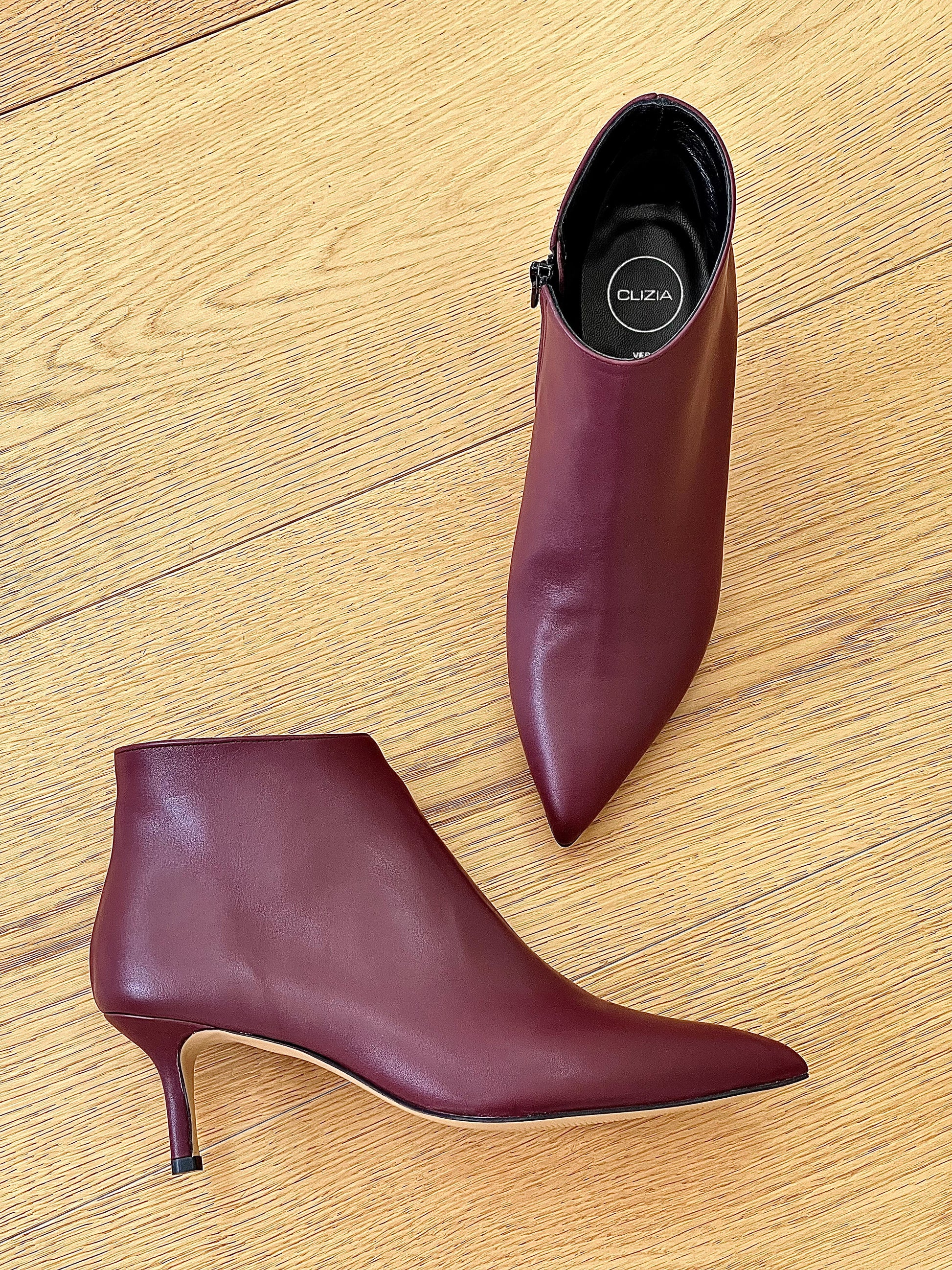 מגפון עור עם חרטום מחודד ועקב בגובה 6 ס"מ.