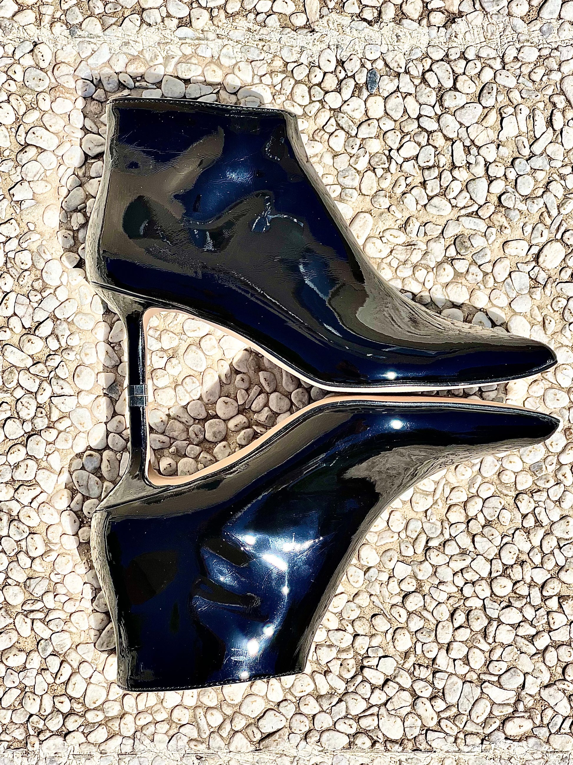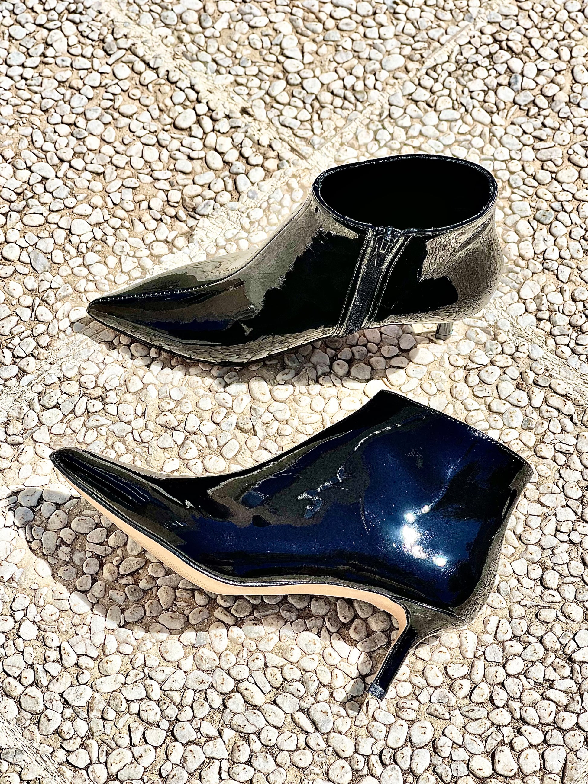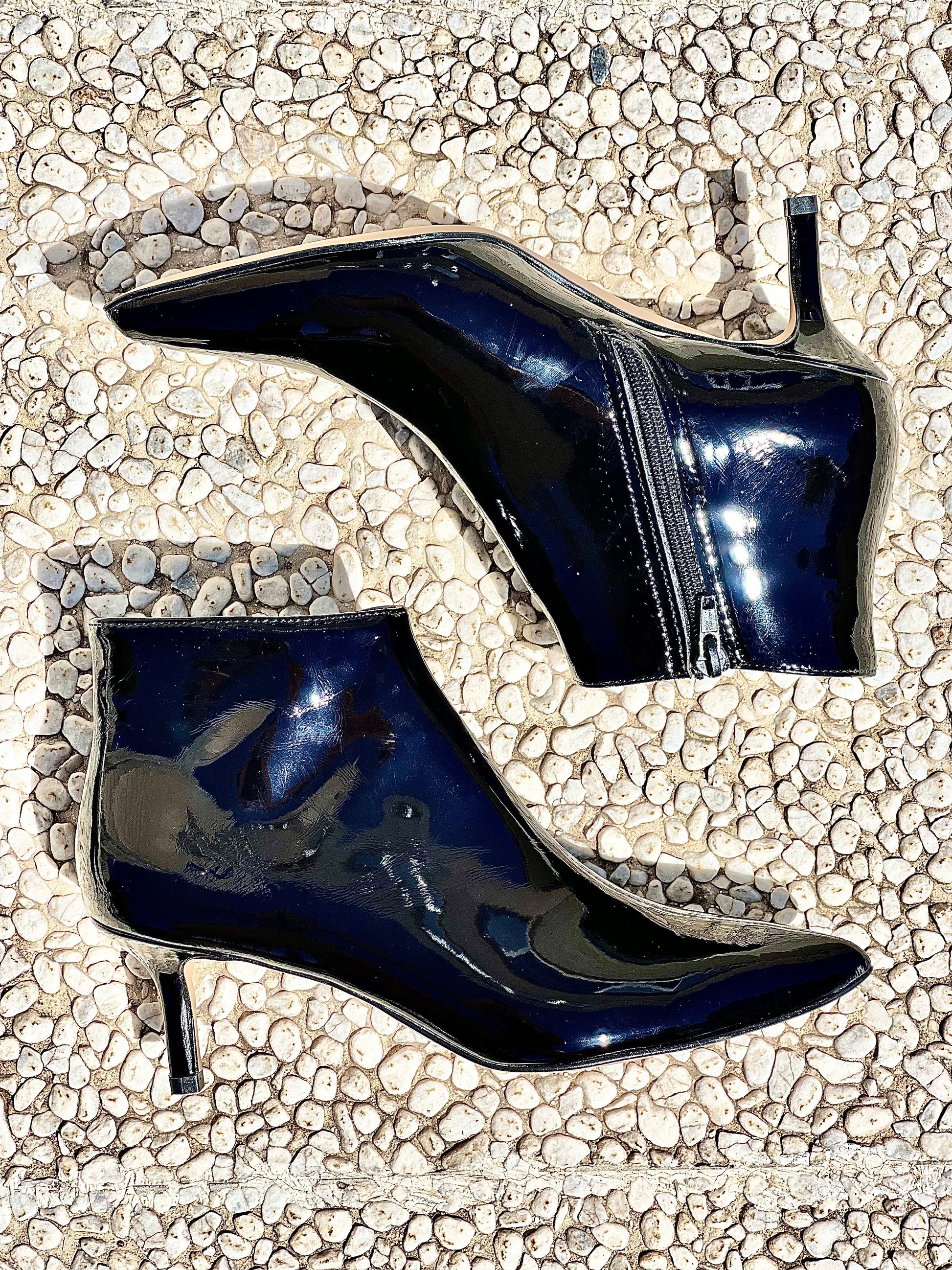מגפון קרסול עם חרטום מחודד מעור לכה עם עקב 6 ס"מ.