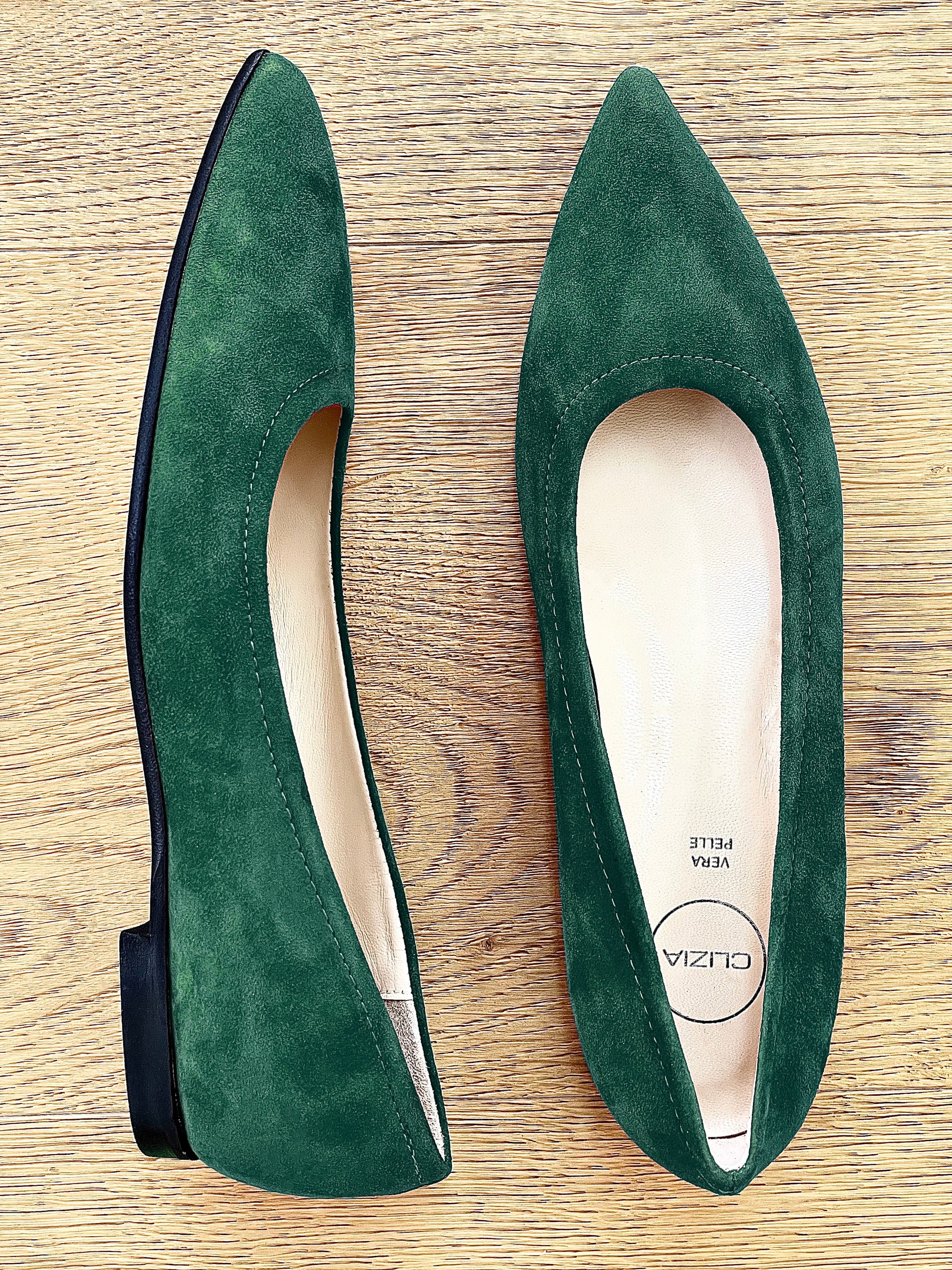 נעלי בלרינות זמש עם חריצים מחודדים.
