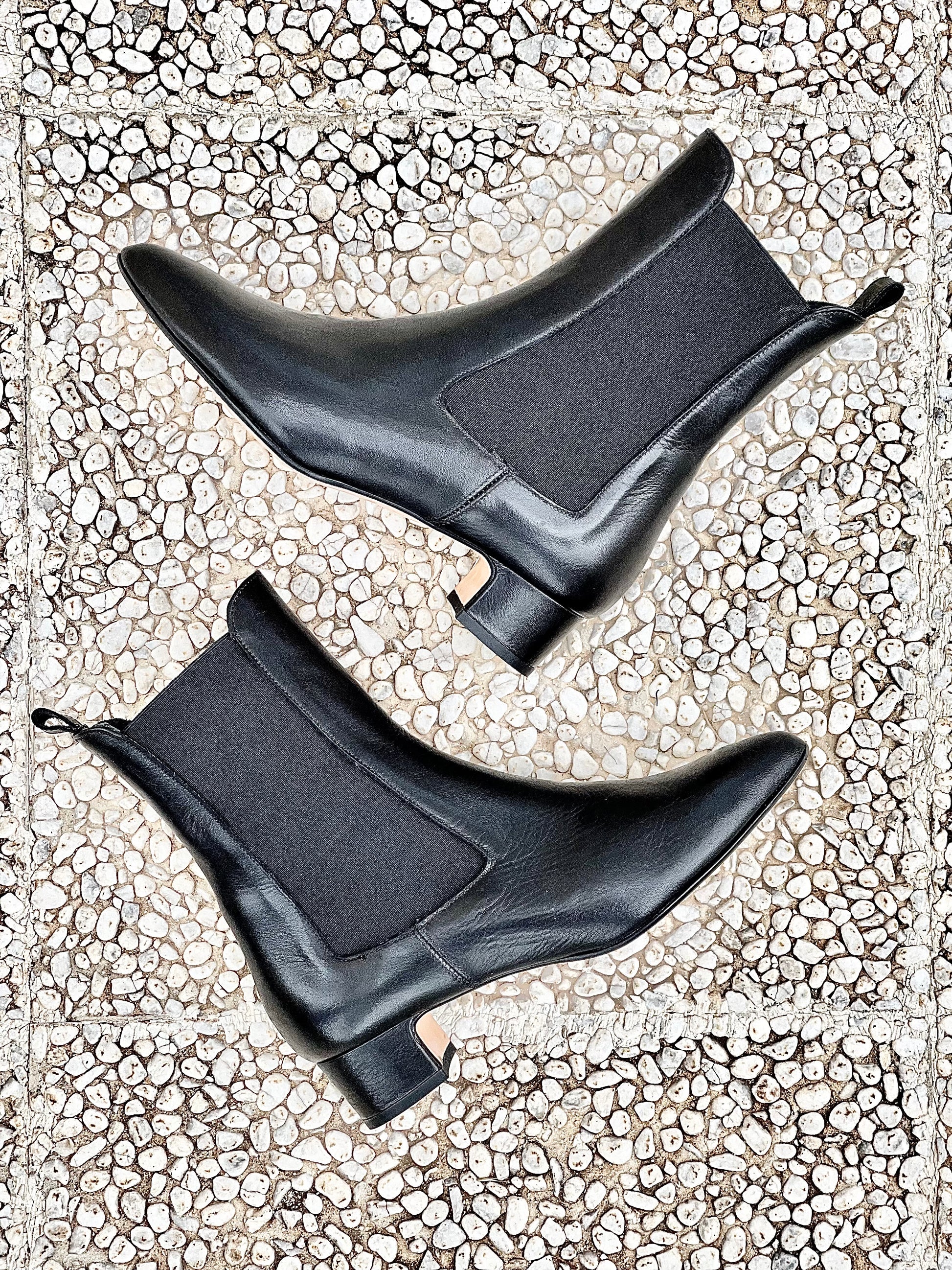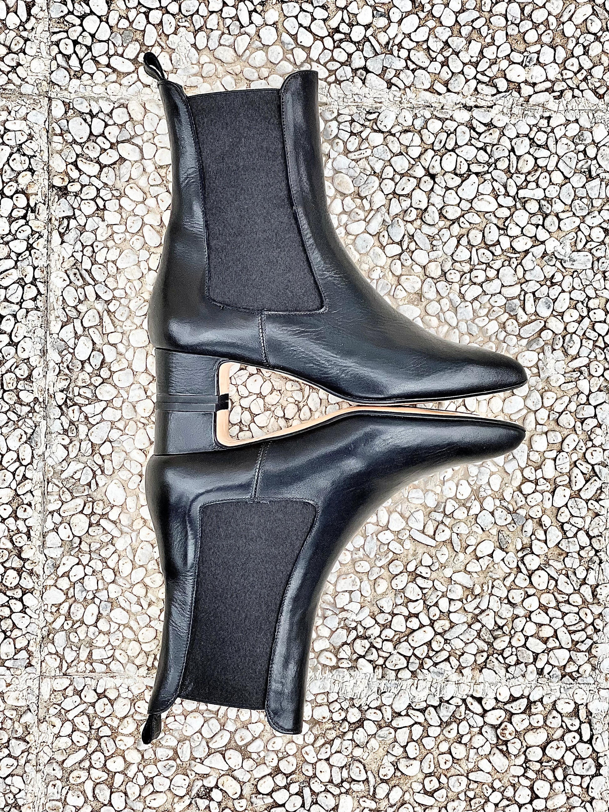 מגף צ'לסי מעור עם חרטום מחודד ועקב בלוק 35 מ"מ.