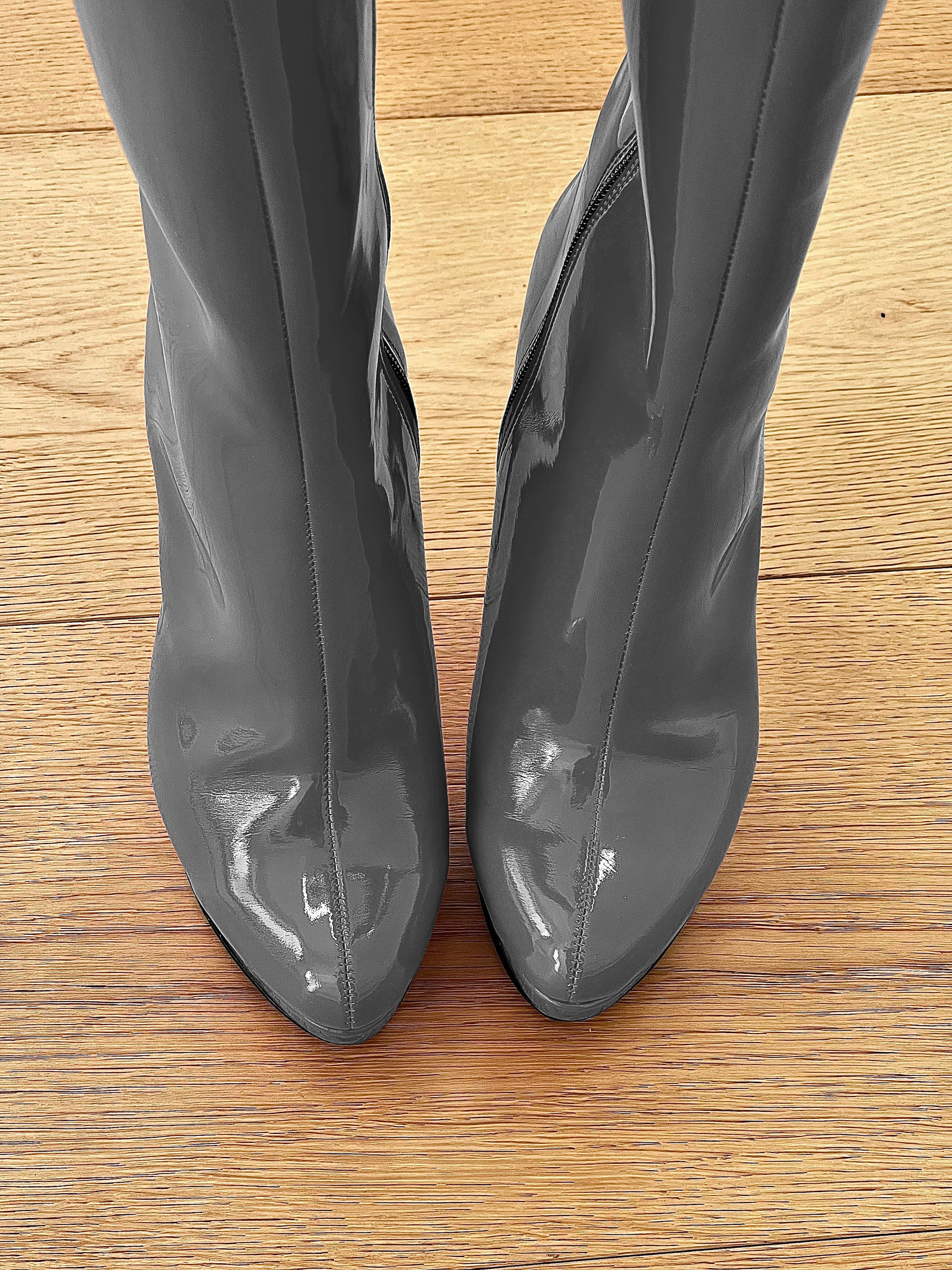 מגפיים גבוהים עם חרטום עגול, פלטפורמה ועקב סטילטו.