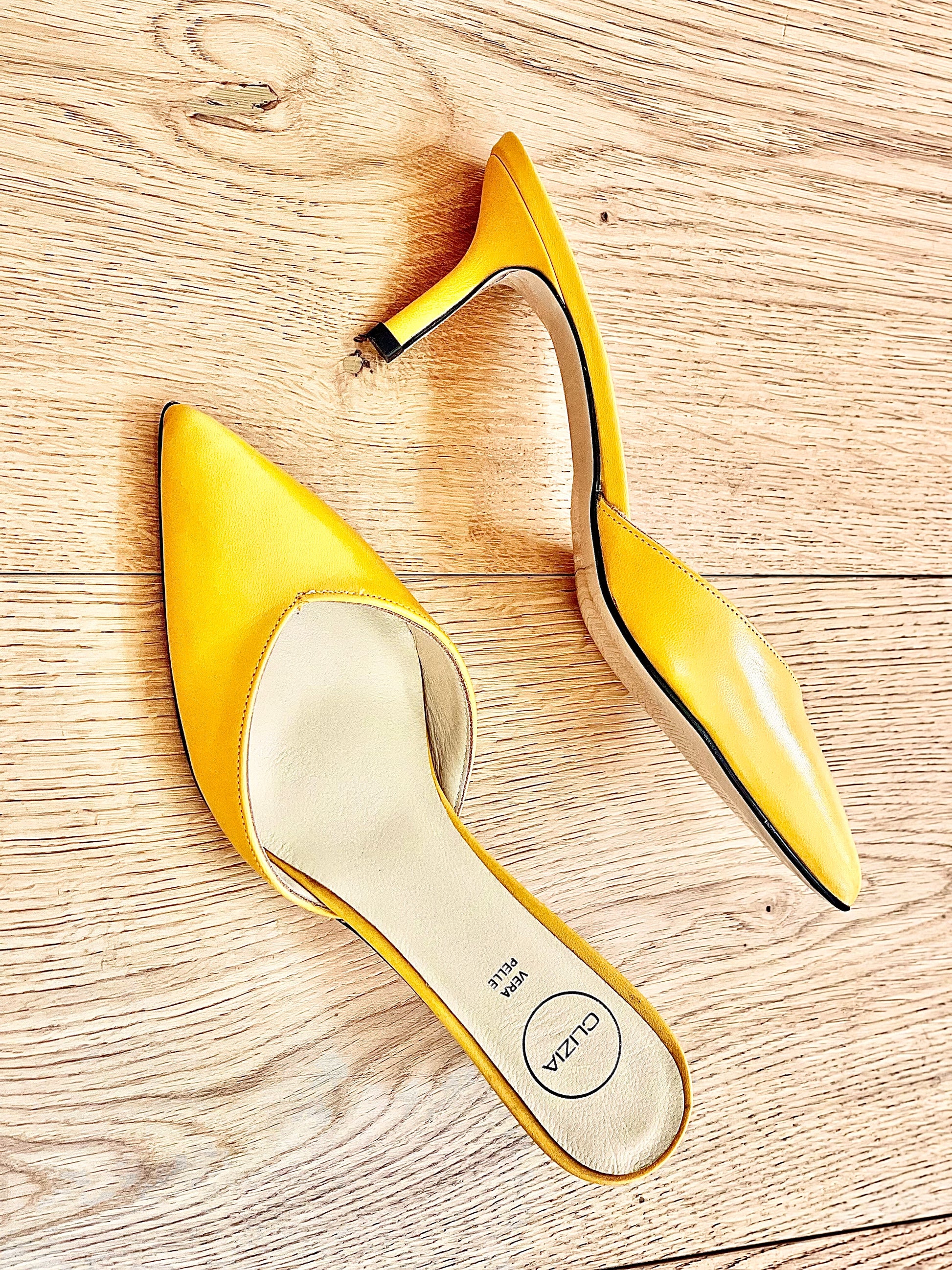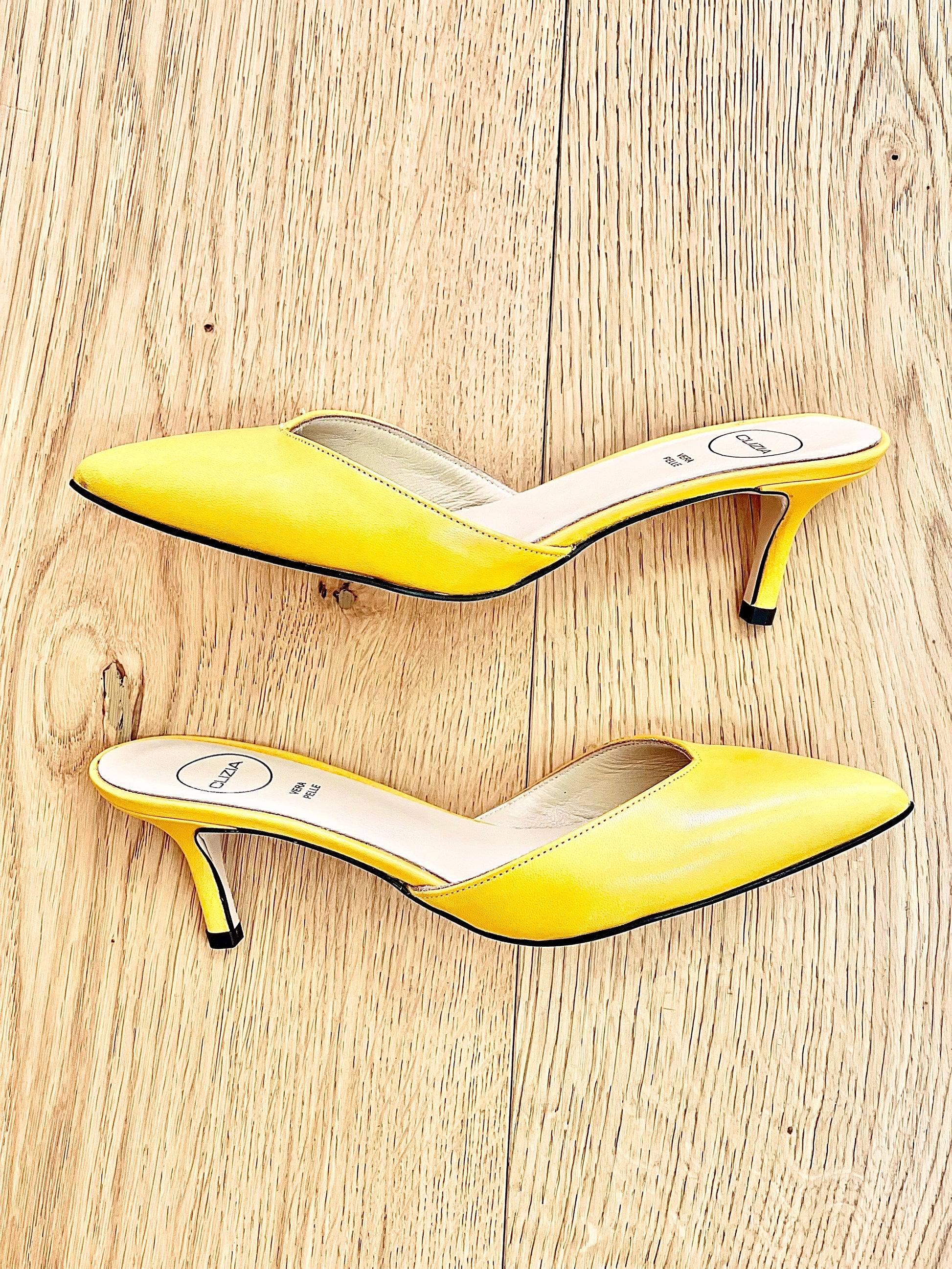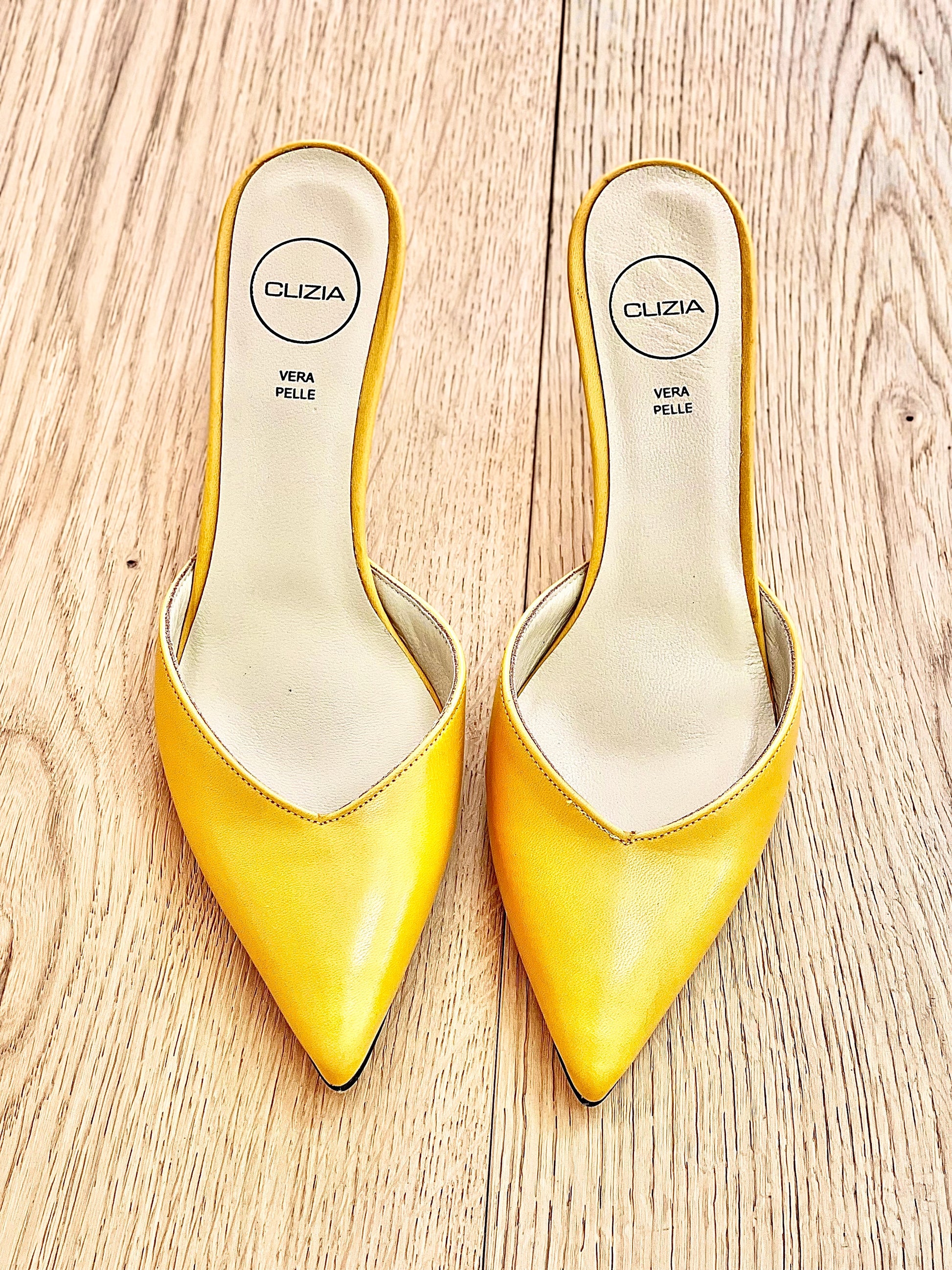 סבוט מעור עם חרטום מחודד, צווארון V ועקב 6 ס"מ.