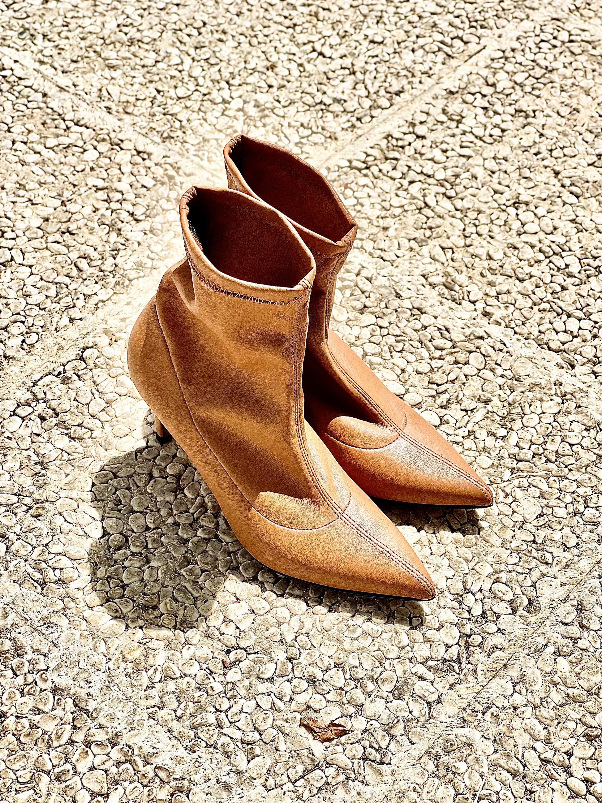 מגף קרסול אלסטי עם חרטום מחודד ועקב סטילטו 75 מ"מ.