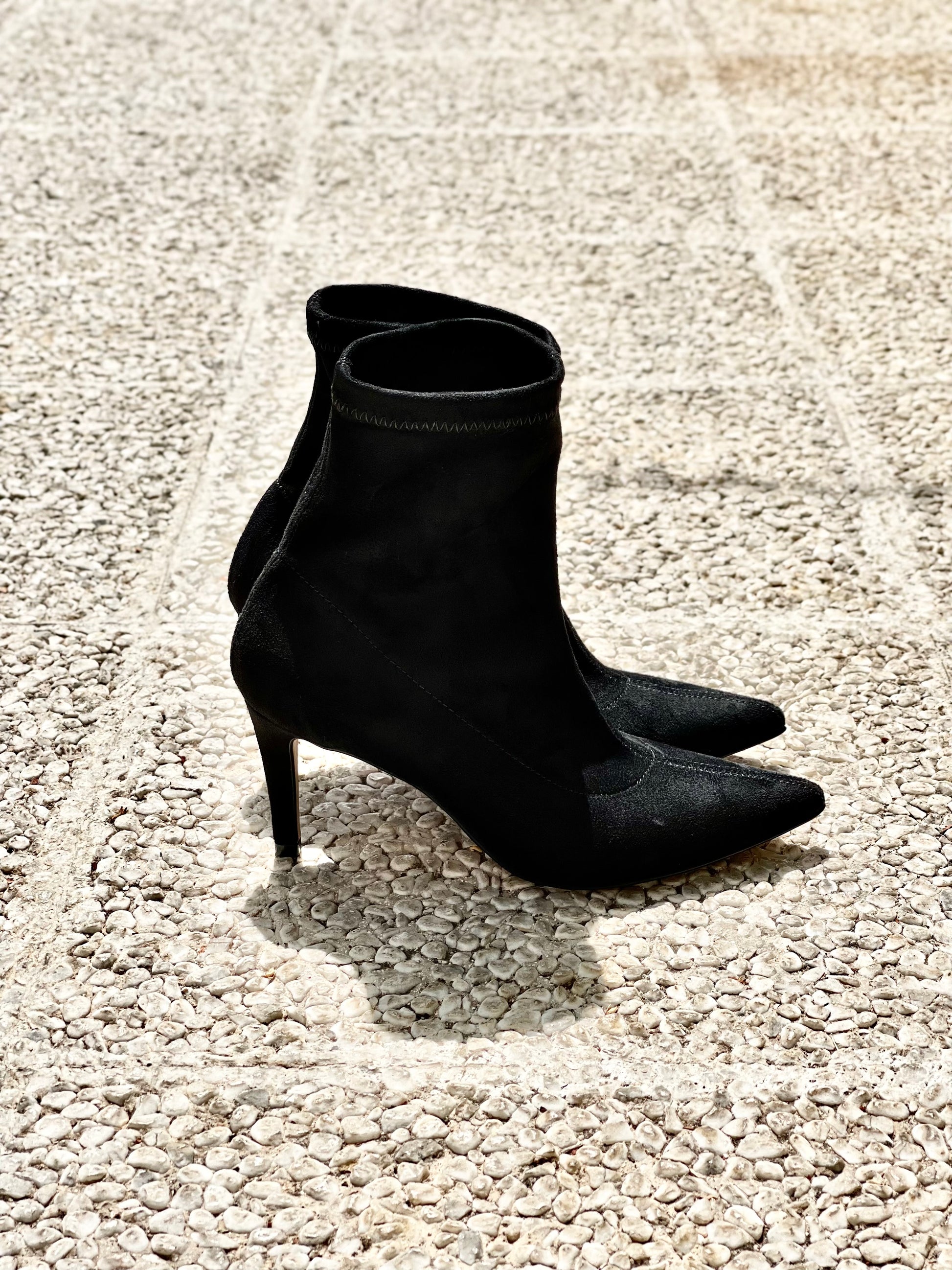מגף קרסול אלסטי עם חרטום מחודד ועקב סטילטו 75 מ"מ.