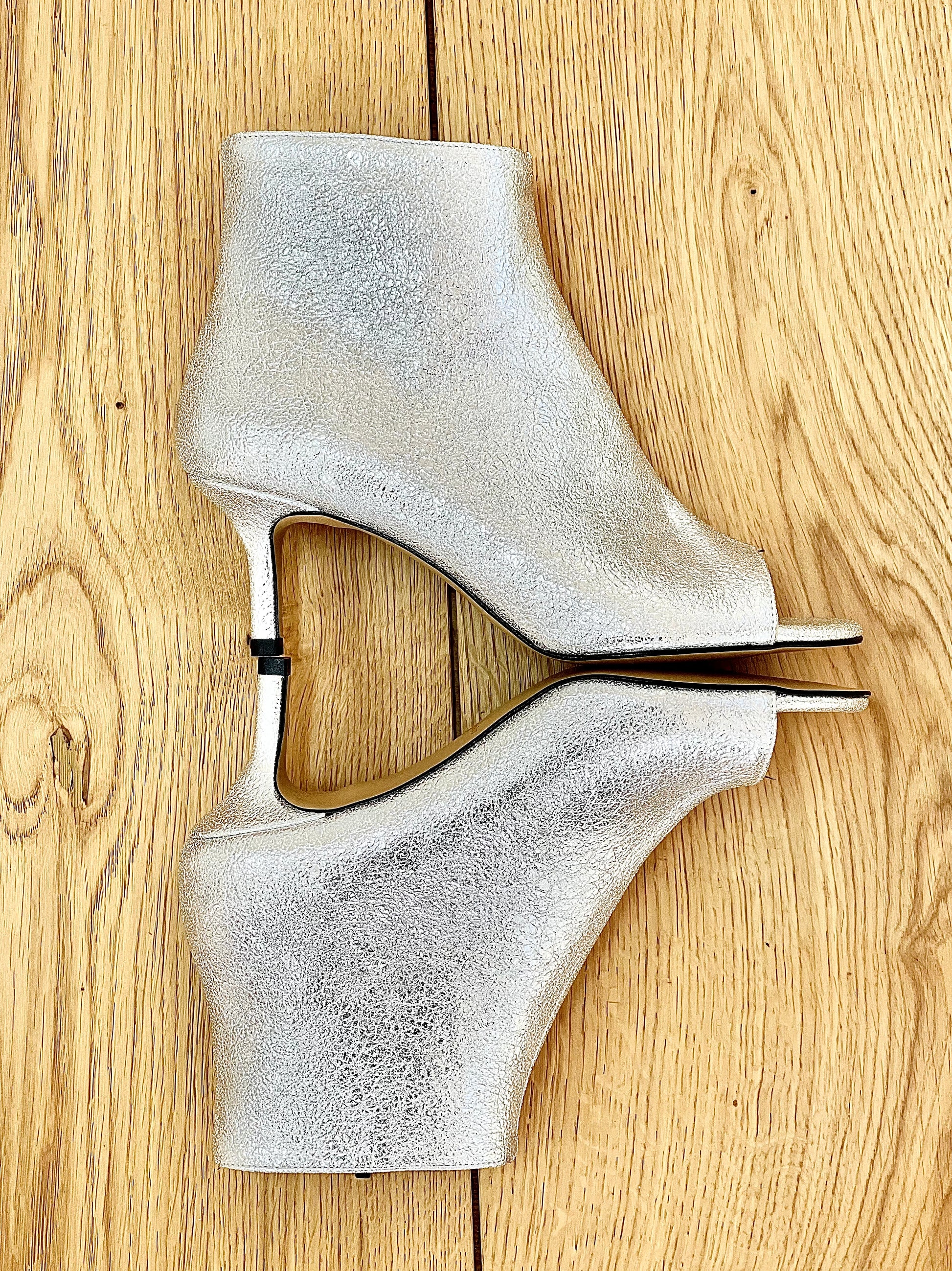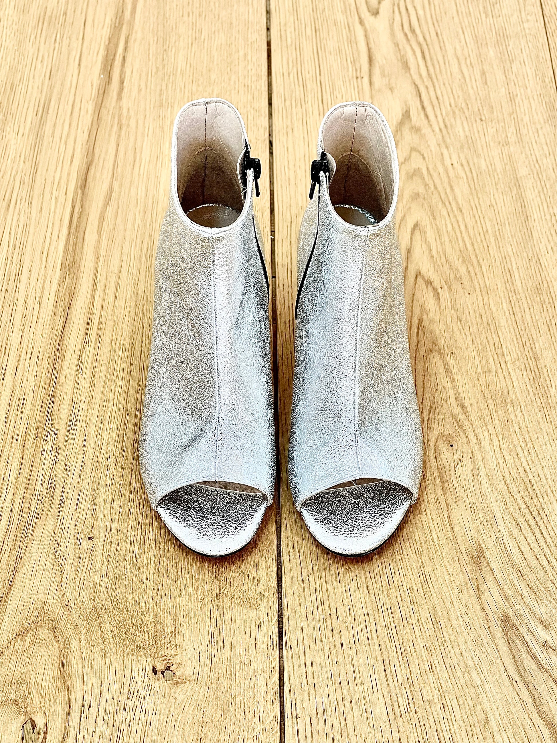 Gelamineerde enkellaarsjes met een hak van 6 cm.