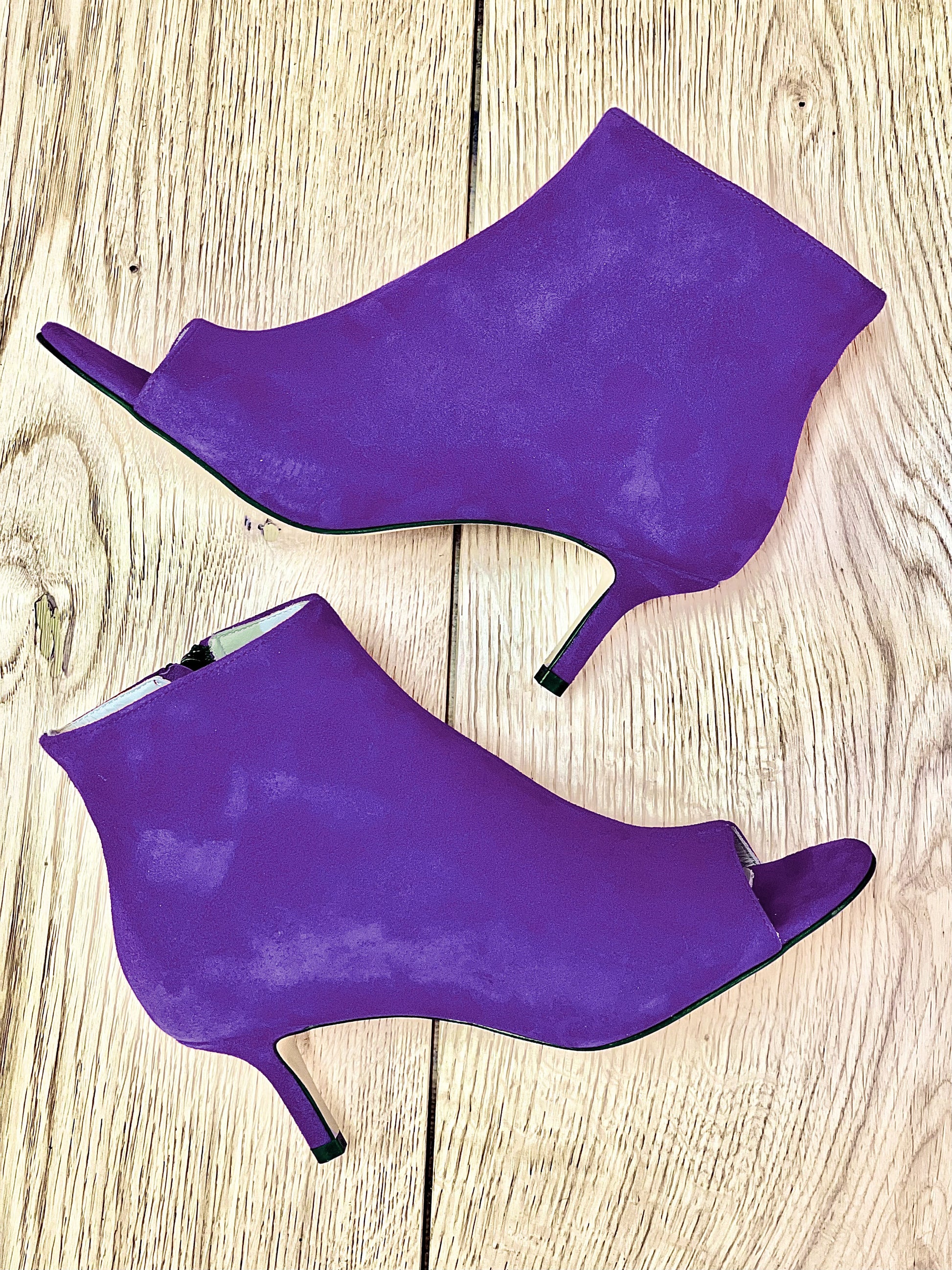 Enkellaarsjes van suède met een hak van 6 cm.