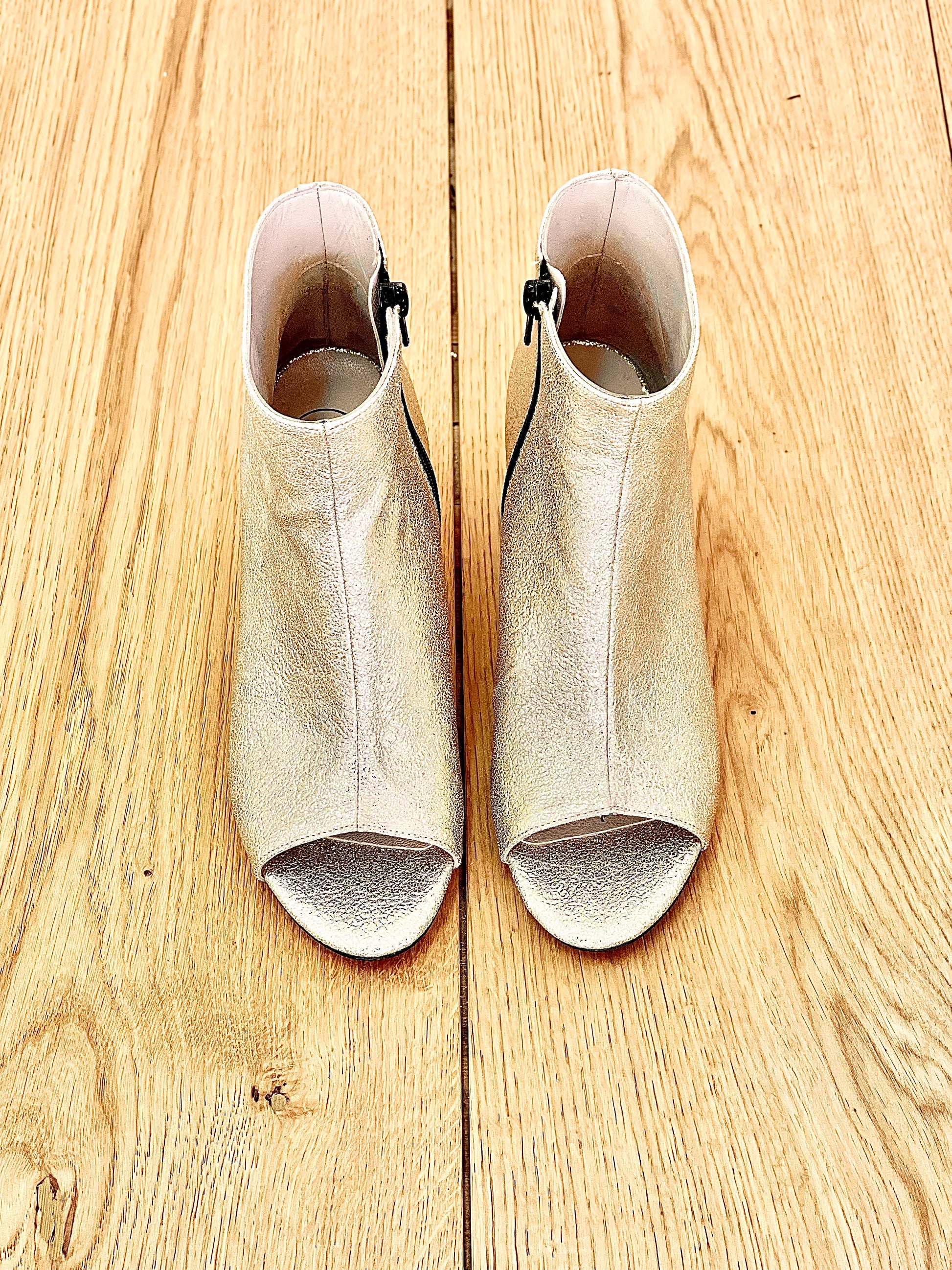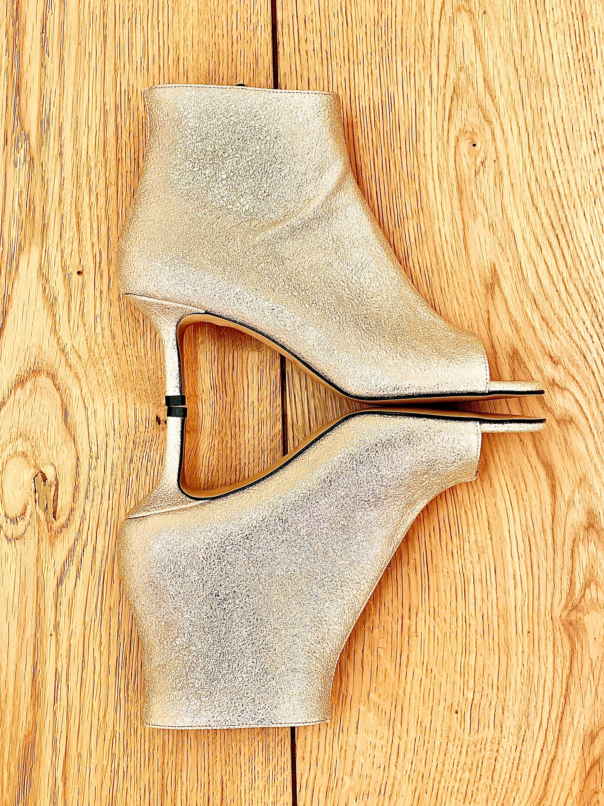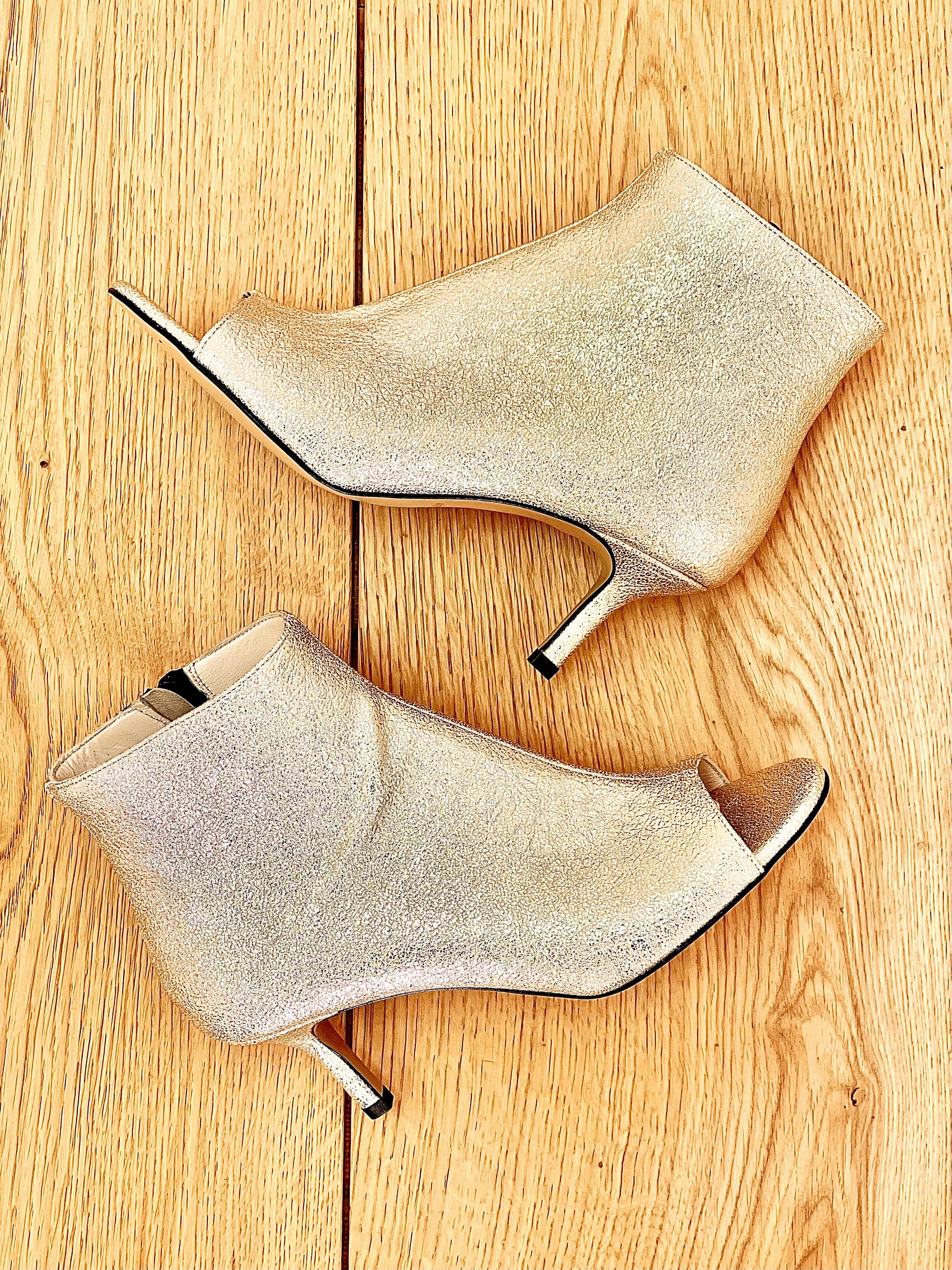 Gelamineerde enkellaarsjes met een hak van 6 cm.